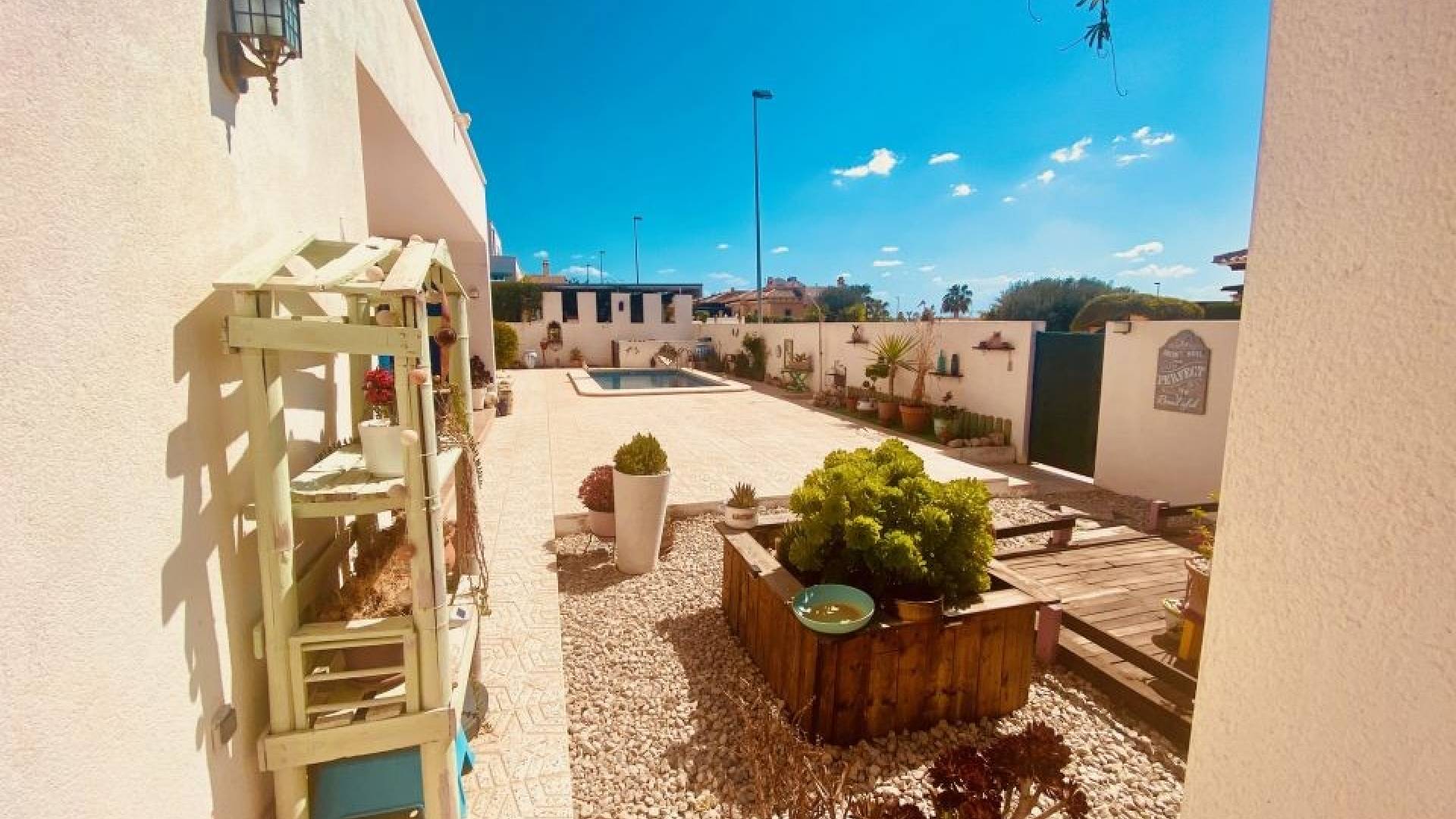 Charmante geschakelde bungalow te koop in de populaire wijk La Siesta, Torrevieja. Deze woning beschikt over 2 slaapkamers, 1 moderne badkamer, een gezellige woonkamer en een open keuken die recent is gerenoveerd. Ook de badkamer is onlangs vernieuwd. Daarnaast beschikt de bungalow over een ruime, fraai aangelegde...