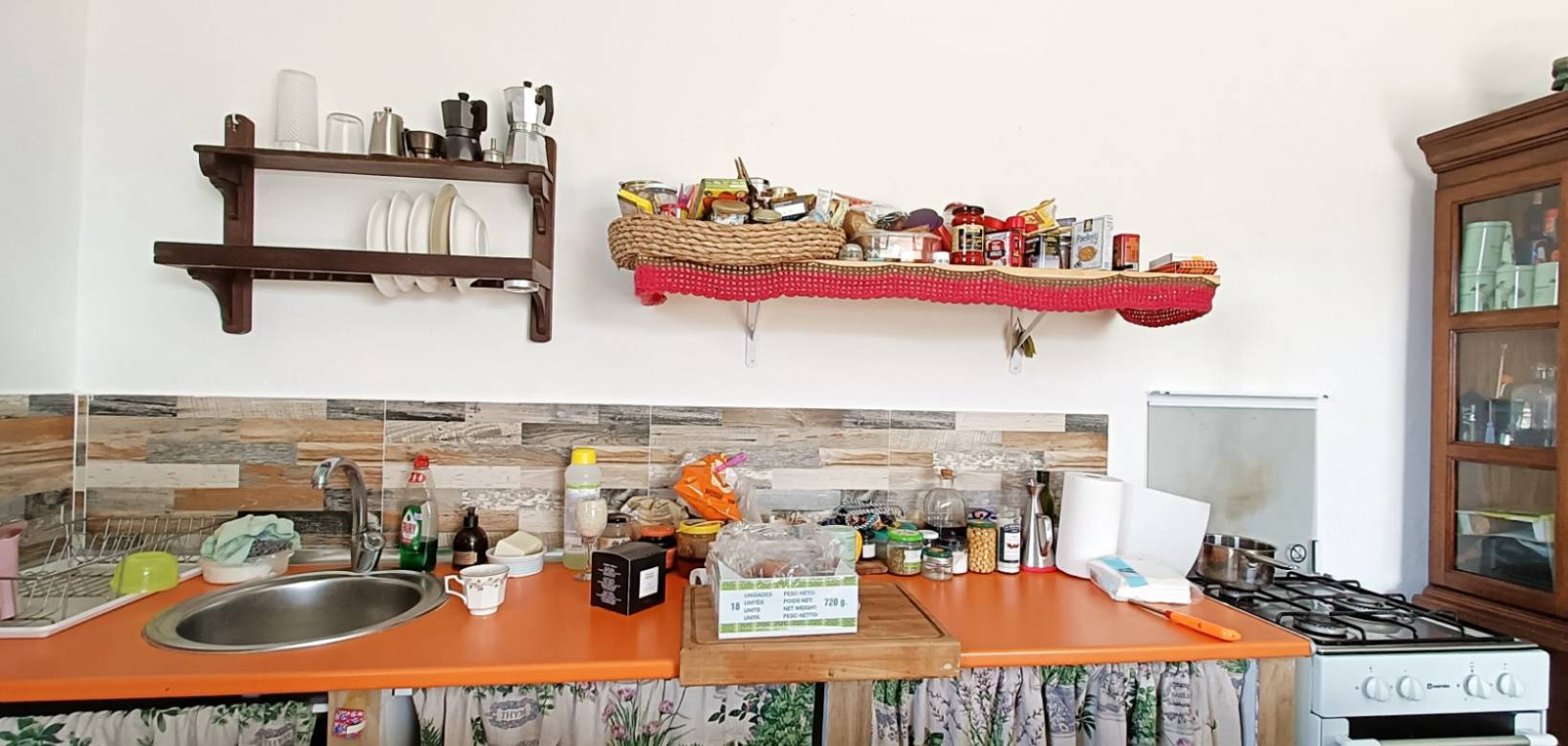 Het perceel is verdeeld over meerdere niveaus, beplant met olijf- en fruitbomen. Bovenaan het perceel bevindt zich een gezellige gelijkvloerse woning met een open indeling: open keuken met eetkamer, één slaapkamer en een badkamer.