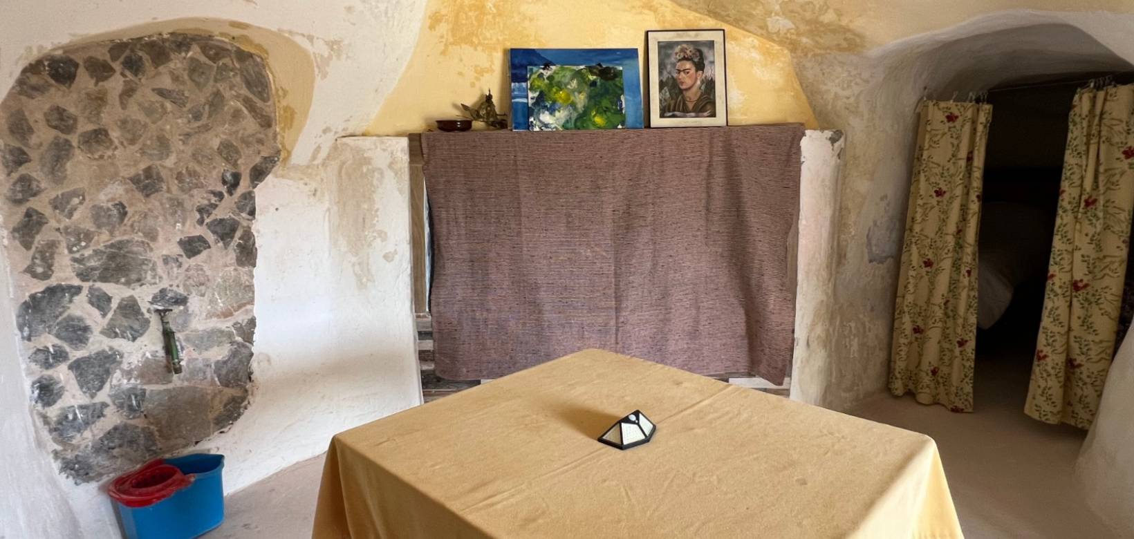 Daarnaast beschikt het pand over een gastenverblijf met open slaapruimte en op een lager niveau een natuurlijke grot die is omgebouwd tot eetruimte en extra slaapkamer.