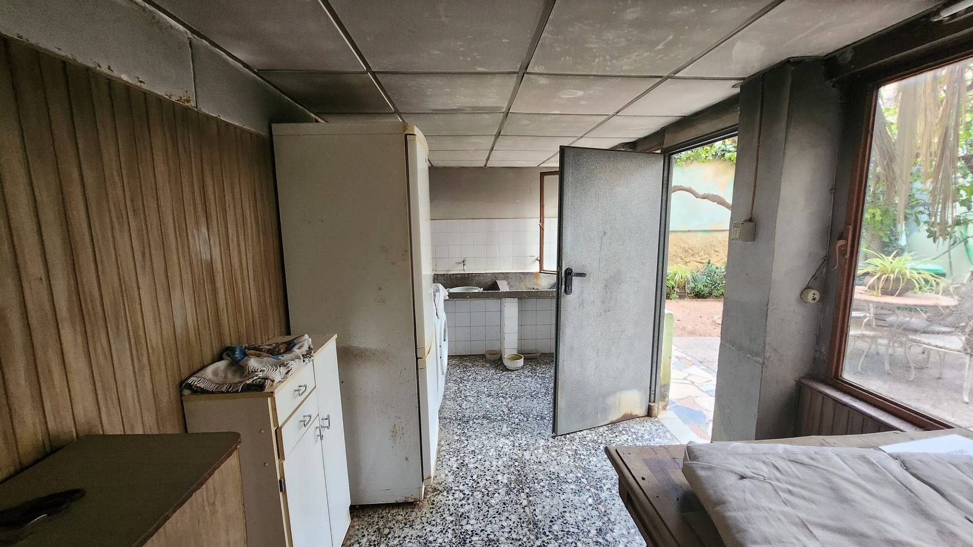 Aan de voorkant is er een zeer grote garage, met gemakkelijk genoeg ruimte voor 3 of 4 auto's, en deze kan worden aangesloten op het huis, of apart worden gehouden (momenteel is de deuropening verzegeld, maar het zou heel gemakkelijk zijn om deze weer te openen).