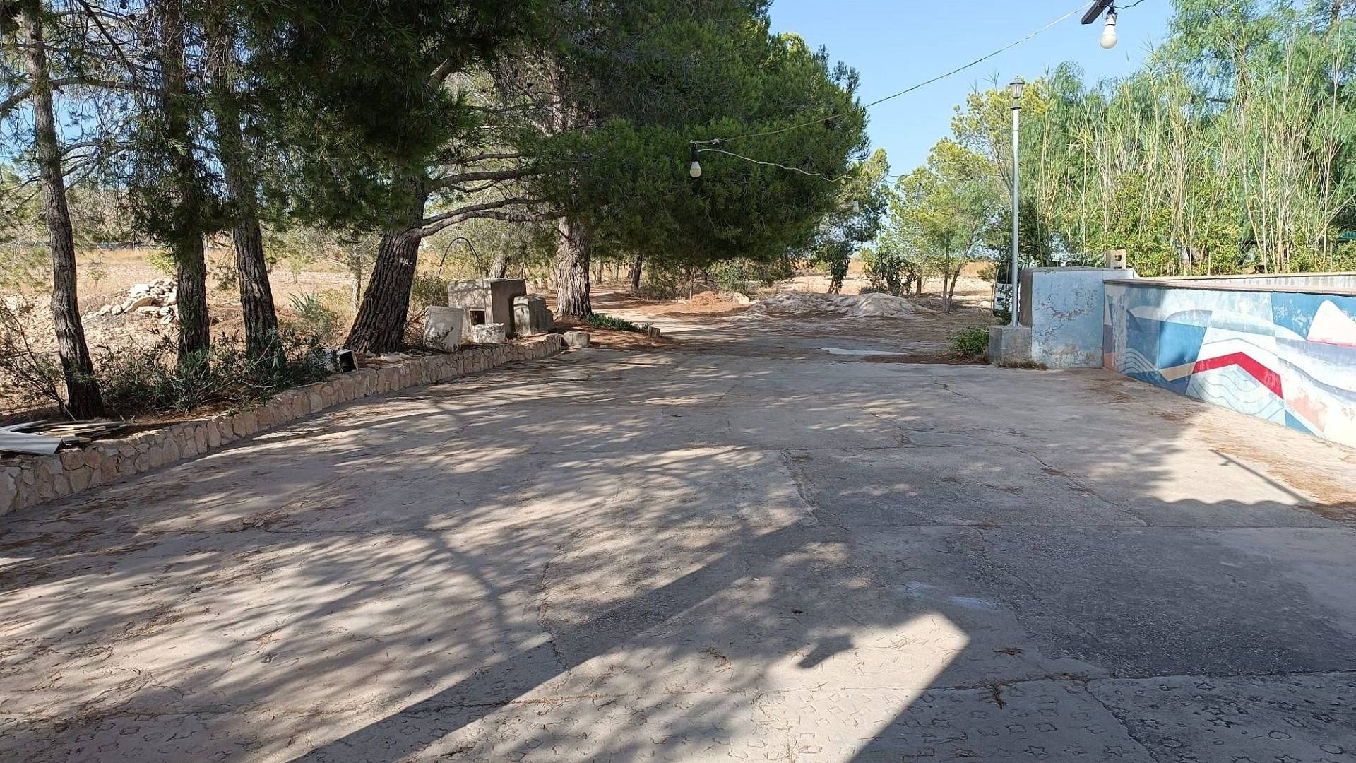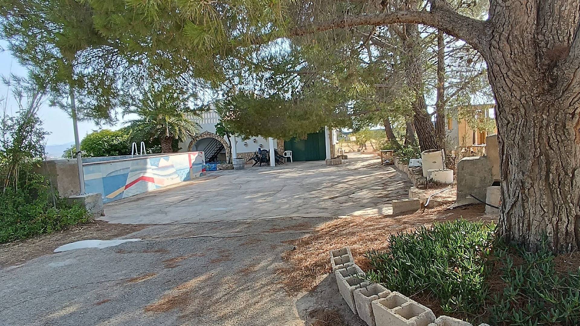 Het uitgestrekte perceel is prachtig beplant met amandelbomen, vijgenbomen, dennenbomen en diverse sierbomen, wat een rustige en natuurlijke omgeving creëert.