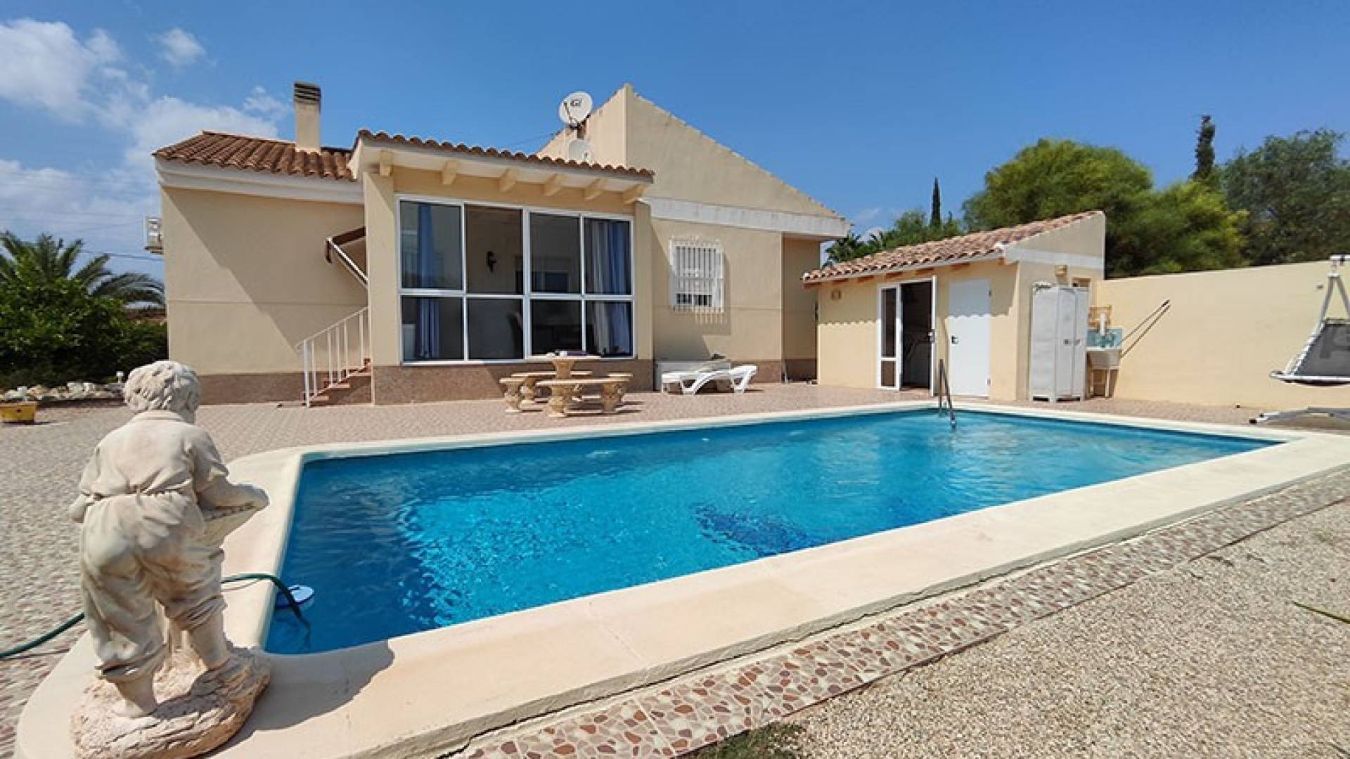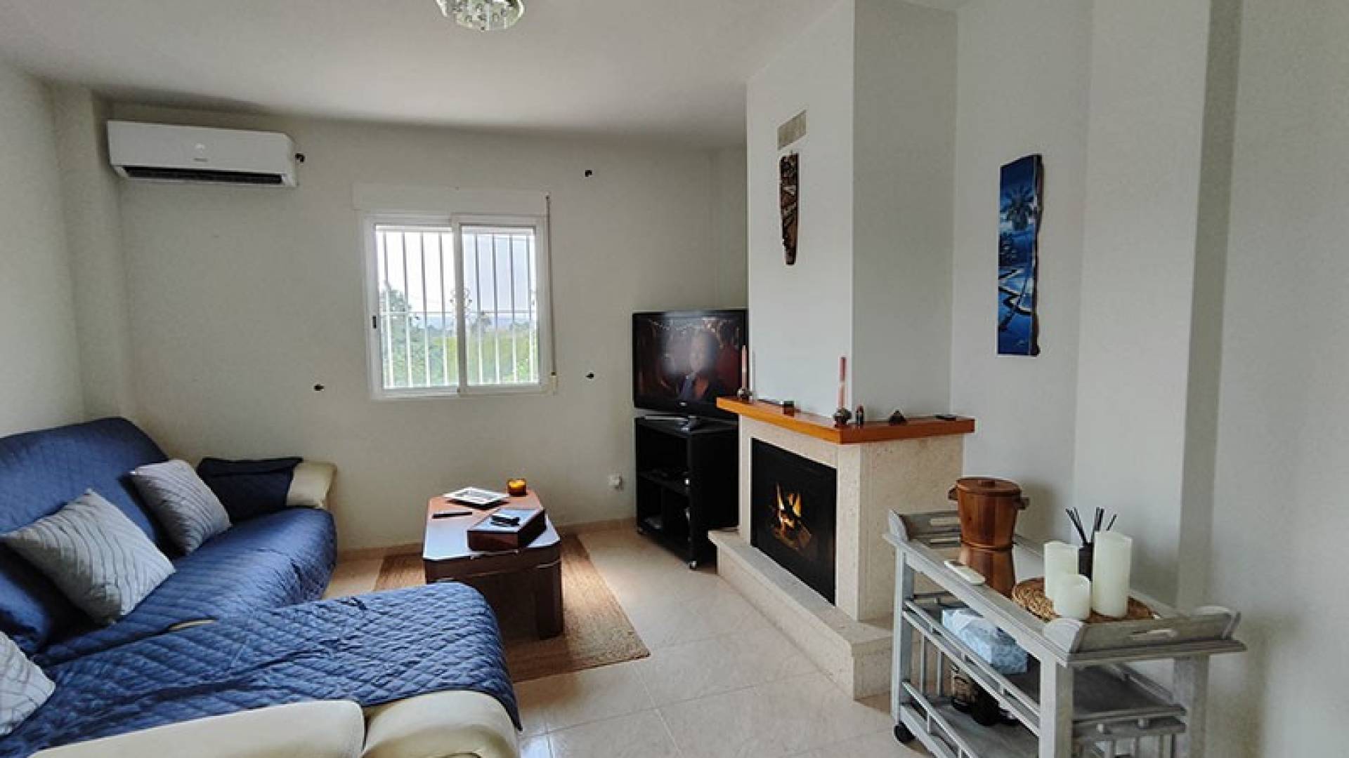 De villa heeft een afgesloten veranda voor de paar koele dagen van de korte winter in Murcia, een mooie woon-/eetkamer met airconditioning, een open haard, een aparte volledig uitgeruste keuken, 3 slaapkamers en 3 badkamers (de hoofdslaapkamer heeft een eigen doucheruimte).