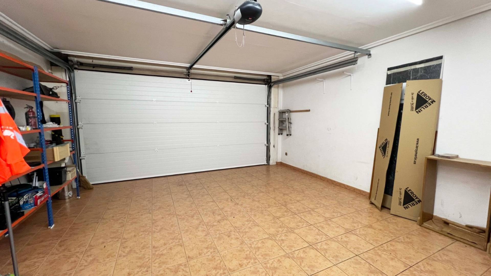Garage en elektrische buitendeur geïnstalleerd in 2023 met afstandsbediening.