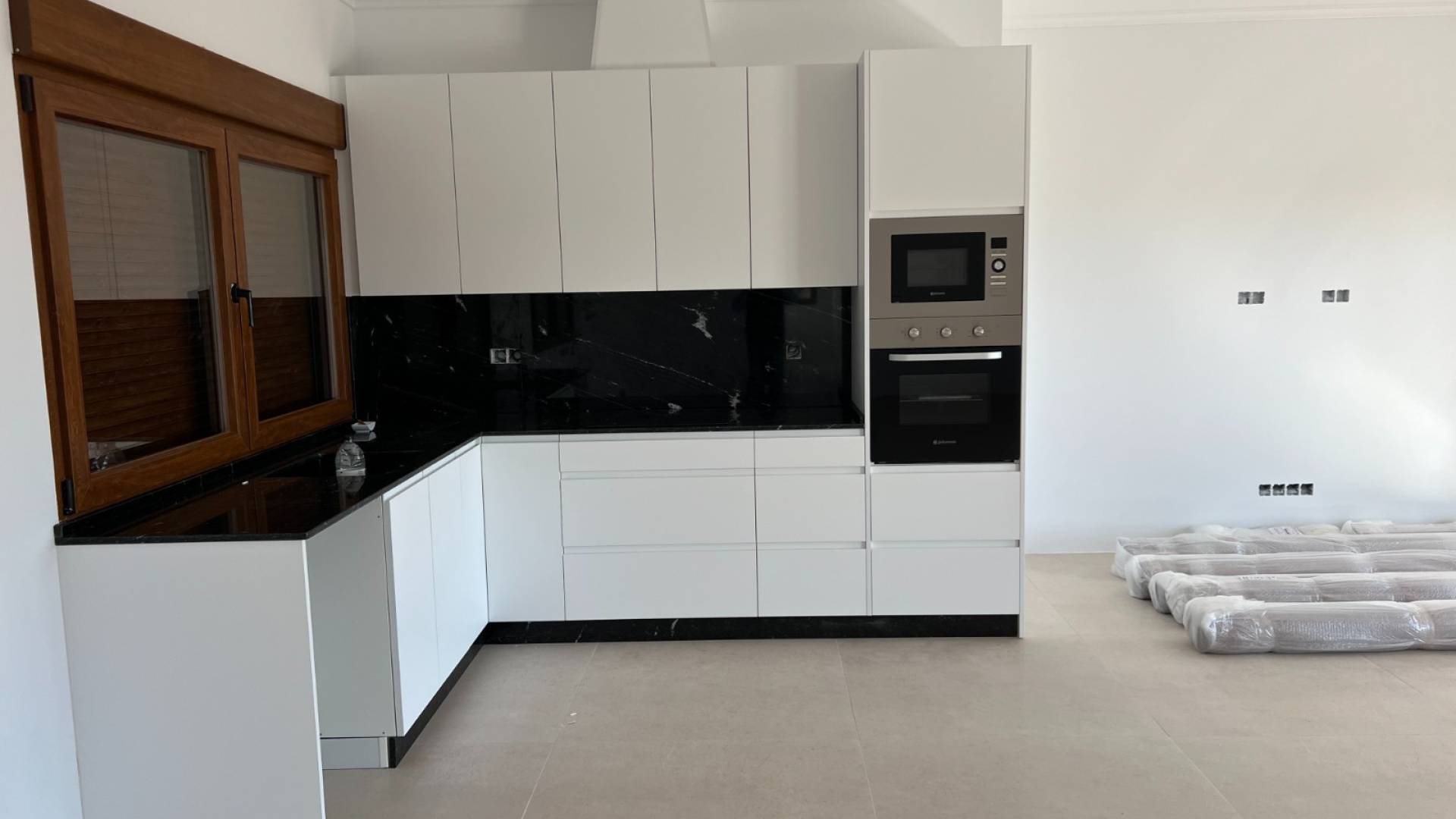 Daarnaast is er een grote bijkeuken, een garage van 40 m² en een privézwembad van 8x4 m, allemaal inbegrepen in de prijs. De villa is voorzien van voorinstallatie van centrale airconditioning en vloerverwarming, evenals een volledig zonne-energiesysteem van 10 kW met 10 kW batterijen, wat zorgt voor maximaal comfort en energie-efficiëntie.