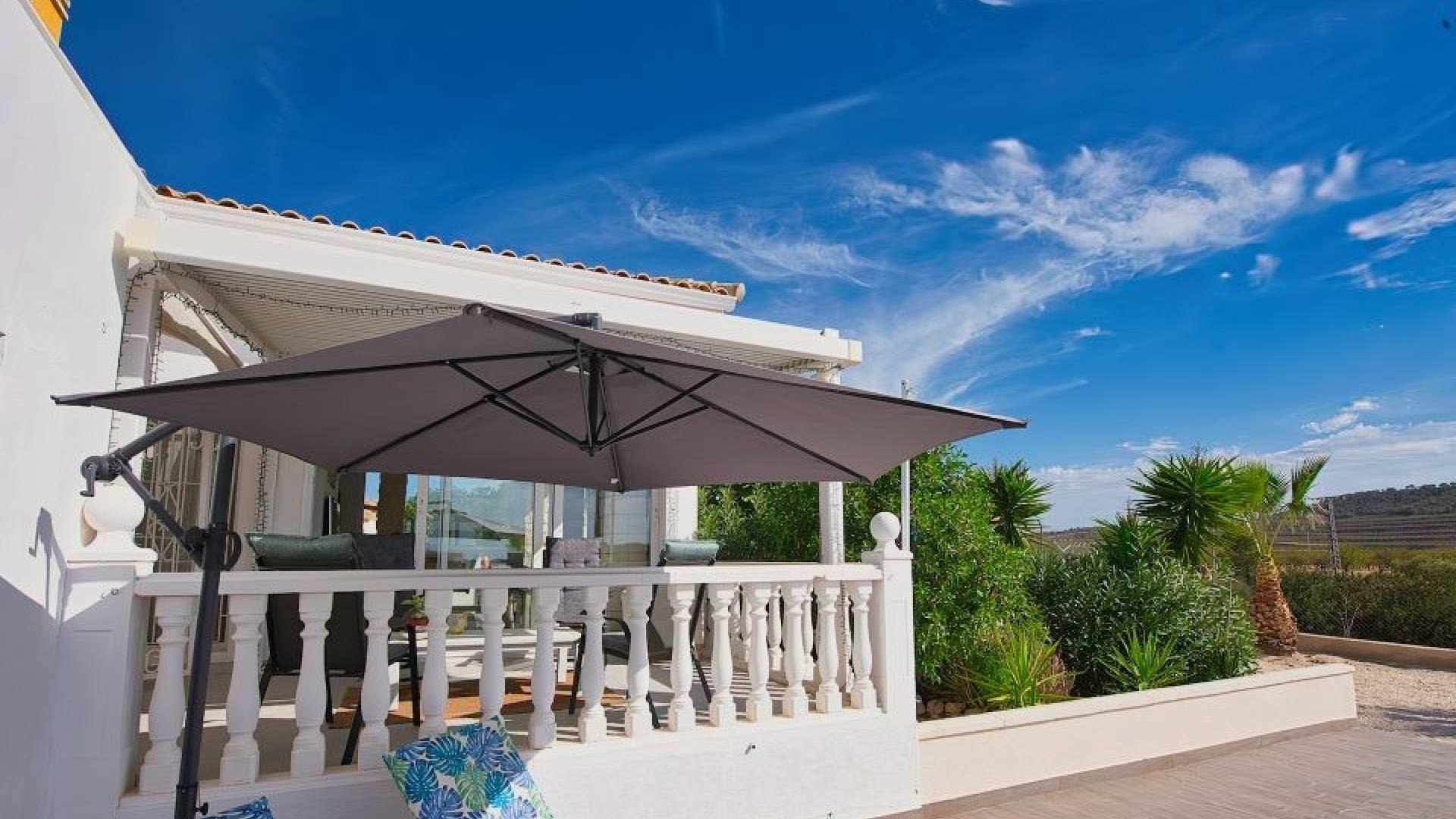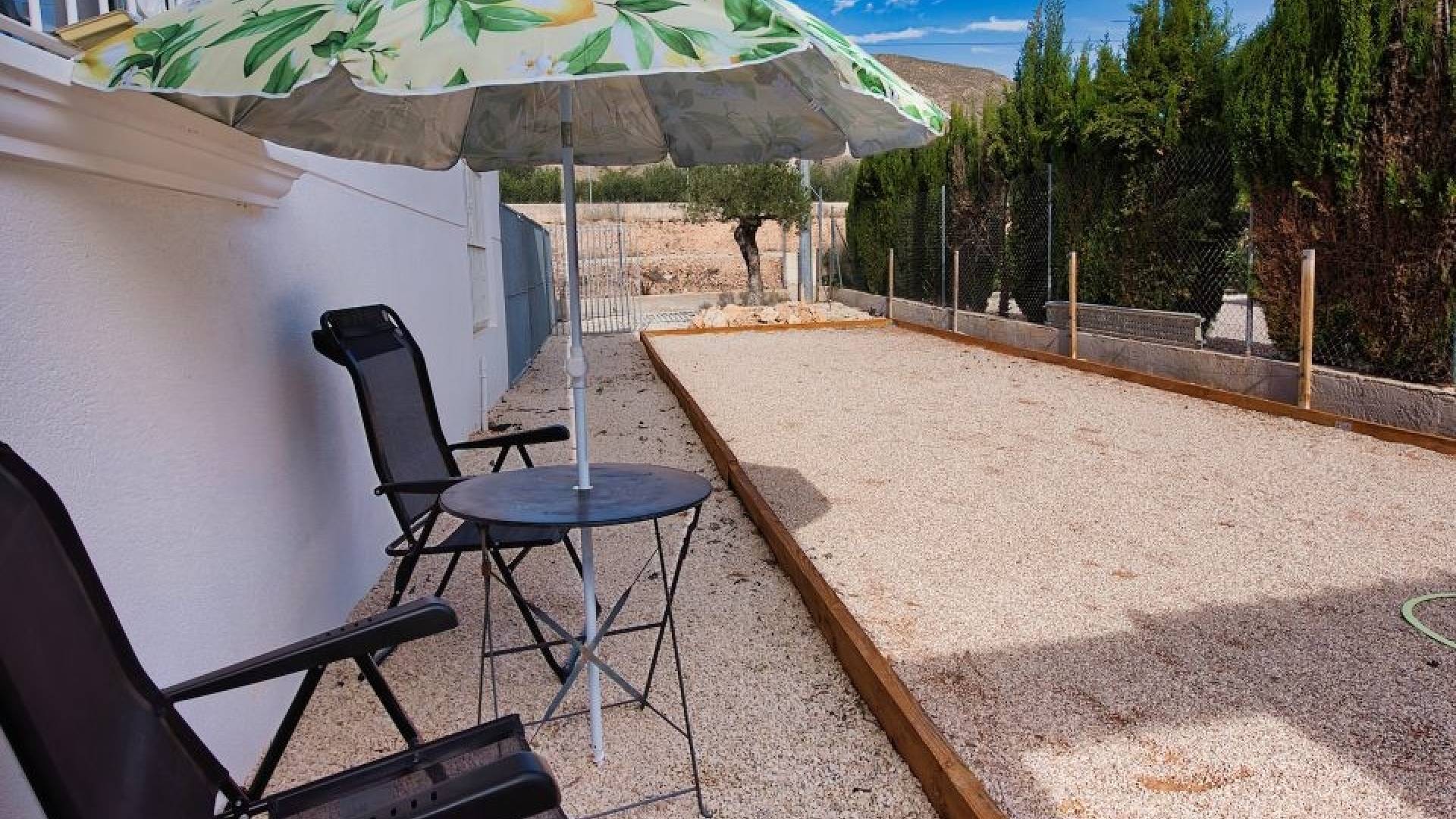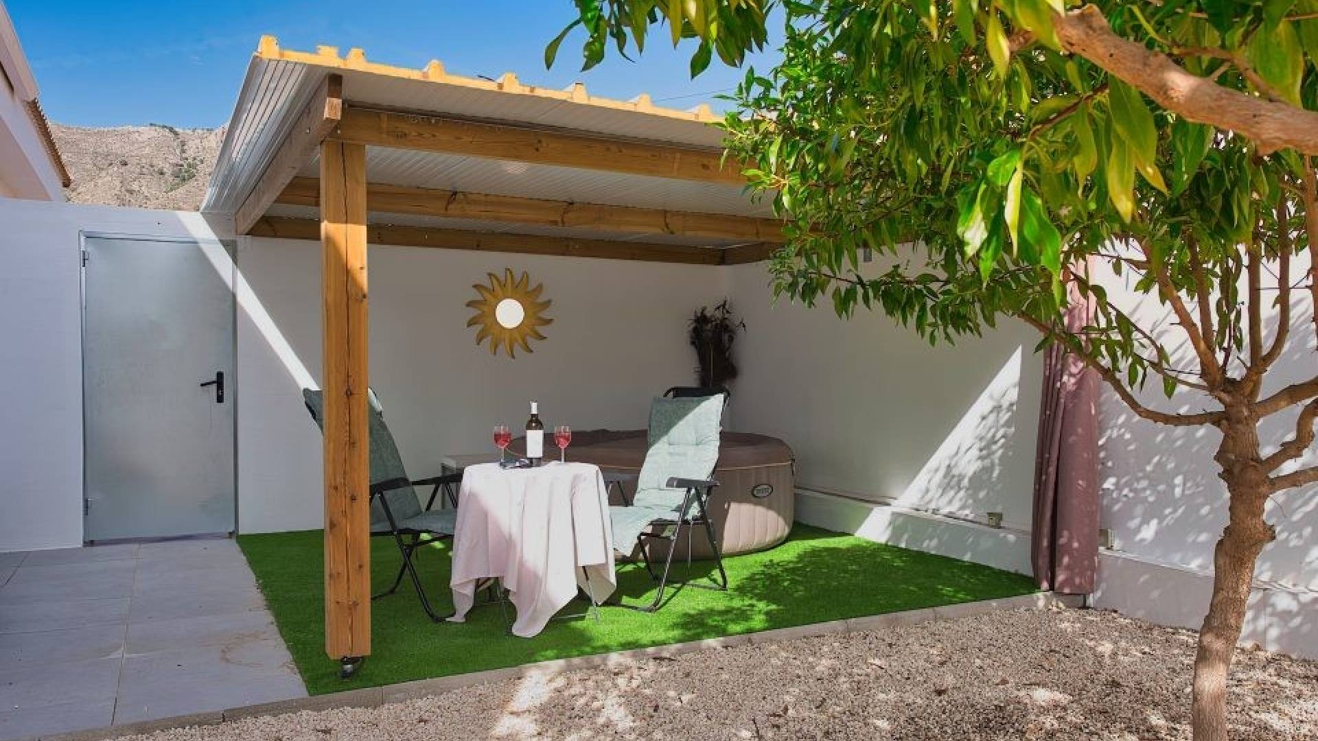 Een aparte casita met bergruimte, waterpunt, wasruimte en toilet maakt de ontspanningsruimte compleet.