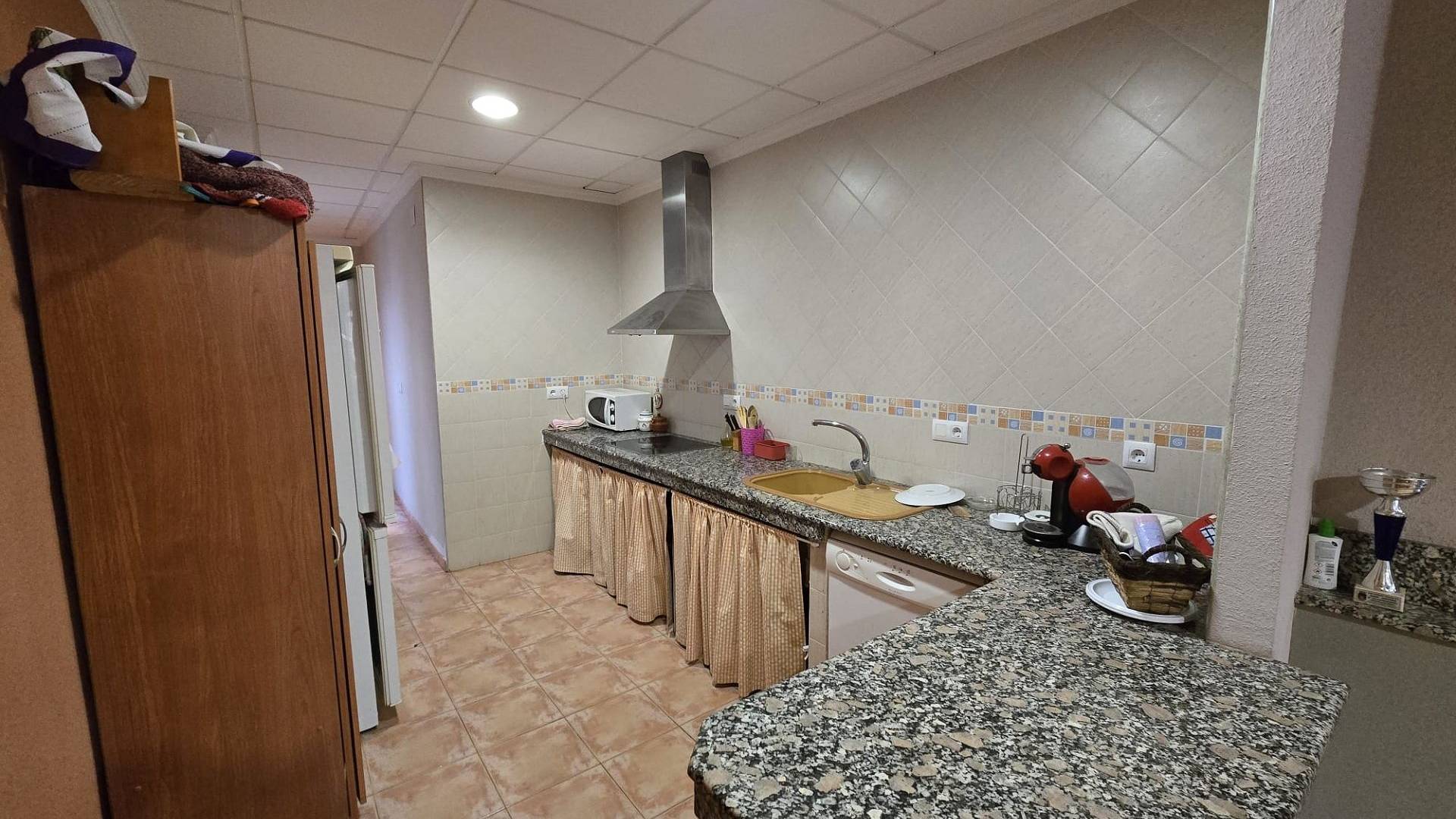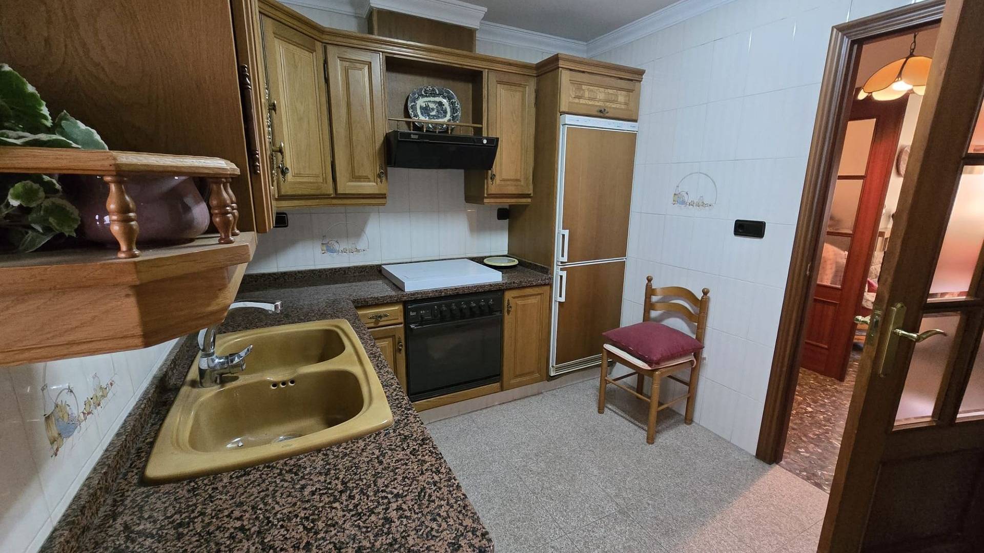 Het appartement op de begane grond beschikt over twee slaapkamers en een badkamer, met een ruime indeling die extra flexibele ruimte biedt, waardoor het potentieel is om te verbouwen tot drie of vier slaapkamers. Het heeft een volledig ingerichte keuken, een woonkamer met open haard en verkeert in goede algehele staat.