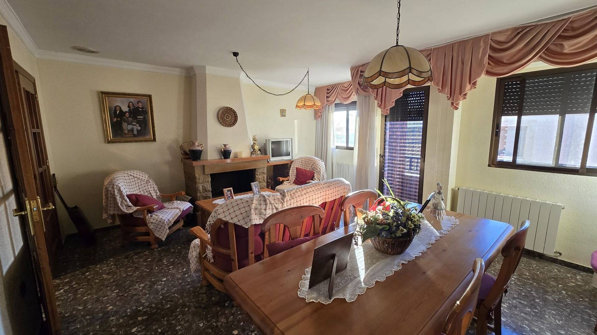 Het appartement op de bovenverdieping bestaat uit vier slaapkamers en twee badkamers, een keuken, een lichte woonkamer met open haard en een grote bijkeuken.