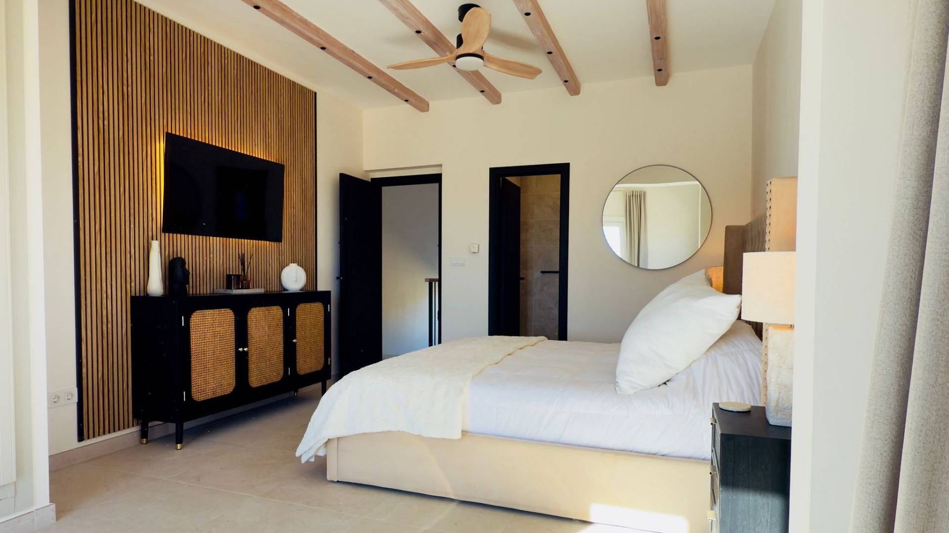 De buitenruimte is al even indrukwekkend, met een nieuw zwembad van 8 x 4 meter, ideaal om te ontspannen, omgeven door ligweiden, perfect om onvergetelijke momenten te beleven met familie en vrienden. De zorgvuldig aangelegde tuin, versierd met meer dan honderd amandelbomen, biedt een serene en natuurlijke ruimte, perfect voor zowel rustig genieten als het organiseren van bijeenkomsten. De woning beschikt tevens over een buitenkeuken, een volledig uitgeruste barbecue en een entertainmentgedeelte, evenals een CCTV- en alarmsysteem voor extra beveiliging. Het huis wordt volledig gemeubileerd opgeleverd en is direct klaar om te betrekken.