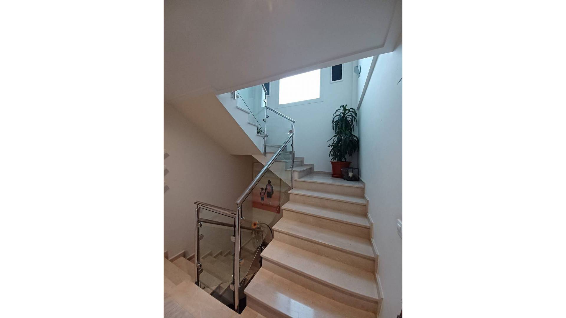 U betreedt dit goed onderhouden huis via een elektrische voetgangerspoort vanaf de rustige weg met voldoende parkeergelegenheid, in de tuin omringd door volwassen Cypriotische bomen en volledig geplaveid rondom het huis. De ingang van het huis bevindt zich onder een overdekt terras, en komt binnen in een grote hal met trappen die omhoog en omlaag gaan, allemaal met glazen panelen en marmeren trappen. Aan de linkerkant is de woon-/eetkamer met dubbele openslaande deuren aan beide kanten die uitkomen op twee terrassen, er is ook een centraal airconditioningsysteem in alle kamers op de begane grond en de eerste verdieping, en alle ramen zijn dubbel glas in het hele huis.