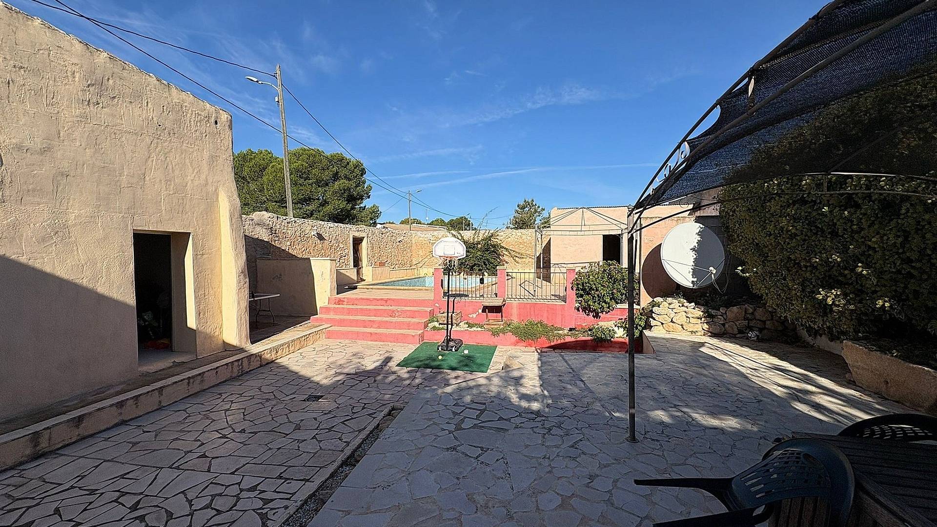 Op slechts 1 minuut lopen van een restaurant, bodega en autogarage, combineert deze woning landelijke charme met dagelijks gemak. Zowel Monóvar als Pinoso liggen op minder dan 10 minuten rijden, met supermarkten, winkels, cafés en alle noodzakelijke voorzieningen.