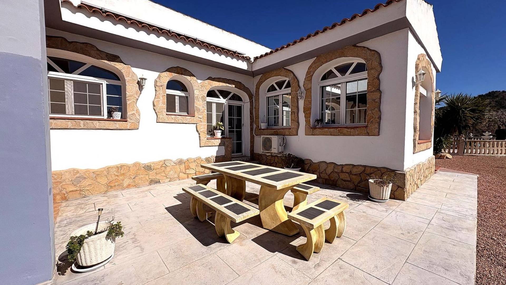 Perfect gelegen op korte afstand van La Romana, Monóvar, Salinas, Pinoso, Elda en Petrer, biedt deze prachtige woning de zeldzame kans om een ​​instapklare bergwoning te bezitten met spectaculair panoramisch uitzicht en uitstekend modern comfort. Absoluut een bezichtiging waard.