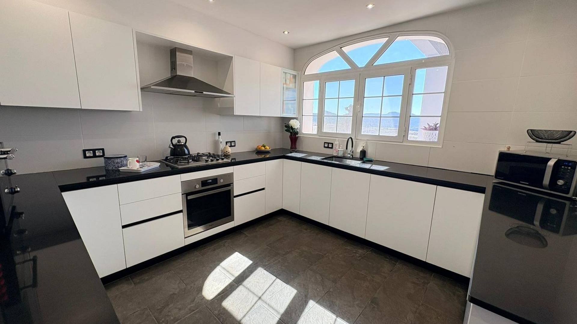Comfort is het hele jaar door gegarandeerd met centrale verwarming op olie en radiatoren, airconditioning in alle slaapkamers en de woonkamer, en een gezellige pelletkachel voor koelere avonden. De indrukwekkende, in Duitsland ontworpen keuken is voorzien van geïntegreerde apparatuur en elegante soft-close kasten, aangevuld met doorstroomboilers in zowel de keuken als de bar.