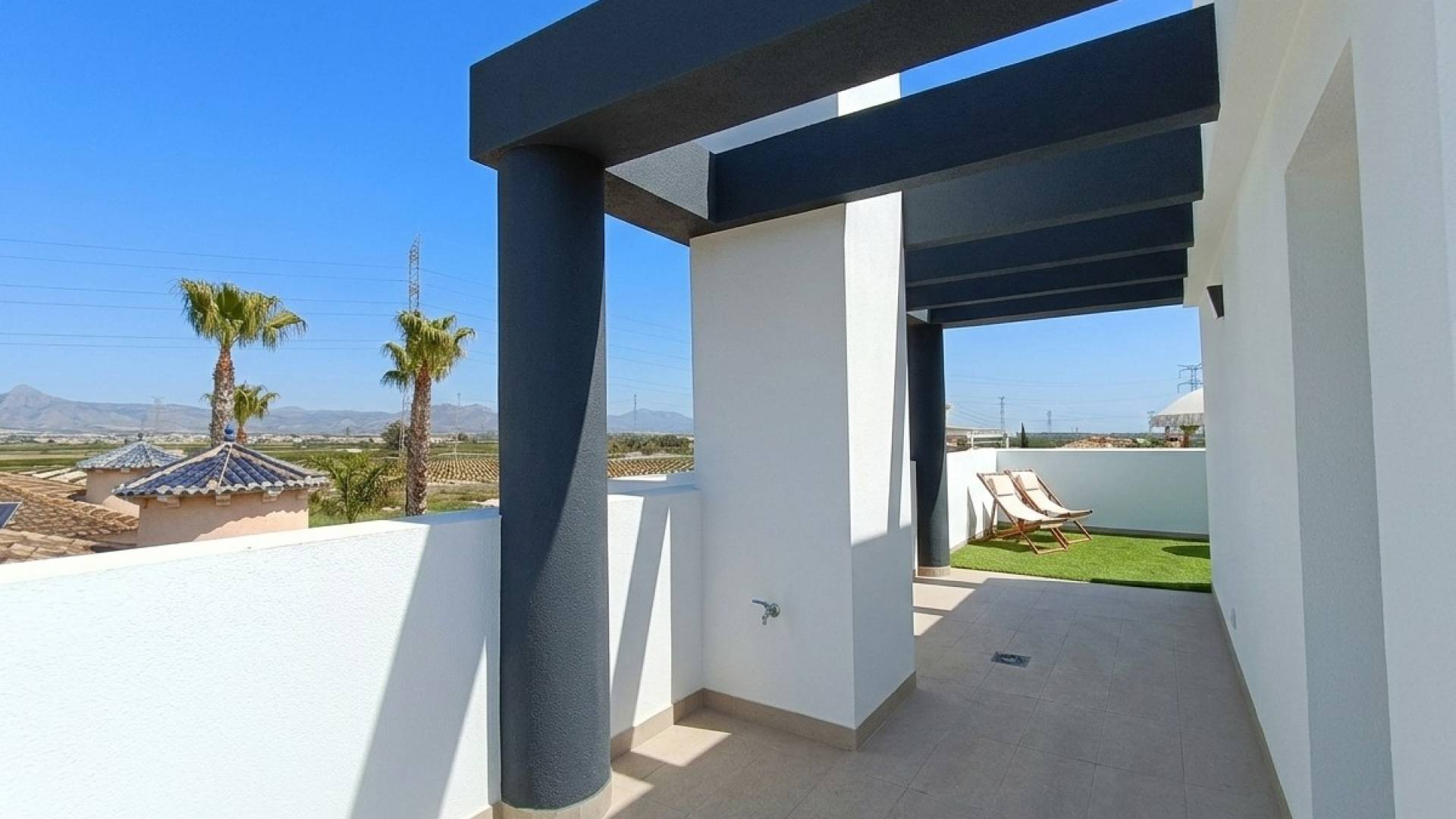 De tweede verdieping biedt een indrukwekkend privé solarium van 39 m², ideaal voor een chill-out zone, buitenkeuken of ontspanningsruimte om het hele jaar door van de zon te genieten.