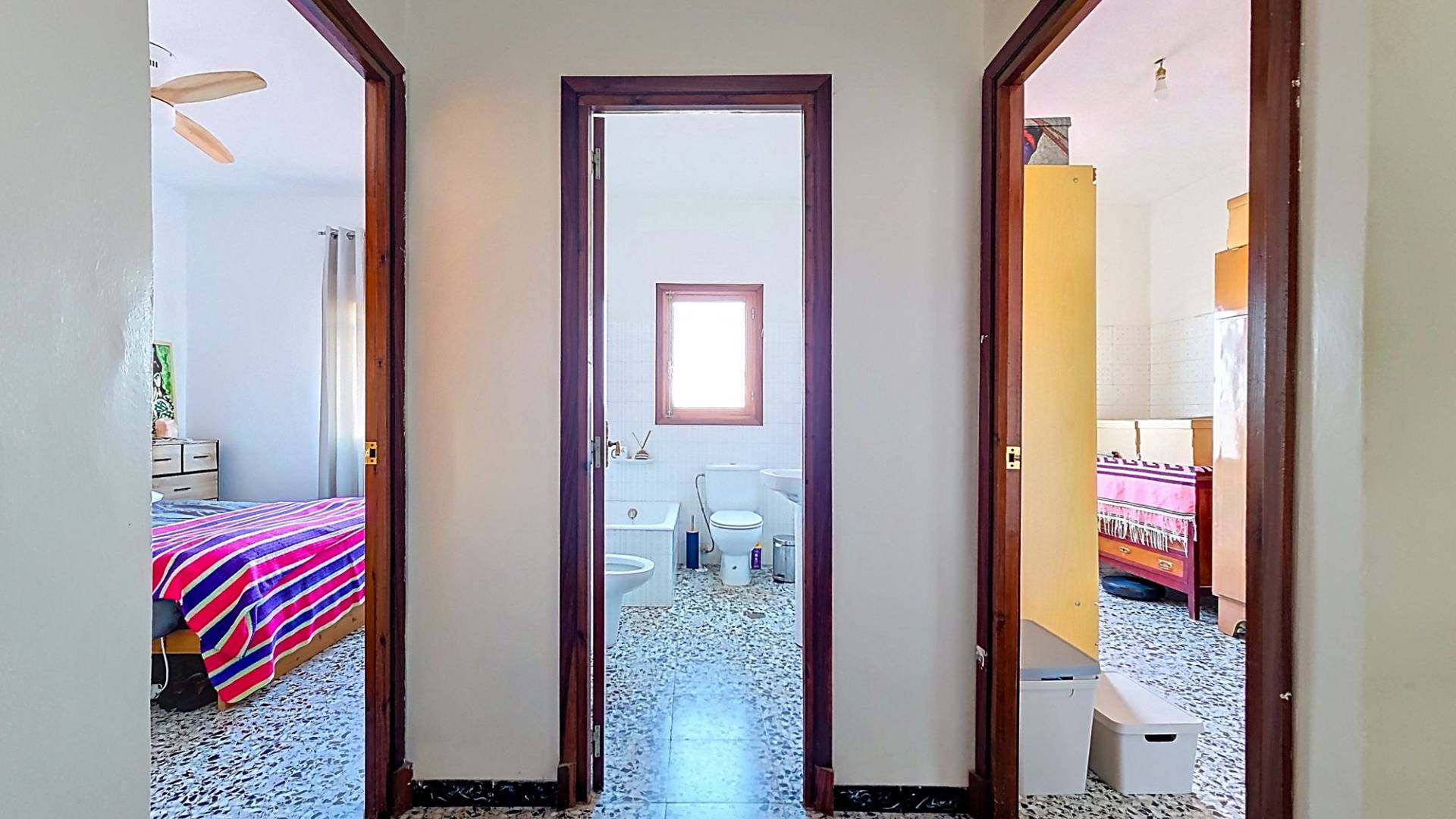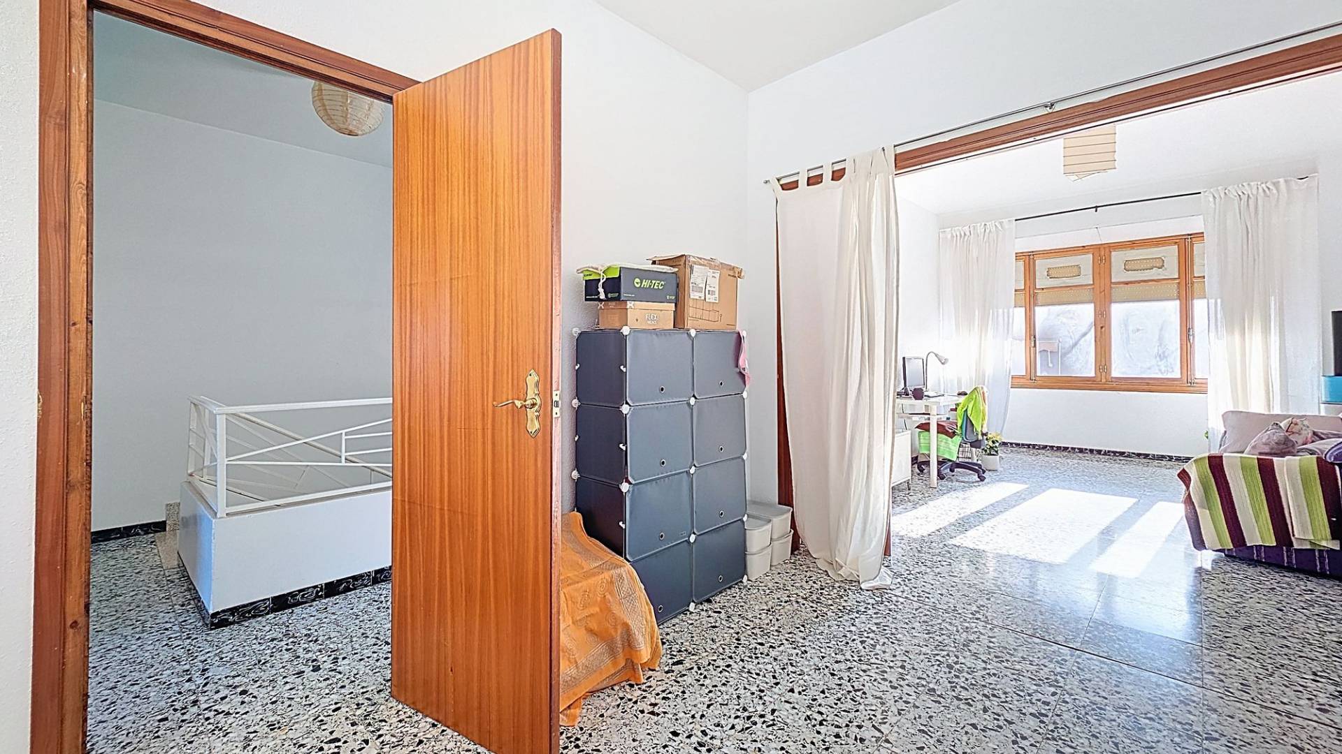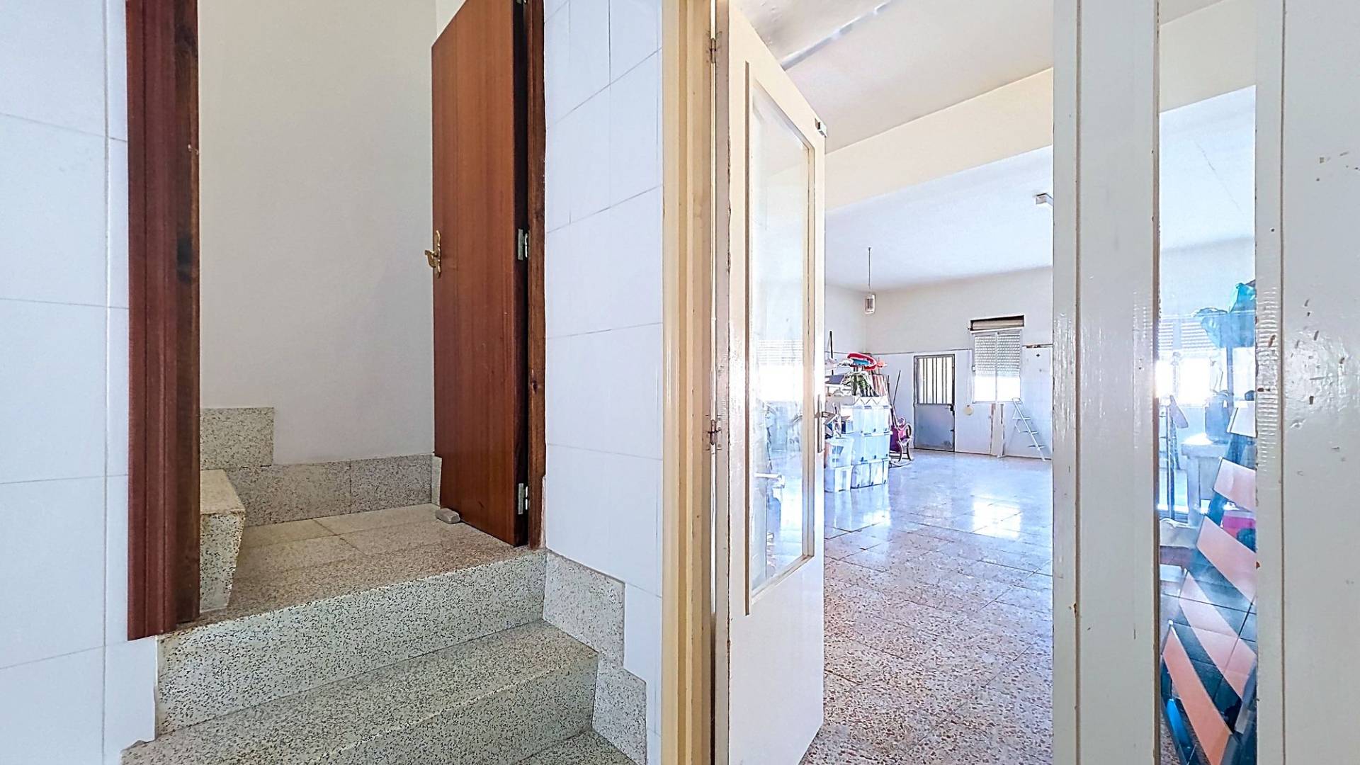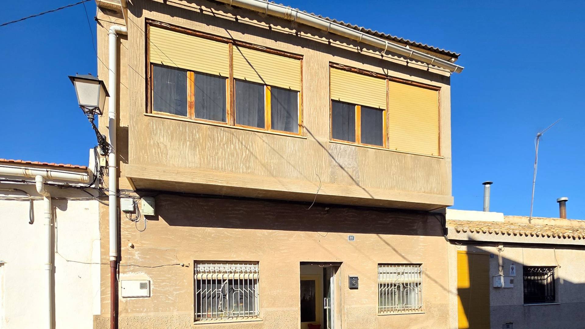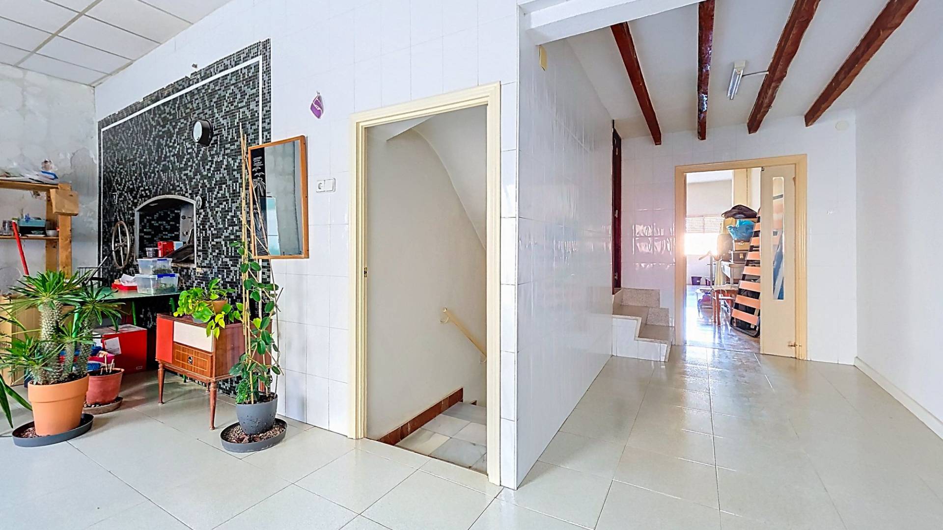 Deze nette woning is met recht ‘royaal’ te noemen en biedt een geweldige kans om er met een groot gezin te wonen, er familie of vrienden uit te nodigen of er een kantoor/winkel aan huis in te vestigen. De woning biedt een hoofdentree aan de ene straat en een toegang tot de patio aan een andere straat. Je kunt hierdoor op twee verschillende niveaus binnen komen. Totaal heeft de woning maar liefst drie verdiepingen waarvan de topverdieping een ruim dakterras heeft. De woningVia de hoofdingang wordt een ruime entree betreden. Hier bevond zich vroeger een bakkerij en er zijn nog karakteristieke details van terug te zien. Er is toegang tot de beneden gelegen verdieping en in het achtergelegen deel is er toegang tot de bovengelegen verdieping. In dit achtergelegen deel bevindt zich een grote ruimte die geheel naar eigen wens kan worden ingericht (zie onze foto’s met een aantal impressies). Aan het achterste deel van deze ruimte bevindt zich nog een inpandig terras.De onderliggende verdieping heeft een woonkamer met open keuken met aangrenzend een ruime voorraadkamer. Vanuit de living zijn drie kamers bereikbaar. Twee kamers zijn op dit moment tot een dubbele slaapkamer gemaakt maar de tussenmuur kan eenvoudig weer worden dichtgemaakt zodat er op deze verdieping drie slaapkamers kunnen zijn. Natuurlijk kan één van de kamers ook gebruikt worden als bijvoorbeeld een aparte eetkamer. Er bevindt zich op deze verdieping een badkamer en er is toegang tot de gezellige patio. De patio is deels overdekt en heeft een aparte barbecue ruimte waar zich ook de opstelling van de wasmachine bevindt. Het is een heerlijke plek om te kunnen genieten van het leven in Spanje. Dan is er nog de bovengelegen verdieping. Op deze verdieping bevinden zich drie slaapkamer en nog een grote kamer die eenvoudig tot twee kamers kan worden aangepast. Zo zijn er maar liefst vijf slaapkamers op deze verdieping, maar de grote kamer kan ook prima dienst doen als bijvoorbeeld een tweede woonkamer. Er bevindt zich op deze verdieping een badkamer. Één van de slaapkamers heeft een inloopkastruimte en biedt toegang tot het ruime dakterras. Het dakterras biedt een fraai uitzicht over Pinoso en de omliggende bergen.VoorzieningenDeze ruime dorpswoning biedt een geweldige kans om te kunnen wonen en desgewenst werken in het geliefde Pinoso. De woning is aangesloten op elektriciteit en water.PinosoIn Pinoso zijn alle dagelijkse voorzieningen beschikbaar, waaronder supermarkten, scholen, een medisch centrum en sportfaciliteiten, evenals een uitgebreid aanbod aan restaurants. Pinoso kent vele wandel-, hiking- en fietsroutes en is omringd door amandel-, olijf- en wijngaarden. De sfeer is gemoedelijk en Pinoso biedt een mooie balans tussen de traditionele Spaanse cultuur, de mooie natuur en moderne voorzieningen. Zowel de luchthavens van Alicante en Murcia als de stranden zijn binnen een uur te bereiken. Neem vandaag nog contact met ons op voor een bezichtiging! Deze woning is exclusief in de verkoop, dit betekent dat alle documenten vooraf zijn gecontroleerd en alles in orde is of in orde gebracht kan worden.