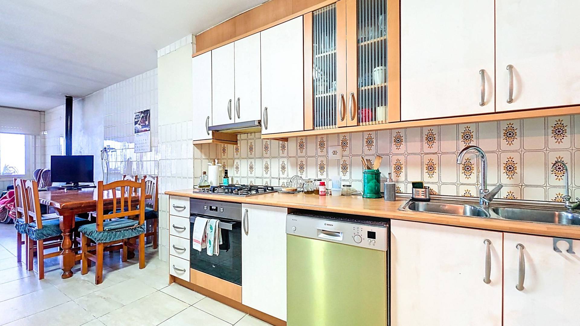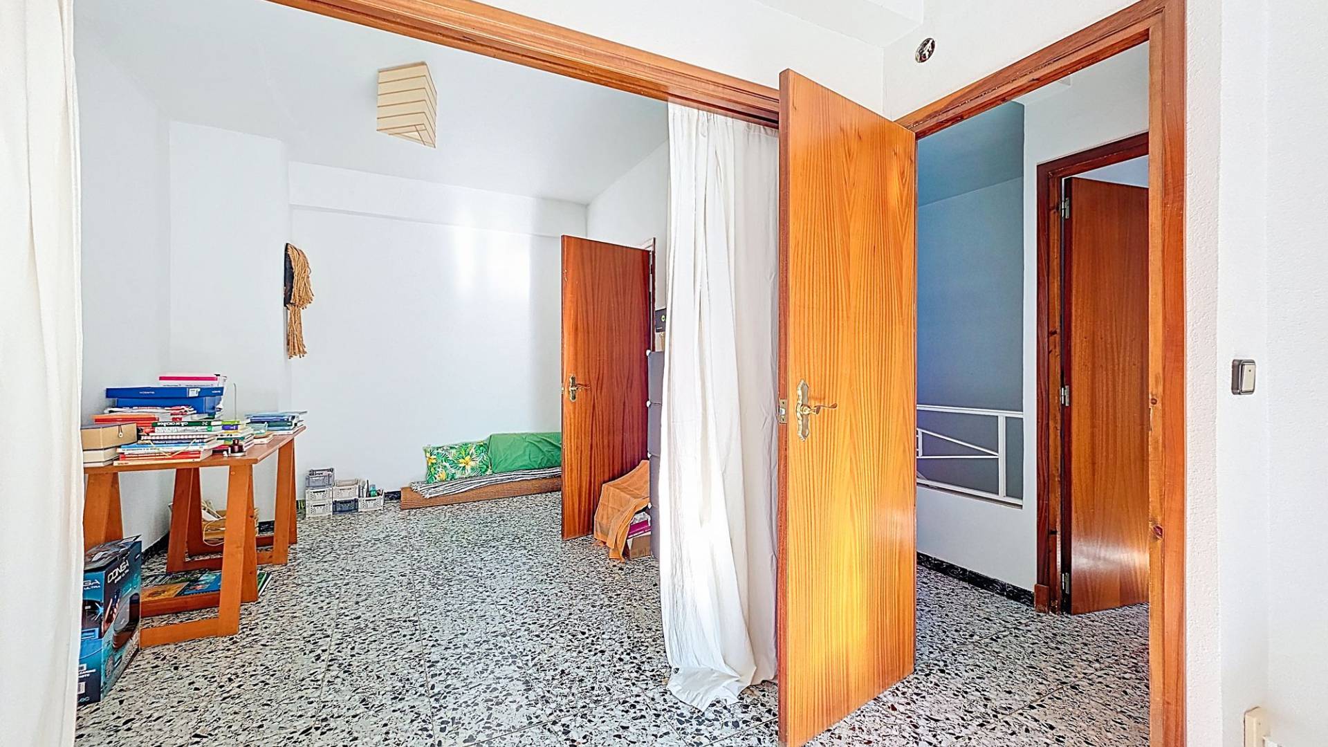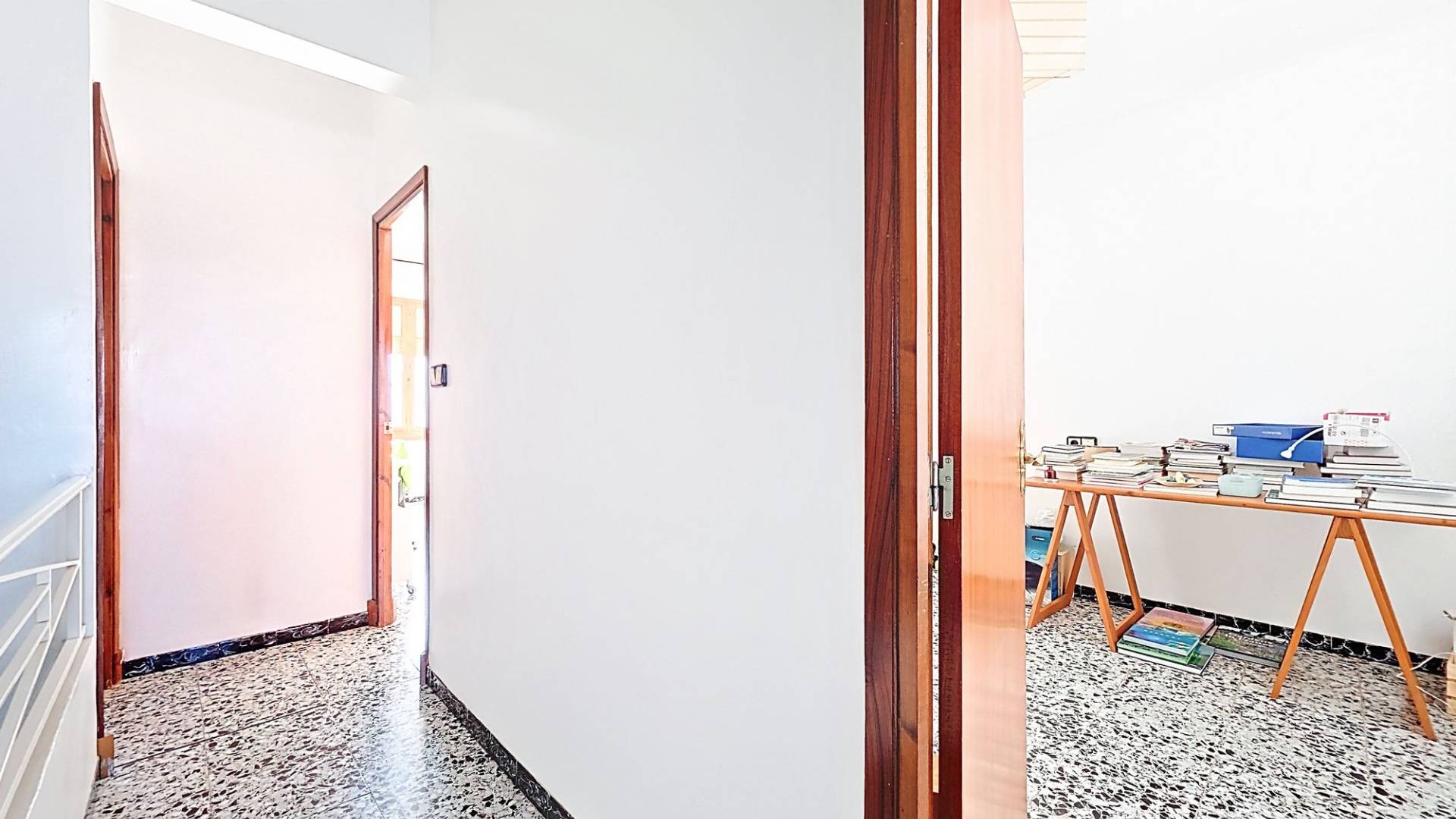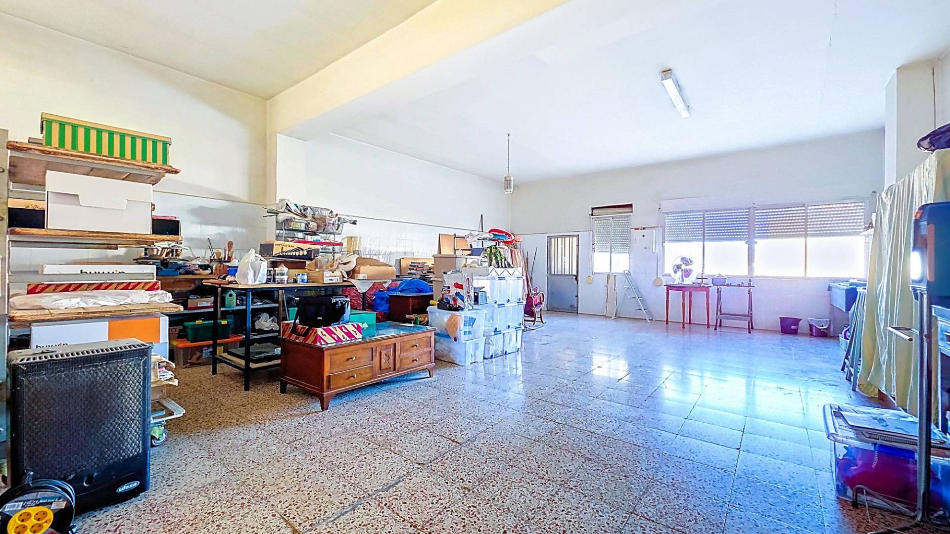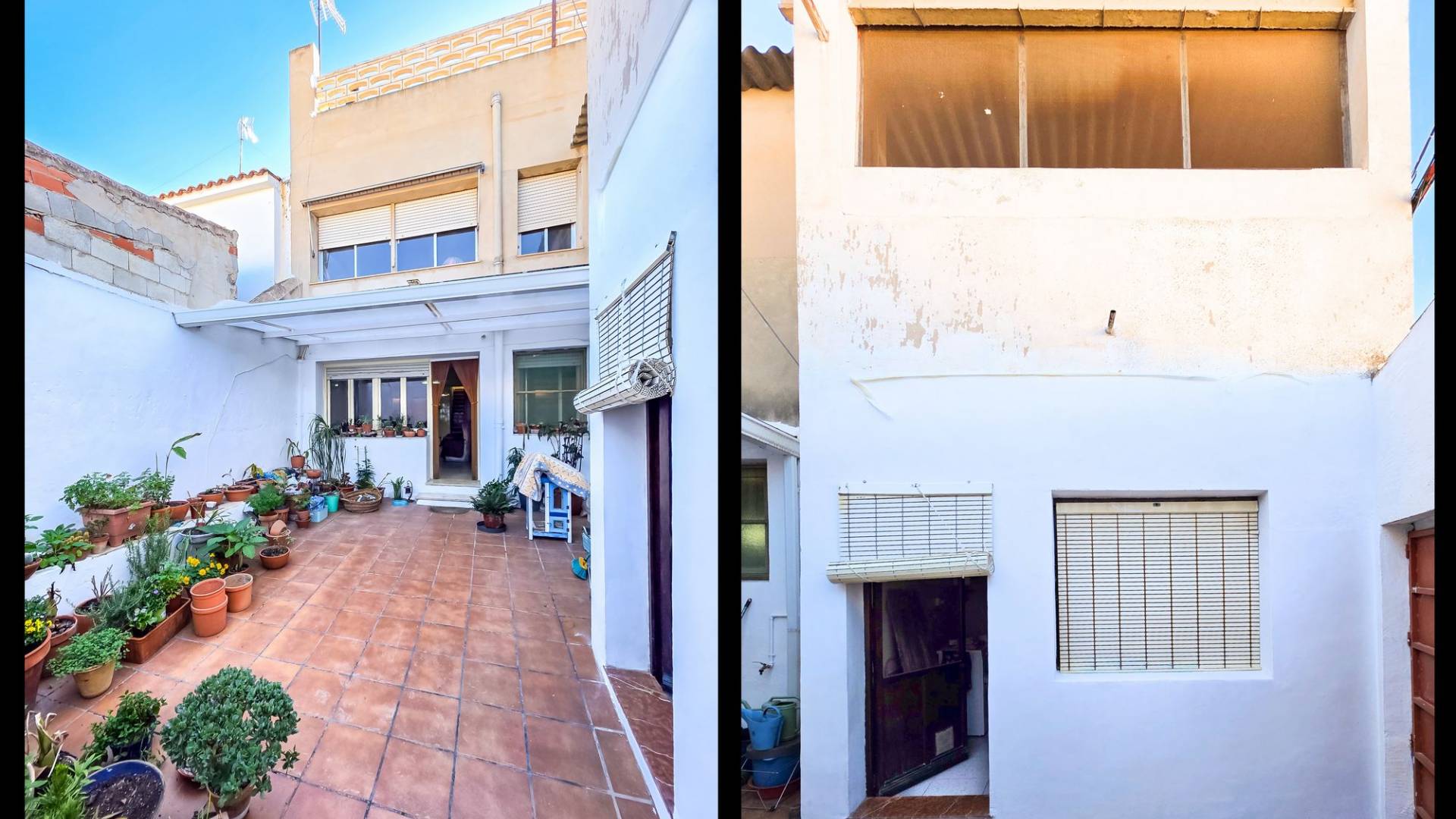 Deze nette woning is met recht ‘royaal’ te noemen en biedt een geweldige kans om er met een groot gezin te wonen, er familie of vrienden uit te nodigen of er een kantoor/winkel aan huis in te vestigen. De woning biedt een hoofdentree aan de ene straat en een toegang tot de patio aan een andere straat. Je kunt hierdoor op twee verschillende niveaus binnen komen. Totaal heeft de woning maar liefst drie verdiepingen waarvan de topverdieping een ruim dakterras heeft. De woningVia de hoofdingang wordt een ruime entree betreden. Hier bevond zich vroeger een bakkerij en er zijn nog karakteristieke details van terug te zien. Er is toegang tot de beneden gelegen verdieping en in het achtergelegen deel is er toegang tot de bovengelegen verdieping. In dit achtergelegen deel bevindt zich een grote ruimte die geheel naar eigen wens kan worden ingericht (zie onze foto’s met een aantal impressies). Aan het achterste deel van deze ruimte bevindt zich nog een inpandig terras.De onderliggende verdieping heeft een woonkamer met open keuken met aangrenzend een ruime voorraadkamer. Vanuit de living zijn drie kamers bereikbaar. Twee kamers zijn op dit moment tot een dubbele slaapkamer gemaakt maar de tussenmuur kan eenvoudig weer worden dichtgemaakt zodat er op deze verdieping drie slaapkamers kunnen zijn. Natuurlijk kan één van de kamers ook gebruikt worden als bijvoorbeeld een aparte eetkamer. Er bevindt zich op deze verdieping een badkamer en er is toegang tot de gezellige patio. De patio is deels overdekt en heeft een aparte barbecue ruimte waar zich ook de opstelling van de wasmachine bevindt. Het is een heerlijke plek om te kunnen genieten van het leven in Spanje. Dan is er nog de bovengelegen verdieping. Op deze verdieping bevinden zich drie slaapkamer en nog een grote kamer die eenvoudig tot twee kamers kan worden aangepast. Zo zijn er maar liefst vijf slaapkamers op deze verdieping, maar de grote kamer kan ook prima dienst doen als bijvoorbeeld een tweede woonkamer. Er bevindt zich op deze verdieping een badkamer. Één van de slaapkamers heeft een inloopkastruimte en biedt toegang tot het ruime dakterras. Het dakterras biedt een fraai uitzicht over Pinoso en de omliggende bergen.VoorzieningenDeze ruime dorpswoning biedt een geweldige kans om te kunnen wonen en desgewenst werken in het geliefde Pinoso. De woning is aangesloten op elektriciteit en water.PinosoIn Pinoso zijn alle dagelijkse voorzieningen beschikbaar, waaronder supermarkten, scholen, een medisch centrum en sportfaciliteiten, evenals een uitgebreid aanbod aan restaurants. Pinoso kent vele wandel-, hiking- en fietsroutes en is omringd door amandel-, olijf- en wijngaarden. De sfeer is gemoedelijk en Pinoso biedt een mooie balans tussen de traditionele Spaanse cultuur, de mooie natuur en moderne voorzieningen. Zowel de luchthavens van Alicante en Murcia als de stranden zijn binnen een uur te bereiken. Neem vandaag nog contact met ons op voor een bezichtiging! Deze woning is exclusief in de verkoop, dit betekent dat alle documenten vooraf zijn gecontroleerd en alles in orde is of in orde gebracht kan worden.
