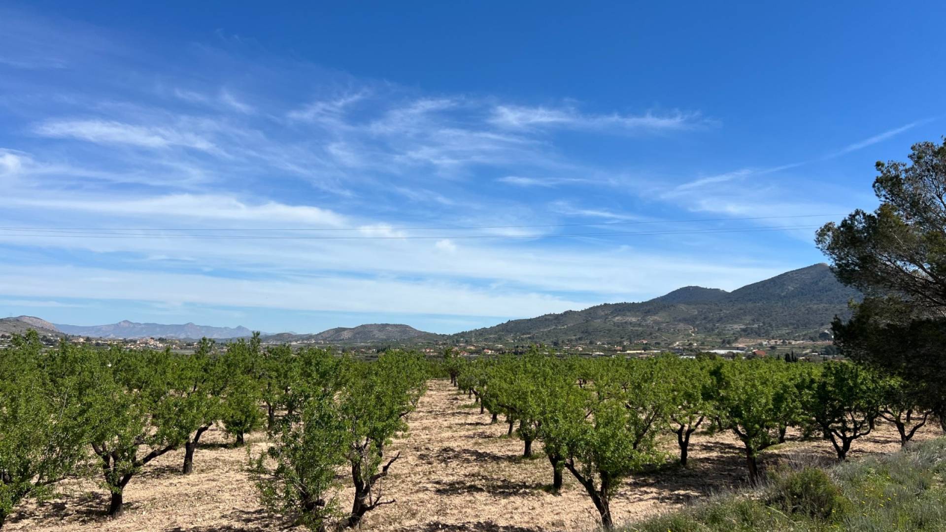 Het perceel is bereikbaar via een geasfalteerde weg en ligt in een zeer goede omgeving. De grond is beplant met productieve amandelbomen en biedt een charmante natuurlijke omgeving met prachtige uitzichten, vooral tijdens de bloeiperiode.
