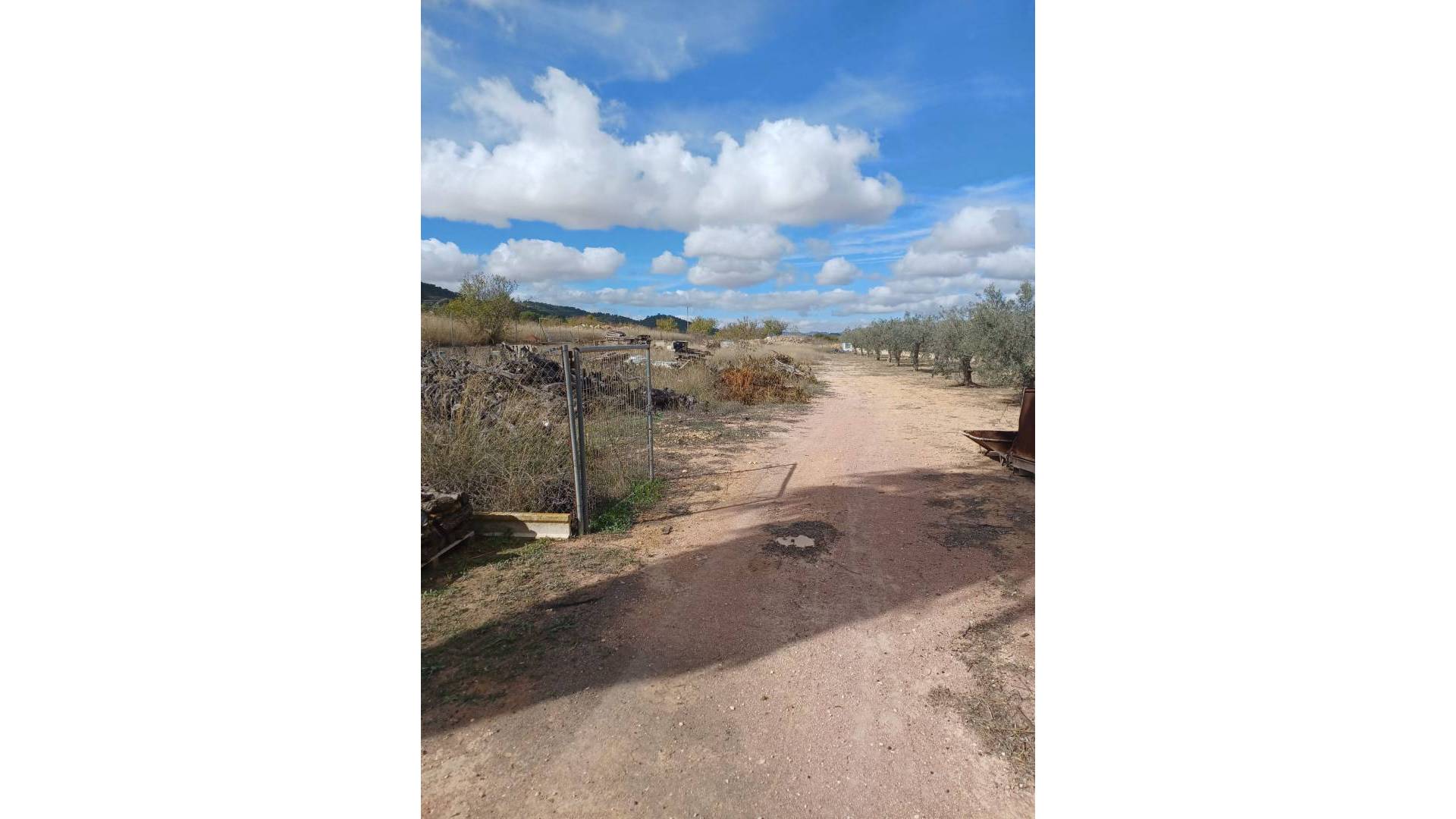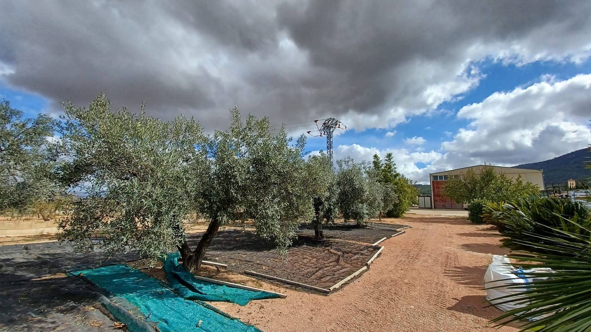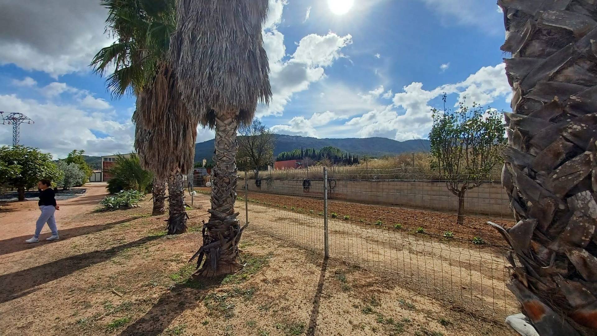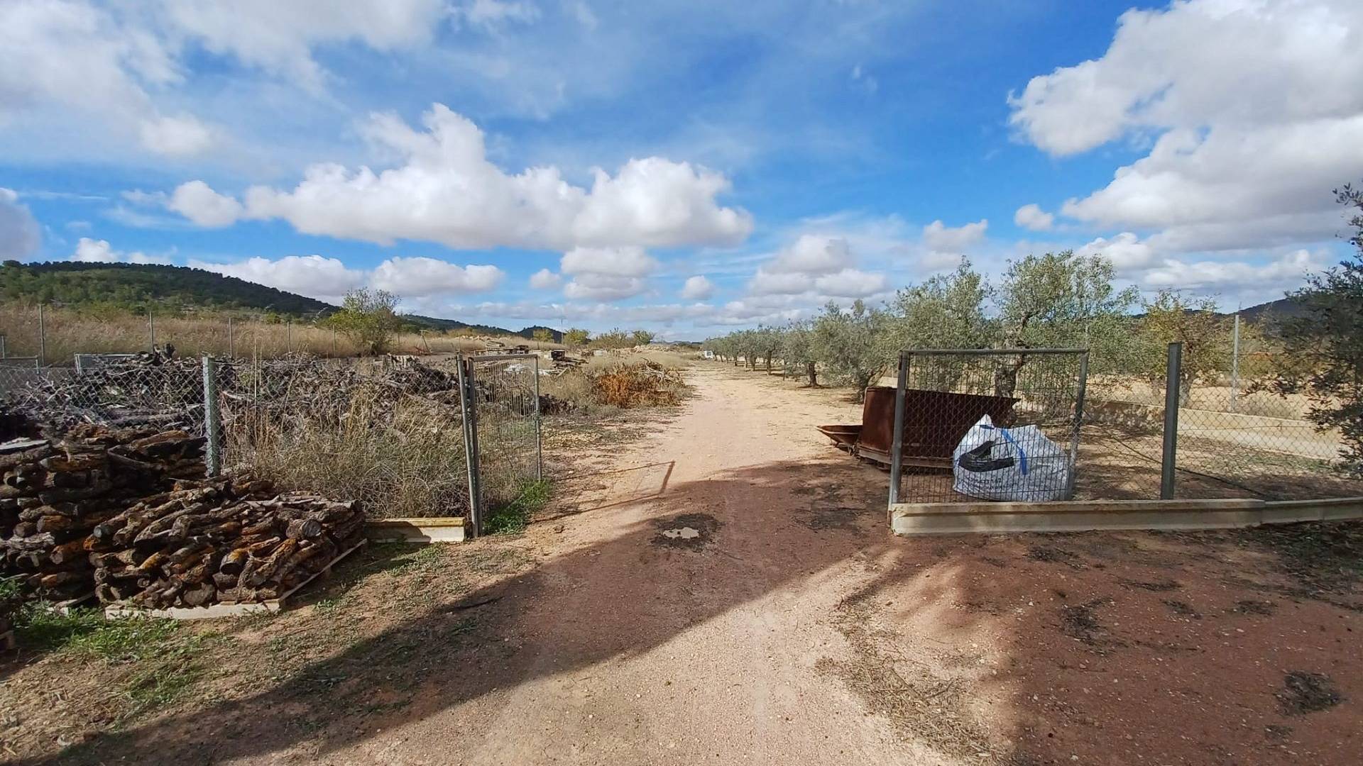 Aan de voor- en achterzijde van het pand bevinden zich verharde terrassen, evenals een poort die toegang geeft tot een moestuin en dierenverblijven. Er staan ook 30 volwassen olijfbomen, samen met een assortiment fruitbomen en palmen. Aan het einde van het perceel bevindt zich een poort die toegang geeft vanaf de andere onverharde weg.