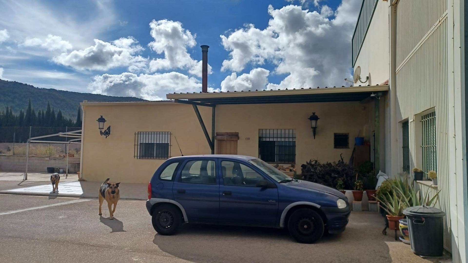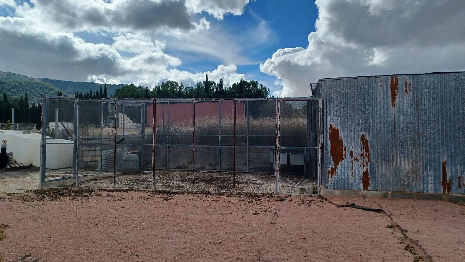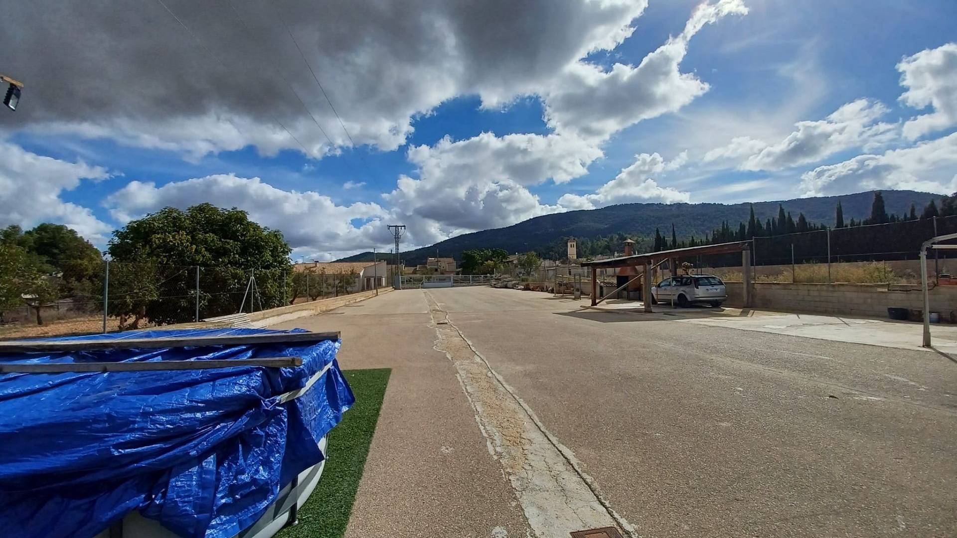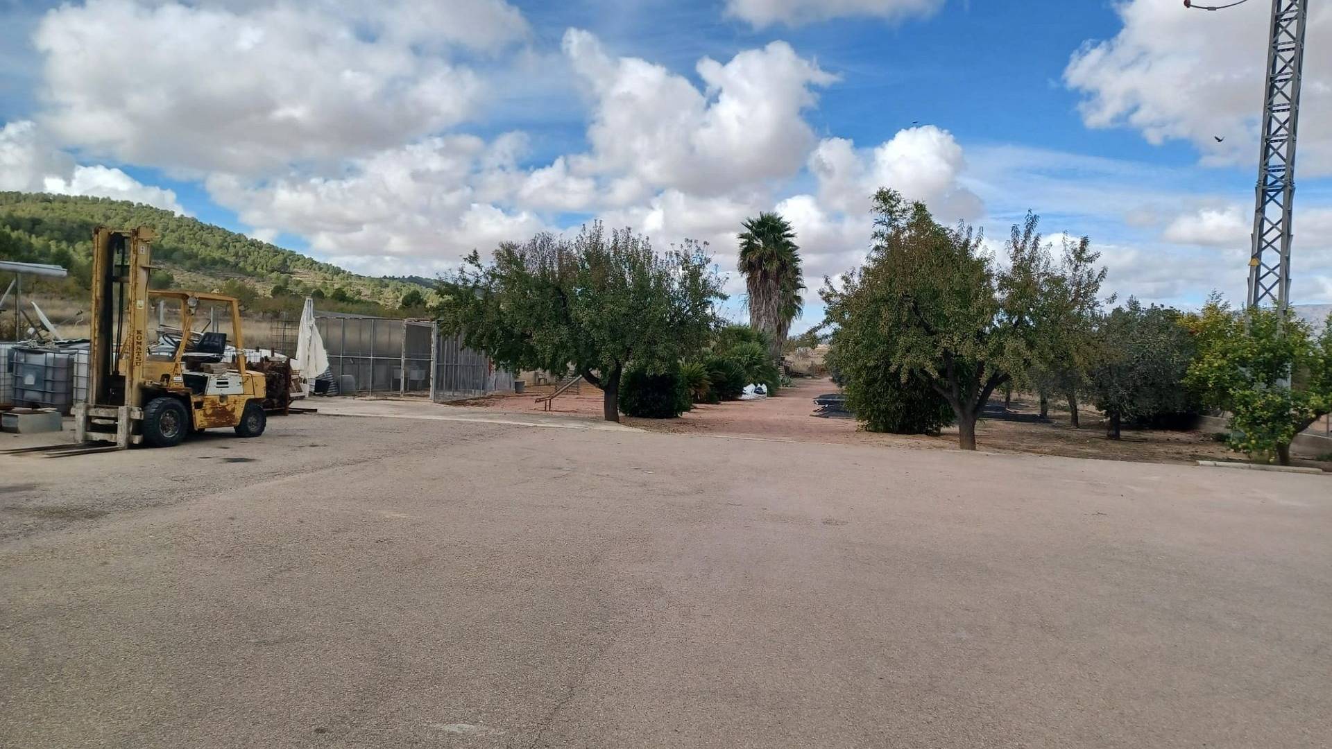 Aan de voor- en achterzijde van het pand bevinden zich verharde terrassen, evenals een poort die toegang geeft tot een moestuin en dierenverblijven. Er staan ook 30 volwassen olijfbomen, samen met een assortiment fruitbomen en palmen. Aan het einde van het perceel bevindt zich een poort die toegang geeft vanaf de andere onverharde weg.