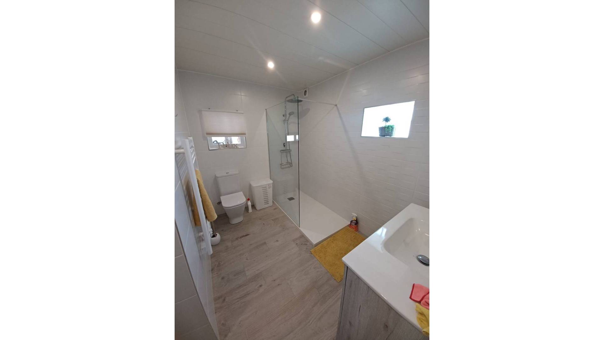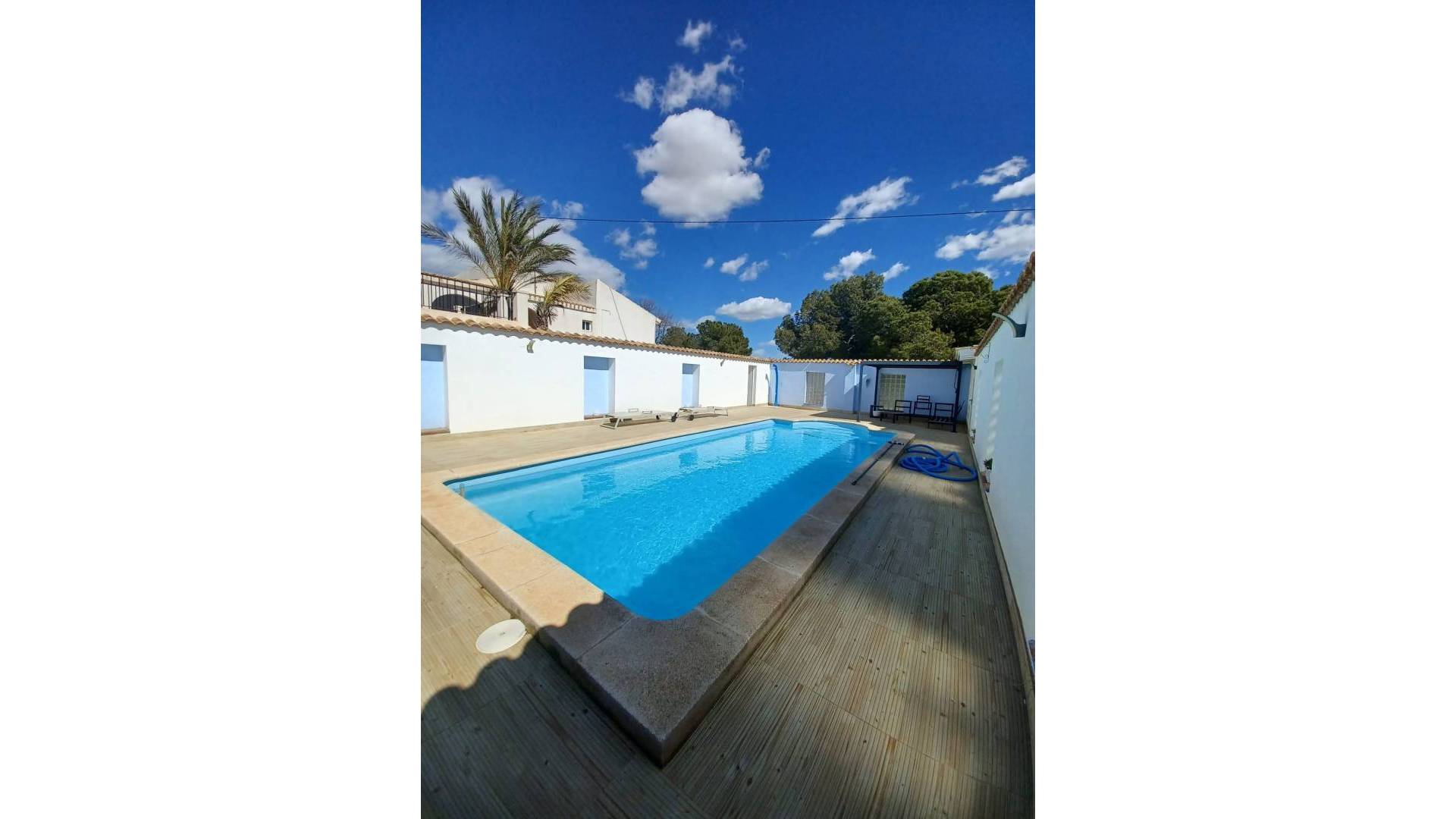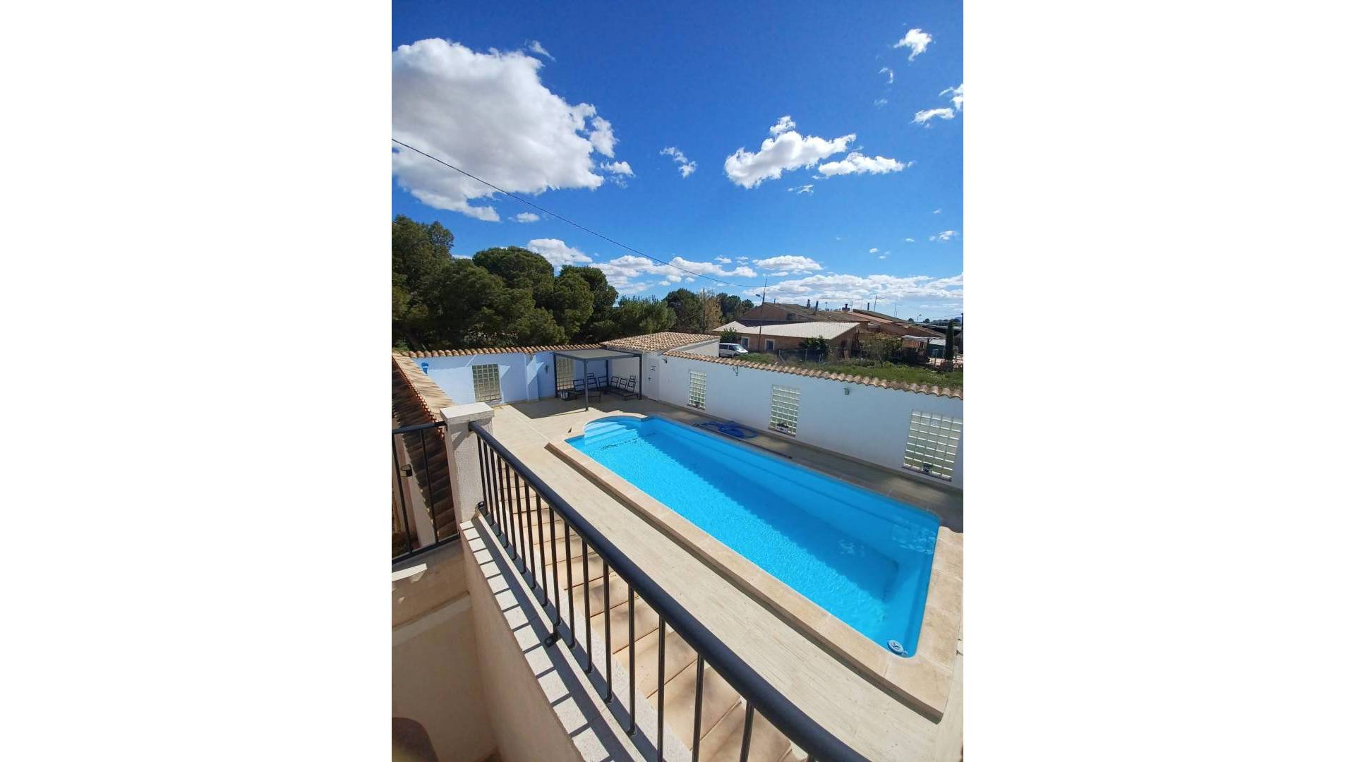 Vanuit de binnenplaats leidt een trap naar het zwembad, een afgesloten en zeer privé zwembadgedeelte met een ruim terras eromheen en een bioclimatische pergola van 3 x 3 meter voor schaduw, plus een buitendouche. Een deur geeft toegang tot een grote berging waar zich ook de zwembadpomp en het filtersysteem bevinden, zodat deze gemakkelijk toegankelijk zijn.