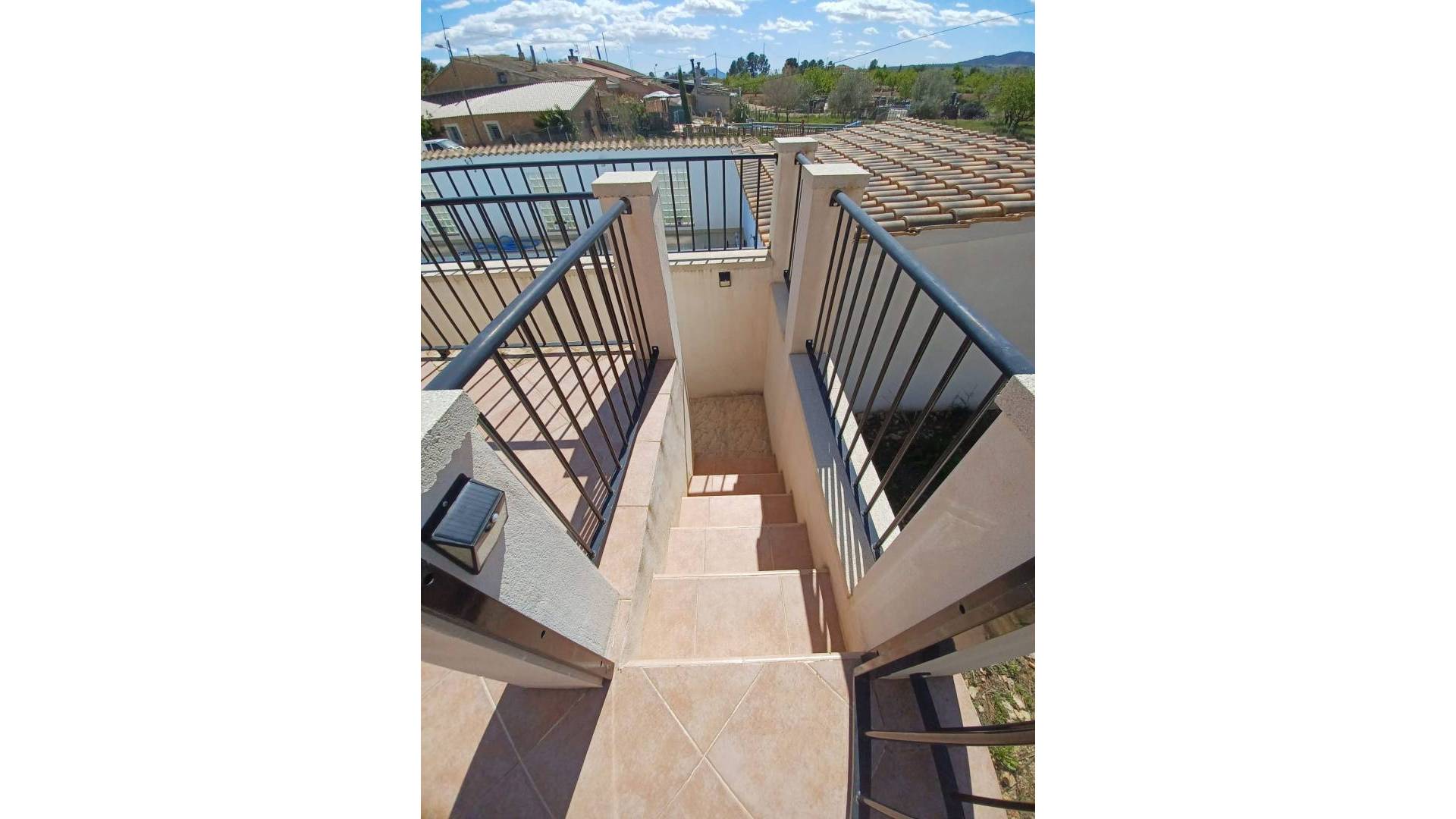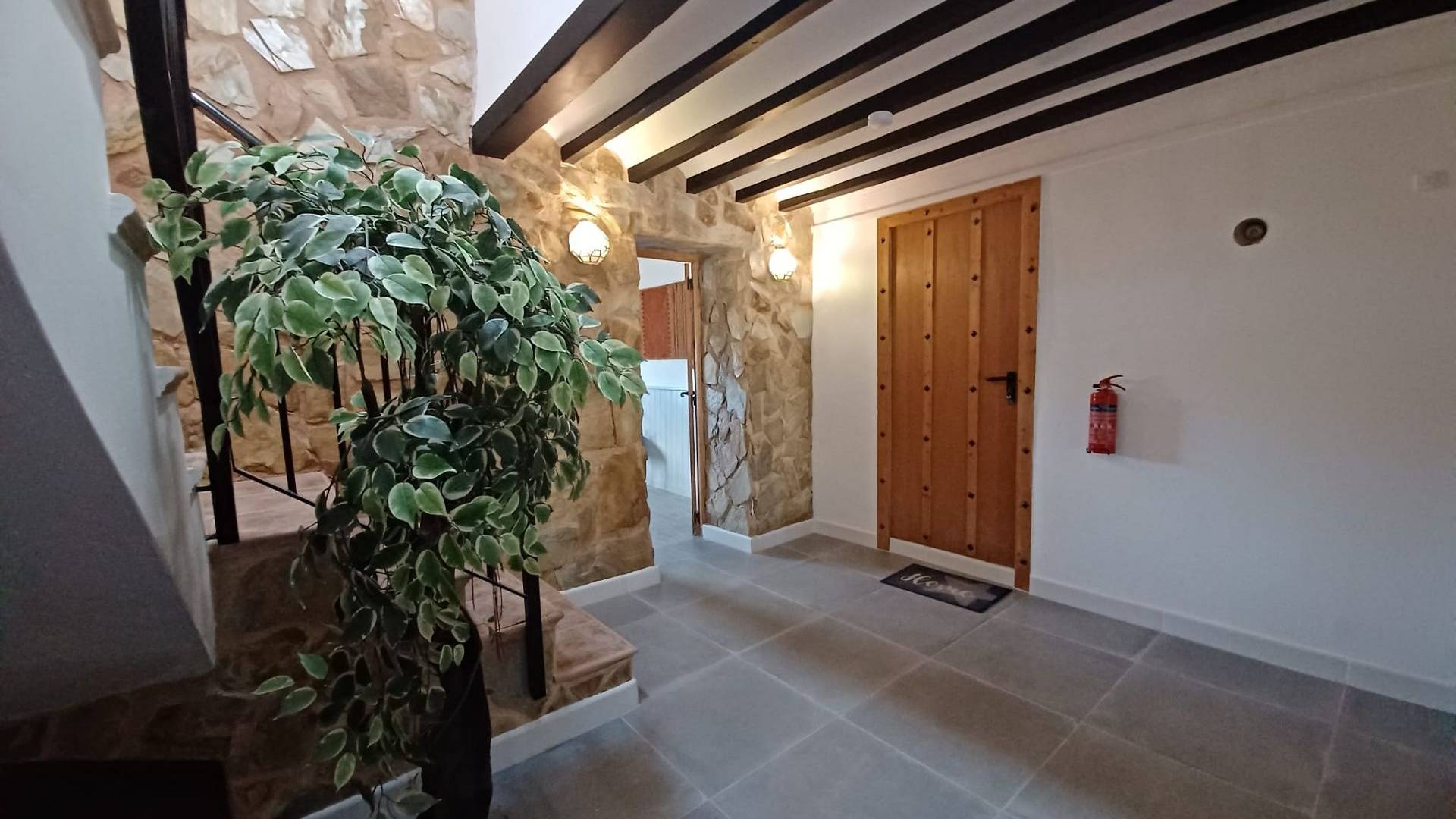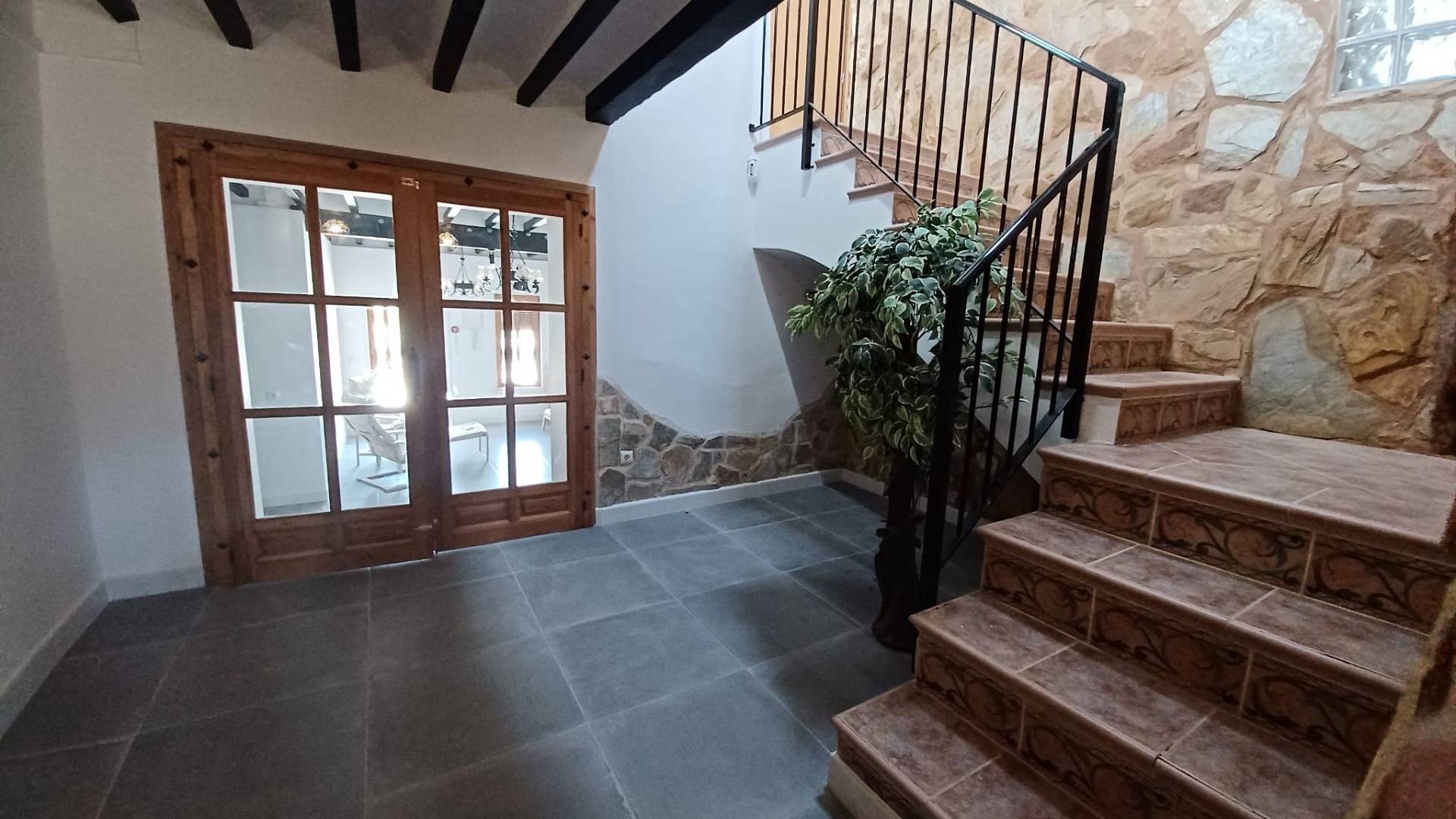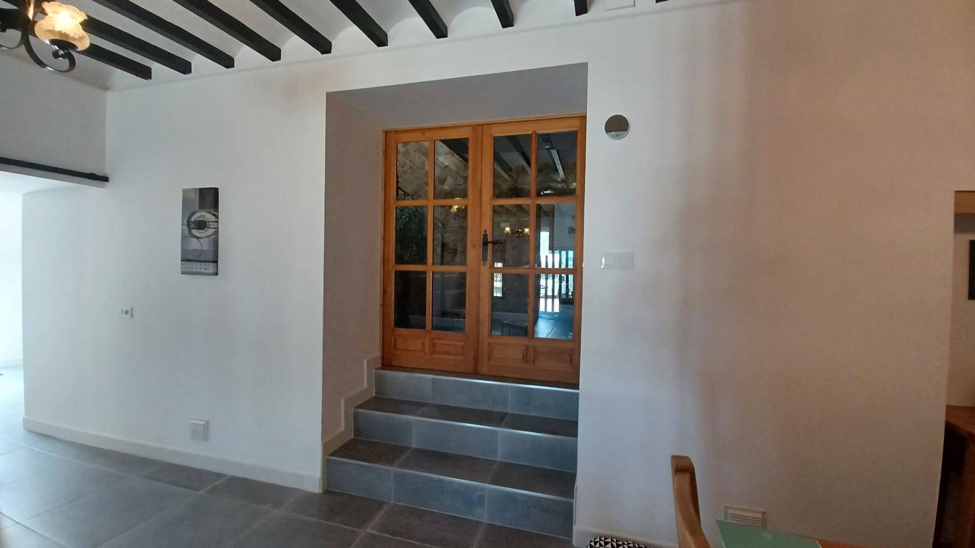 Tot slot is er vanuit de hal een deur naar het overdekte terras op de bovenverdieping, onder de bogen, evenals een open terras en de trap naar de binnenplaats en het zwembad.