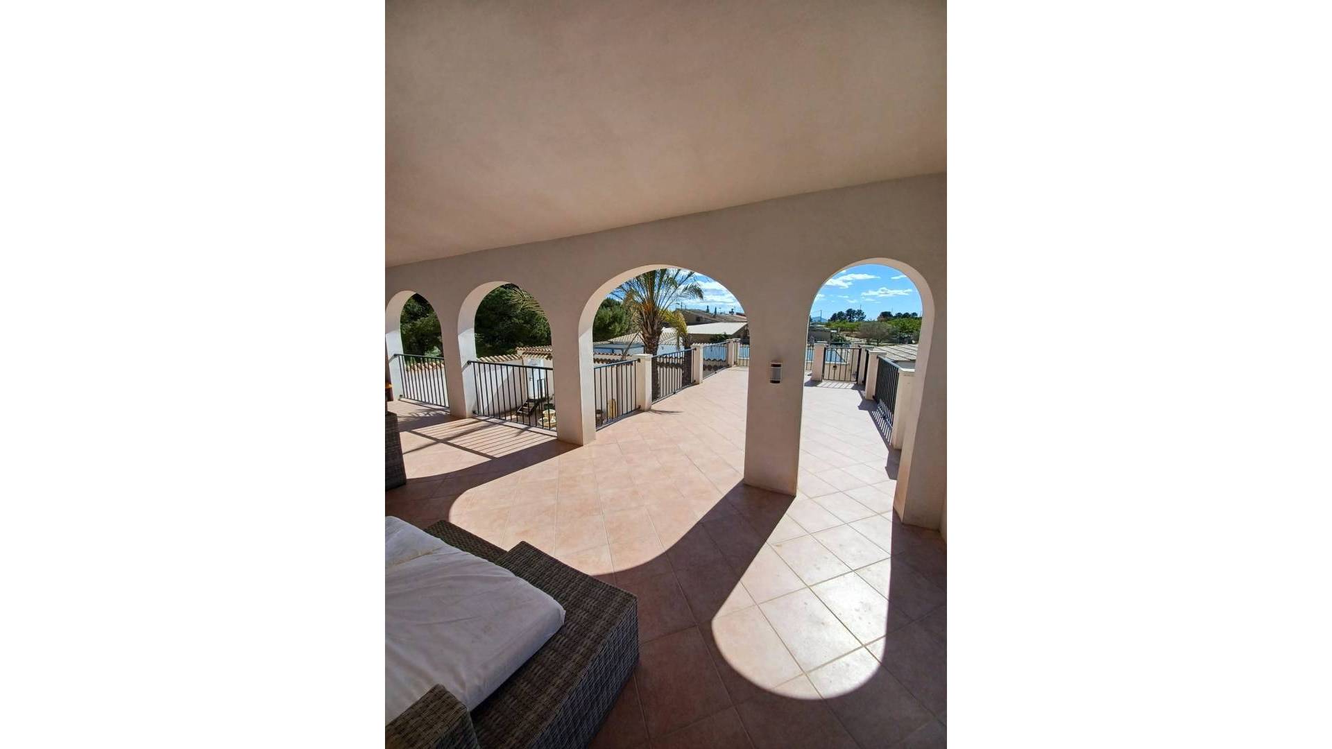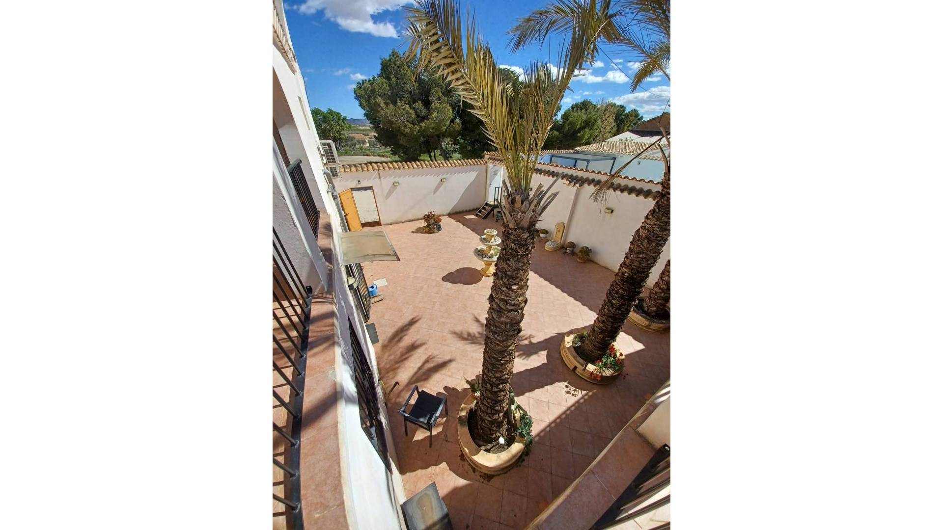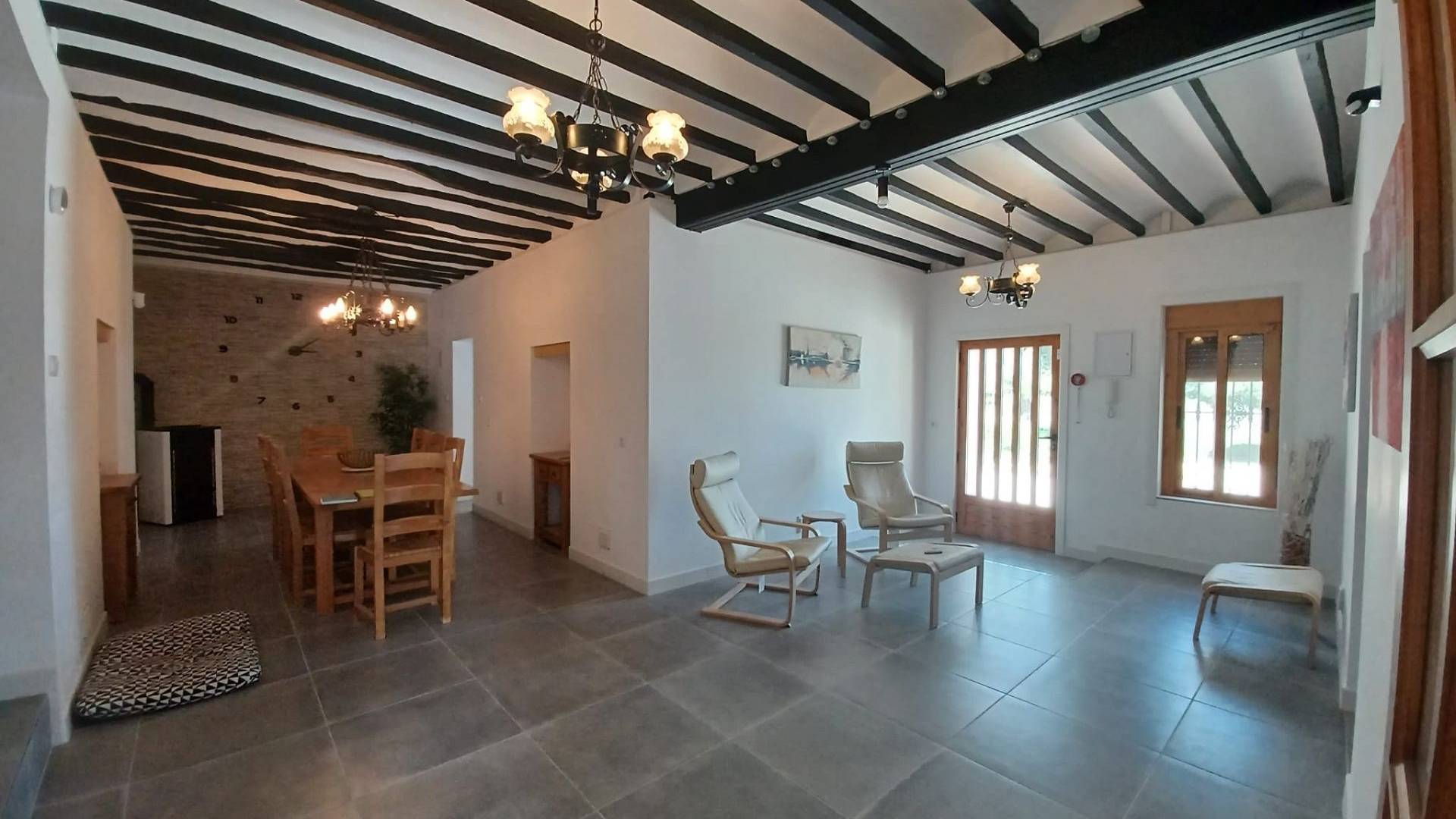 Tot slot is er vanuit de hal een deur naar het overdekte terras op de bovenverdieping, onder de bogen, evenals een open terras en de trap naar de binnenplaats en het zwembad.