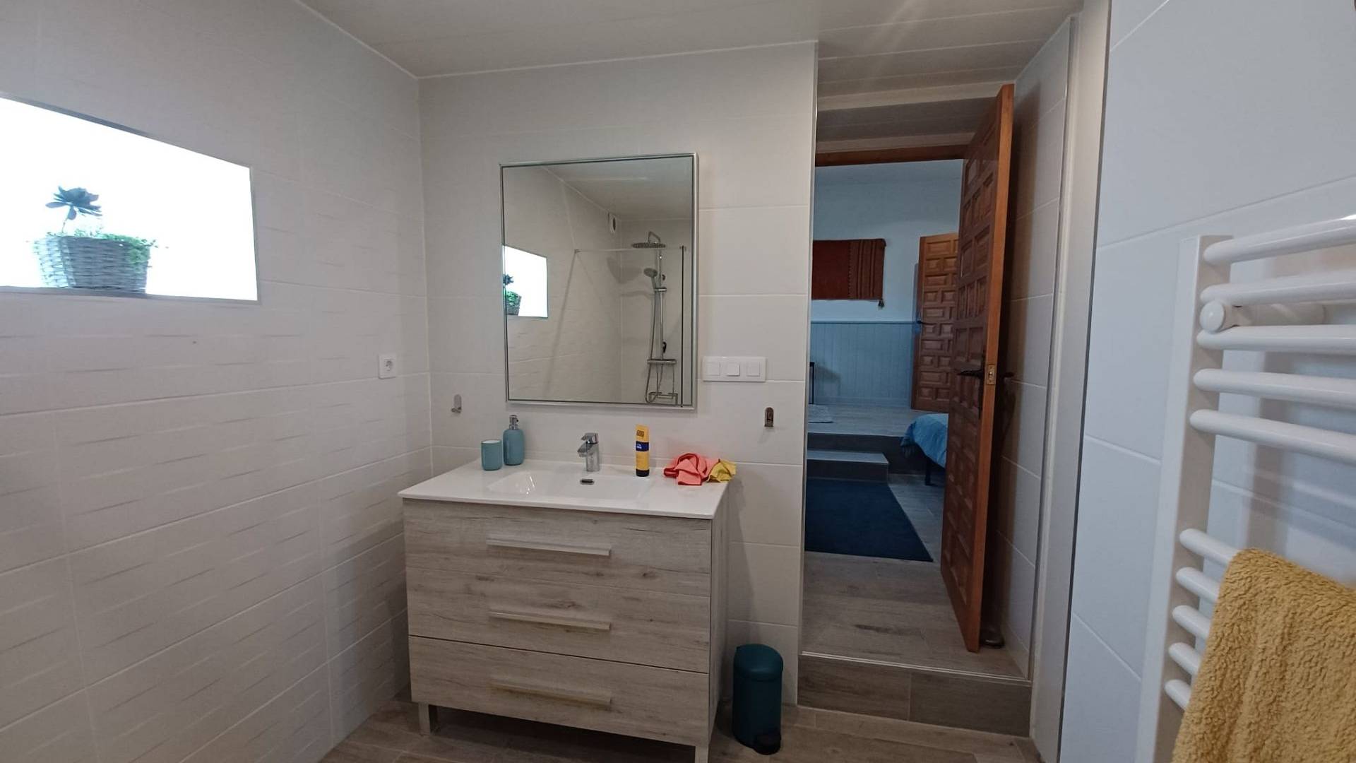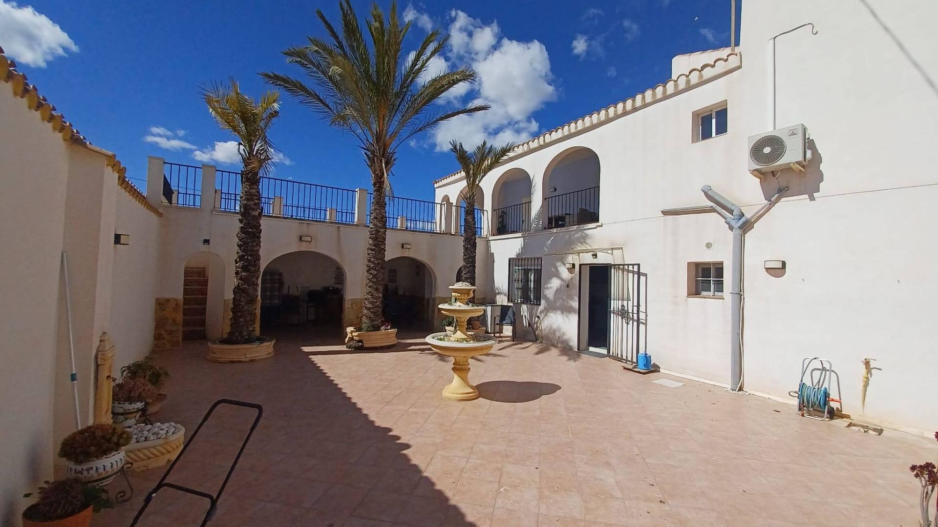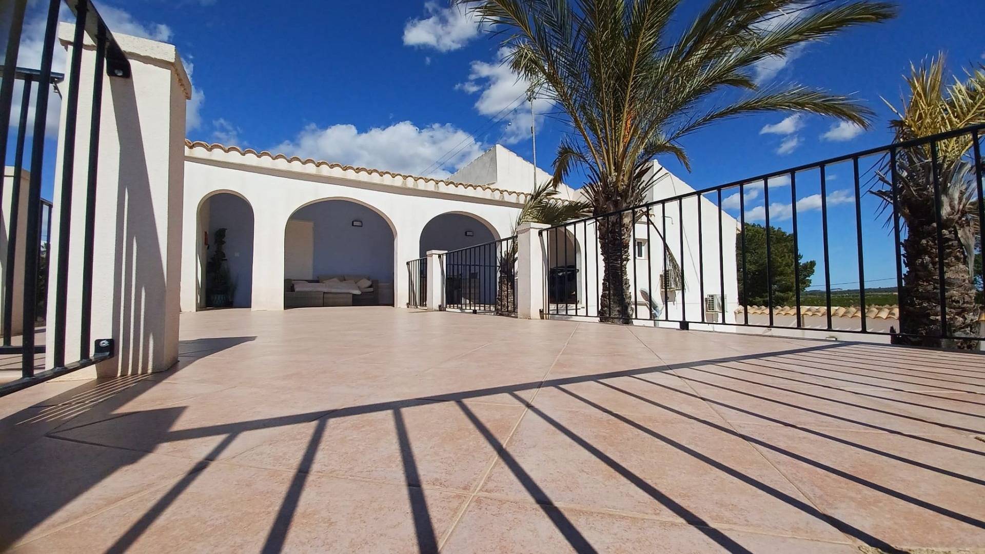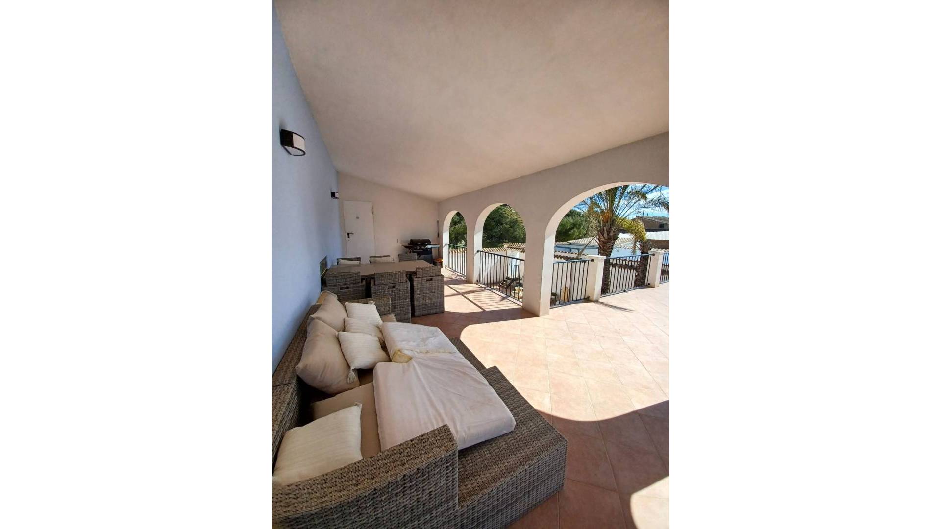 Tot slot is er vanuit de hal een deur naar het overdekte terras op de bovenverdieping, onder de bogen, evenals een open terras en de trap naar de binnenplaats en het zwembad.