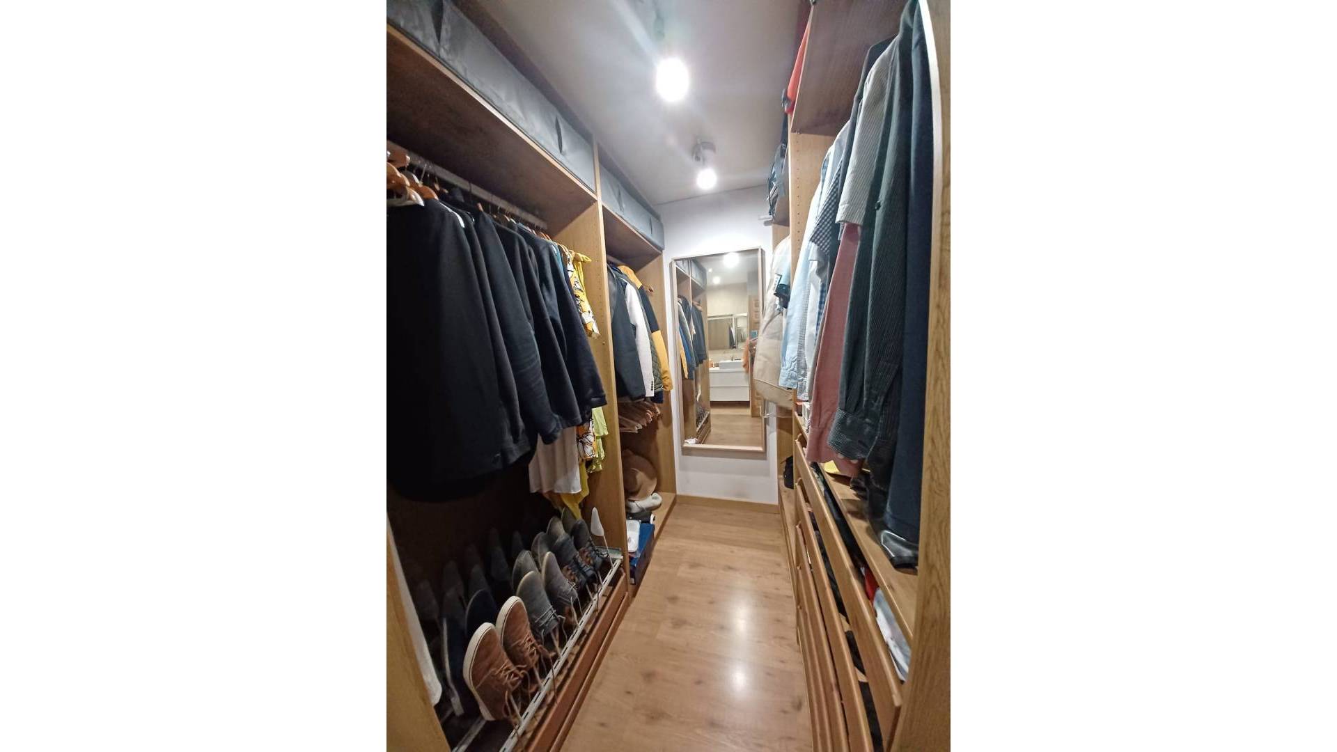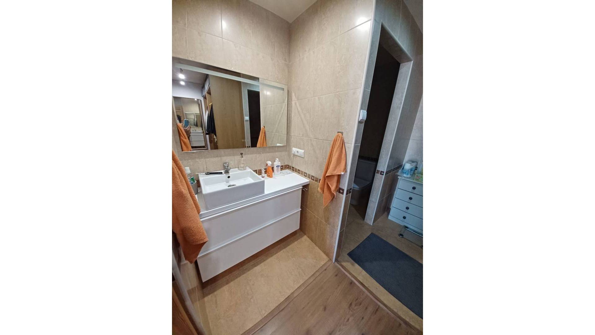 In het benedenappartement leiden dubbele deuren naar een andere hal met een deur naar de bodega, en een andere naar het aparte gastenappartement met een woon-/slaapkamer met airconditioning, en een grote en-suite badkamer met toilet, wastafel en een ruime inloopdouche, plus een verwarmd handdoekenrek en enkele opbergkasten. Dit is ideaal om uit te breiden naar het beneden- of bovenappartement als u extra slaapplaatsen nodig heeft, met directe toegang vanuit beide appartementen.