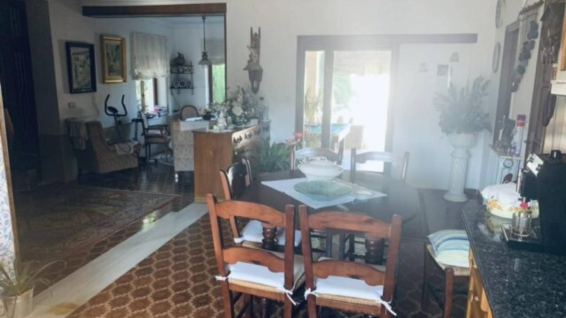 This beautiful property is on the roadside, a few km from Monovar where you will find all the amenities.The property dates from +/- 1932 and has kept all the charm of Spanish houses (wooden beams, typical kitchens, etc.). The main house has on the ground floor a covered terrace, a spacious fitted kitchen with breakfast area and laundry room, a bathroom, 2 living rooms (one with fireplace) and two bedrooms. Upstairs are 5 bedrooms (the master bedroom has an en-suite bathroom and a small living room).The house has oil central heating, running water and electricity.You have a second house with on the ground floor a very large dining room with BBQ. An outside staircase takes you upstairs where you have 2 bedrooms, a bathroom and a living area. Possibility of installing a kitchen.Between the 2 houses, you have a beautiful inner courtyard, ideal for cooler evenings.The land is fenced and accessible by an electric gate. On the land, you have a beautiful swimming pool and many shaded corners to enjoy sheltered from the sun.If you are looking for a very large house with a guest house, not too far from amenities, this property is for you.Alicante airport and beaches are only 35 minutes away.