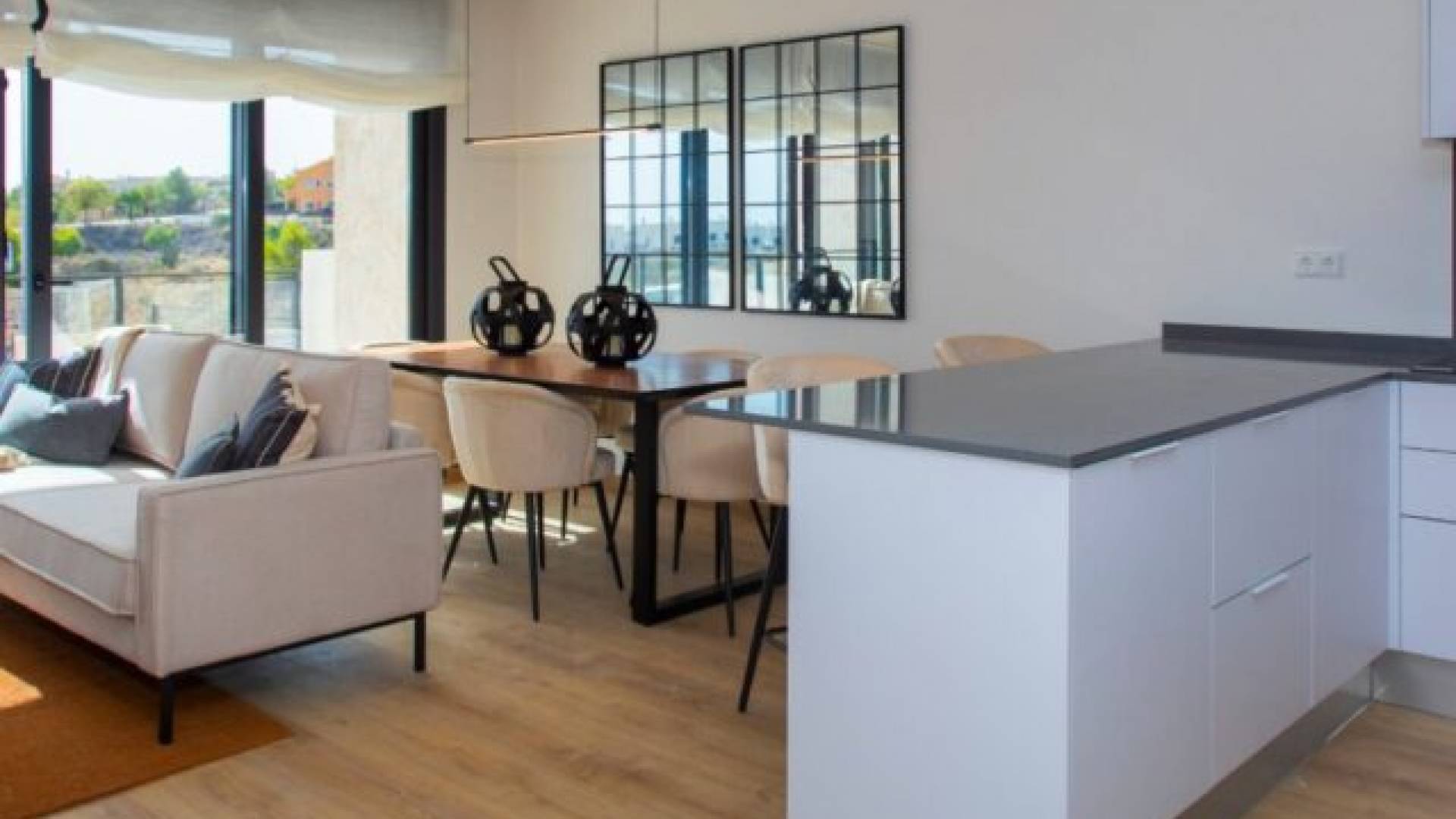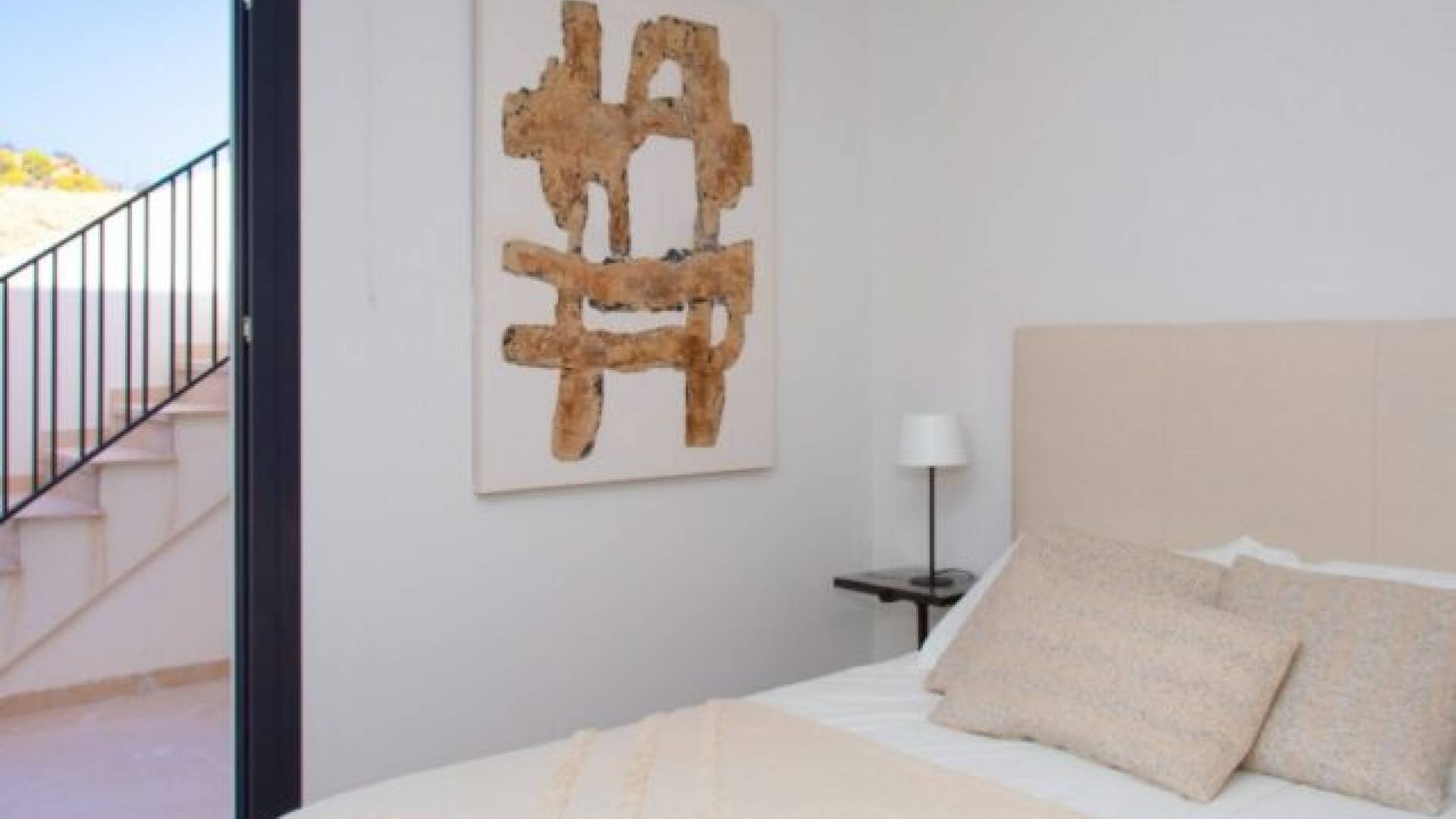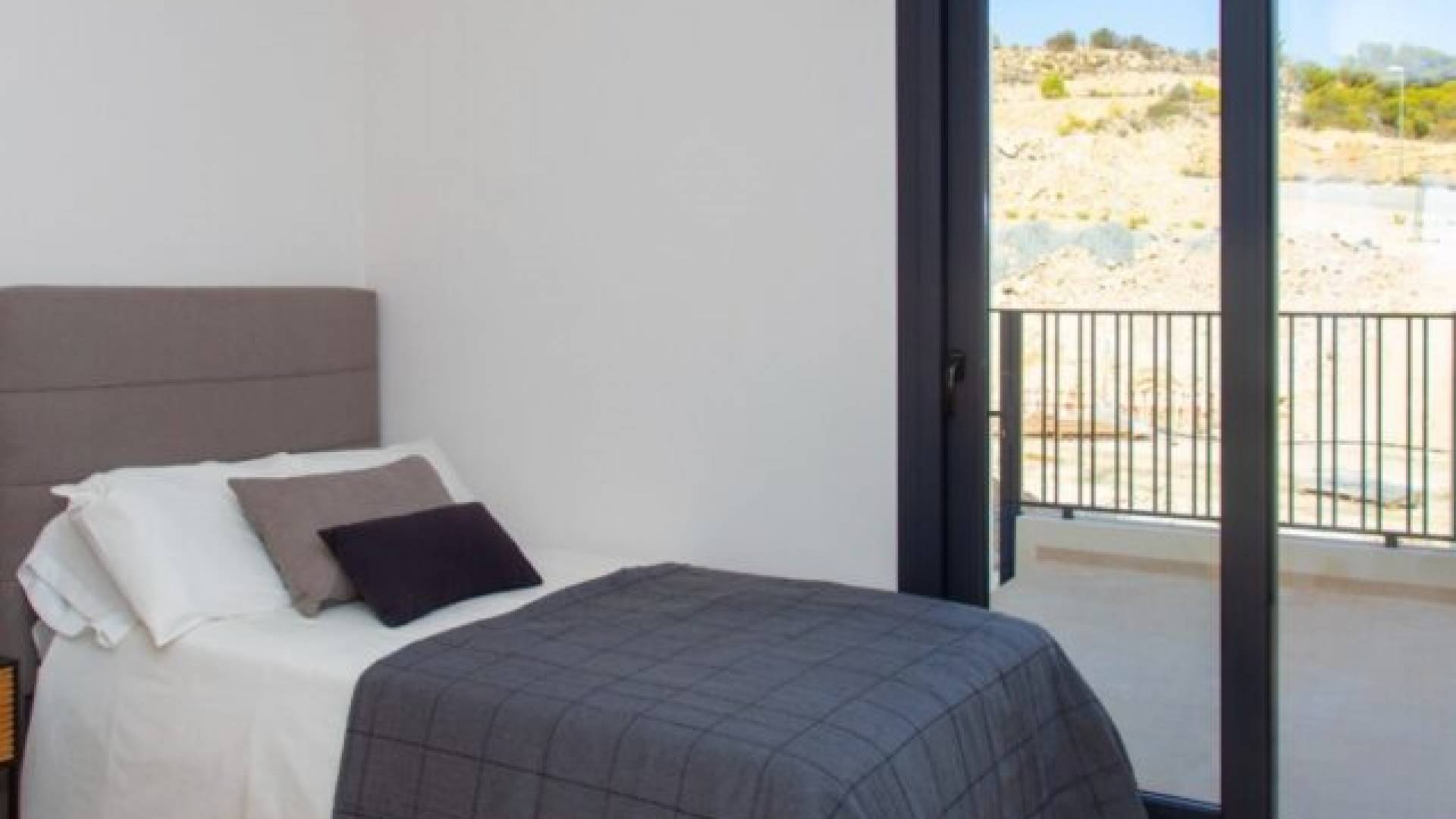 This duplex is located in a private urbanization close to the main towns of the province of Alicante, 15 minutes drive from Elche and Alicante, as well as the airport and the most beautiful beaches. The complex is located in a quiet environment near the Alenda golf course in Monforte del Cid.The duplex is composed of 3 bedrooms, 2 bathrooms, a guest toilet and roof solarium.One parking space per accommodation in the basement (property type 1G) included in the price.Closed residential complex with green spaces and swimming pool.The rest of the properties have a parking space on the plot or inside the urbanization.Specifications :Smooth plastic interior paintwork. Smooth lacquered interior carpentry; door panels and wardrobes in bedrooms. White PVC exterior carpentry and double glazing. Self-blocking and motorised shutters in living room and in the rear bedrooms (type 1 and type 1G). Ceramic-porcelain tile flooring, optional laminate flooring. Reinforced front door. Fitted kitchen, with granite worktop or synthetic quartz aggregate (Silestone or similar). Heating, air conditioning and domestic hot water by aerothermal system. Sanitary ware with built-in cistern, suspended toilet and top quality taps. Telecommunications and TV installation with fibre optics.Price starts at 330.000