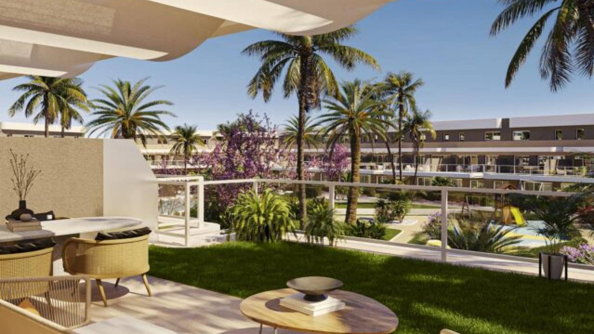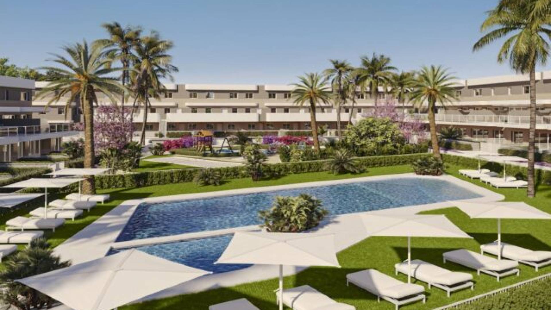 This new 72 development of apartments and duplexes is located near the Alenda golf course, in Monforte del Sid, just 20 minutes away from the beaches and Alicante airport.Each apartment and duplex has 3 bedrooms with fitted wardrobes, 2 bathrooms, a fully-equipped open-plan kitchen with top-of-the-range appliances, a living/dining area, a large terrace and a garden (only for the apartments).The surface area of the flats is 100m² and 116m² for the duplexes. The apartments have a terrace and a garden, while the duplexes have a very large terrace (between 40 and 55m²).Each apartment & duplex has a general air-conditioning system (hot/cold).The communal areas include a very large swimming pool for adults, a pool for children, a playground area and a beautiful garden. There is also a private car park with pre-installation for charging electric vehicles.This Allure project combines the opportunity to live close to a golf course, surrounded by a natural environment and very close to beautiful beaches. The apartments boast superb views of the surrounding mountains and are just 5 minutes from the clubhouse. Delivery scheduled for July 2026.Prices from 220,000