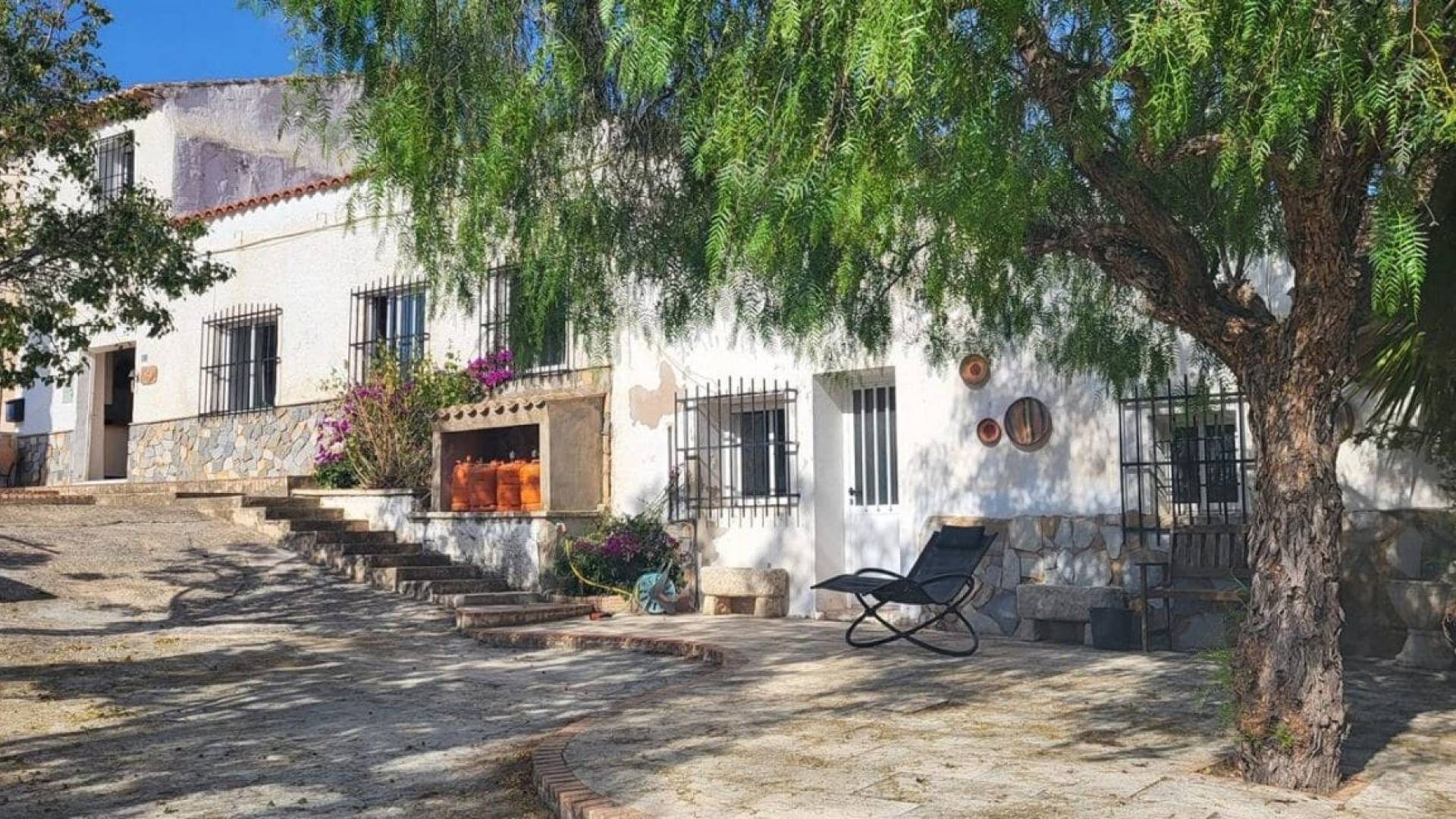 Nestled in the heart of the Spanish countryside, this picturesque finca is really two houses in one. It offers a perfect blend of rustic charm and modern comfort. Boasting four comfortable bedrooms, the home provides ample space for family living. Hosting guests or family is made easy with the three-bedroom area easily separated from the one bedroom area. This property would make an ideal Bed and Breakfast.