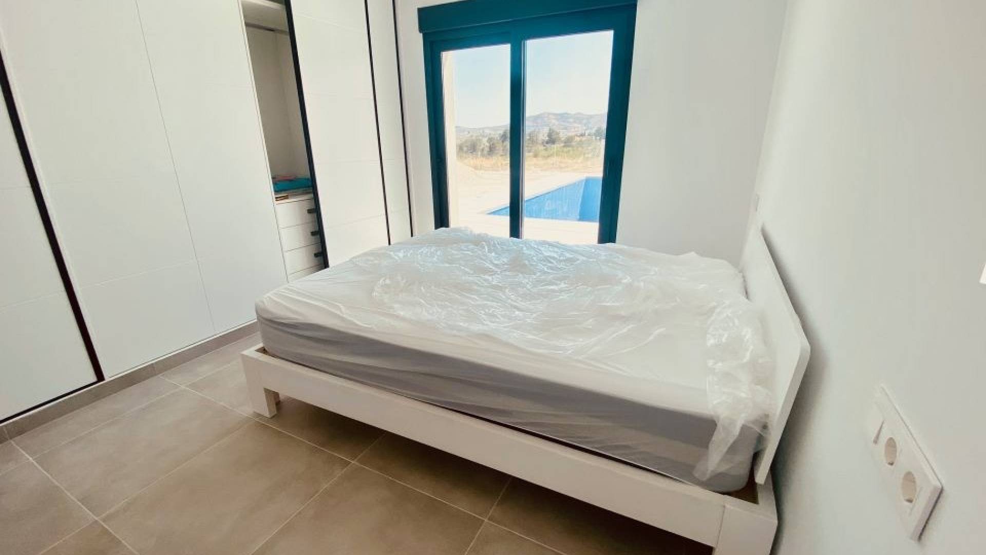 We are very pleased to present this beautiful modern villa which will be build on a plot of minimum 5.000m² The villa of 194m² will be sold complete with generalised air conditioning, a beautiful fully equipped kitchen, built-in wardrobes in the bedrooms and in the entrance hall, fully equipped bathrooms, electric shutters with WiFi control, fencing and a 20m street front wall with electric gate and pedestrian door. The house will be identical to the one in the photos, which was built in the province of Alicante. In the meantime we have build the same villa in Macisvenda