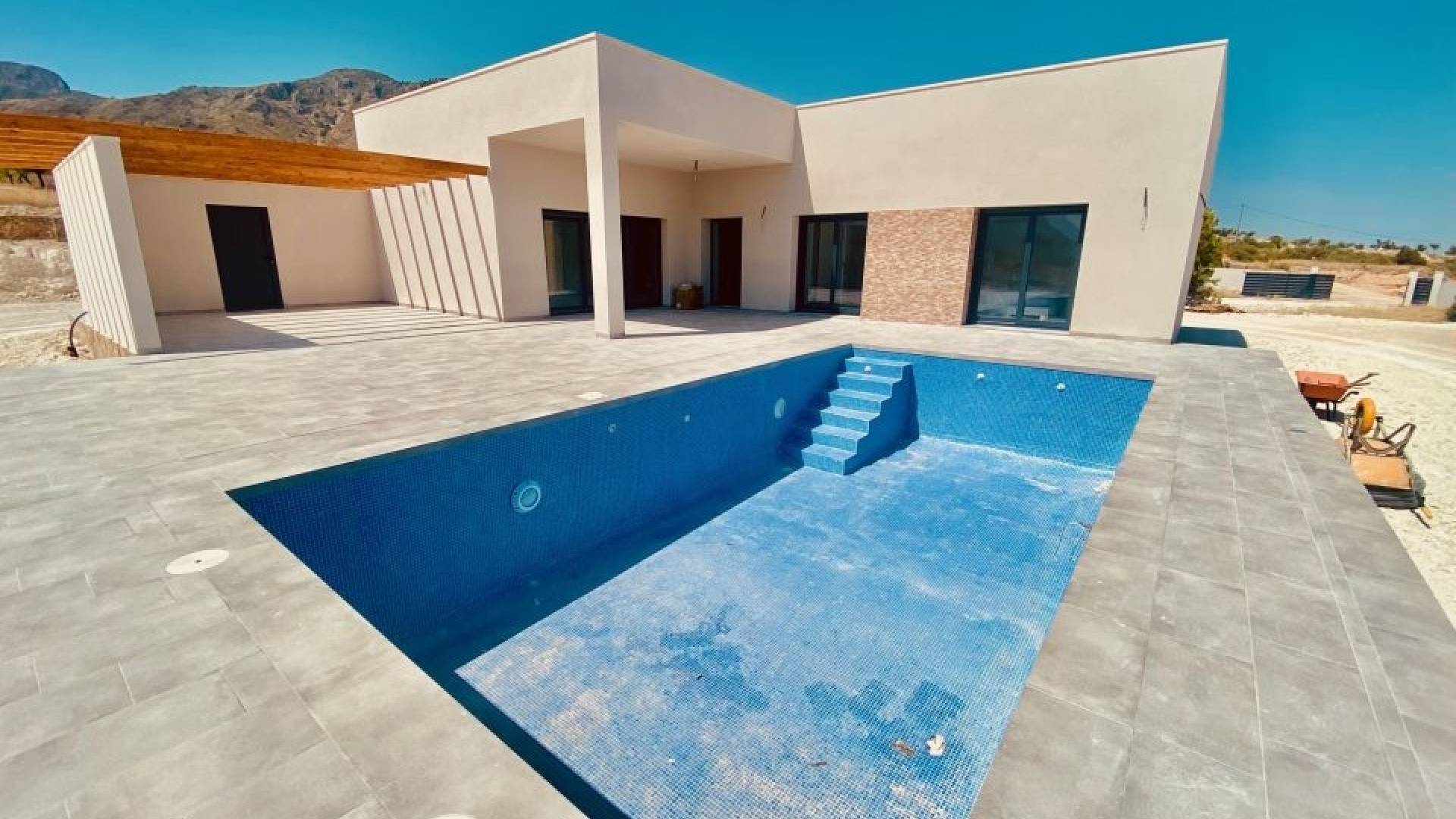 Outside is the beautiful 8x4m swimming pool (10x5m possible with a small supplement), a 26m² pergola-style area attached to the house and a large terrace to enjoy those sunny Spanish days.