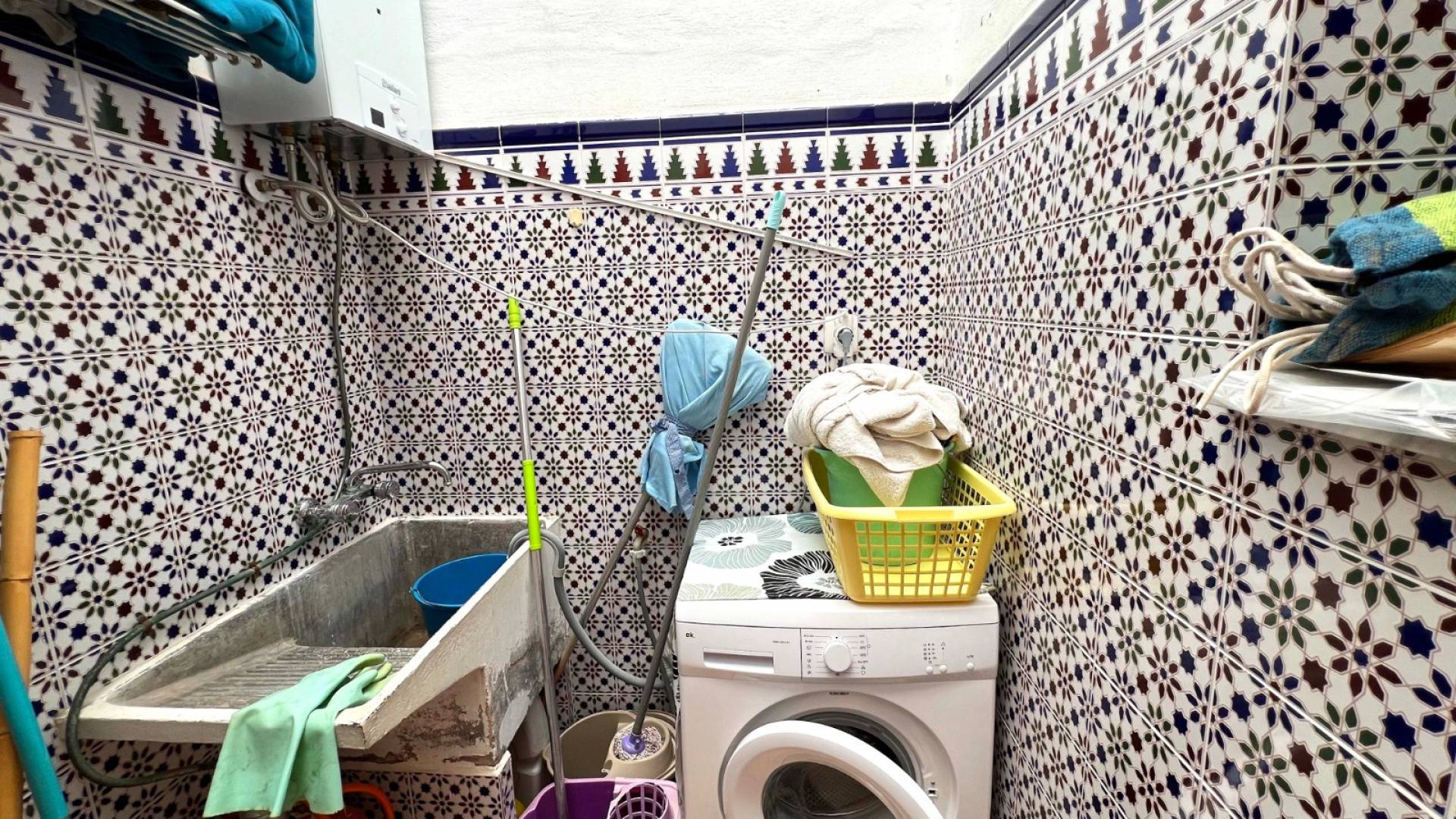 Inside, the villa includes a hallway, one bedroom, a laundry room, and a spacious living-dining room with fireplace, ideal for family gatherings. The fully equipped open kitchen connects to the living area, creating a cozy and practical space. Additionally, there are three more bedrooms, one with an en-suite bathroom, offering comfort and privacy.