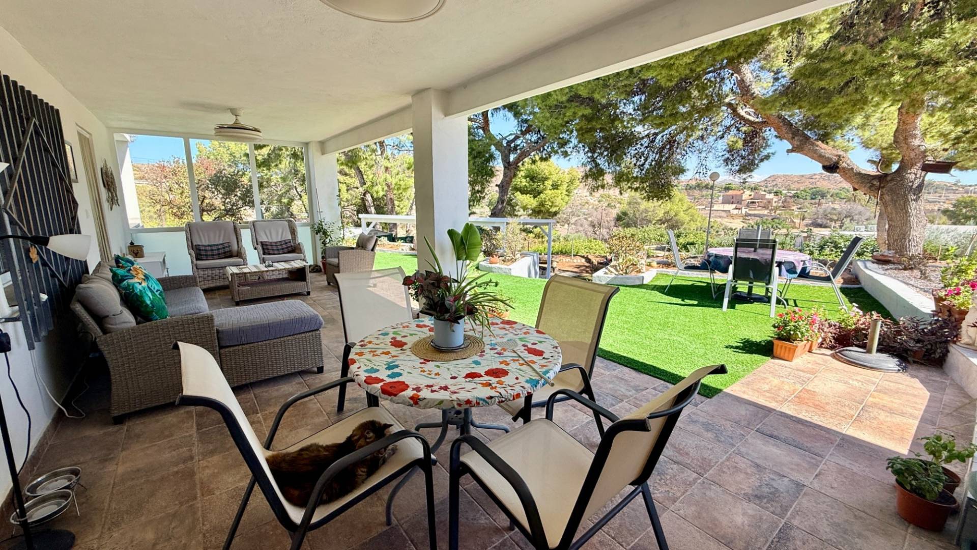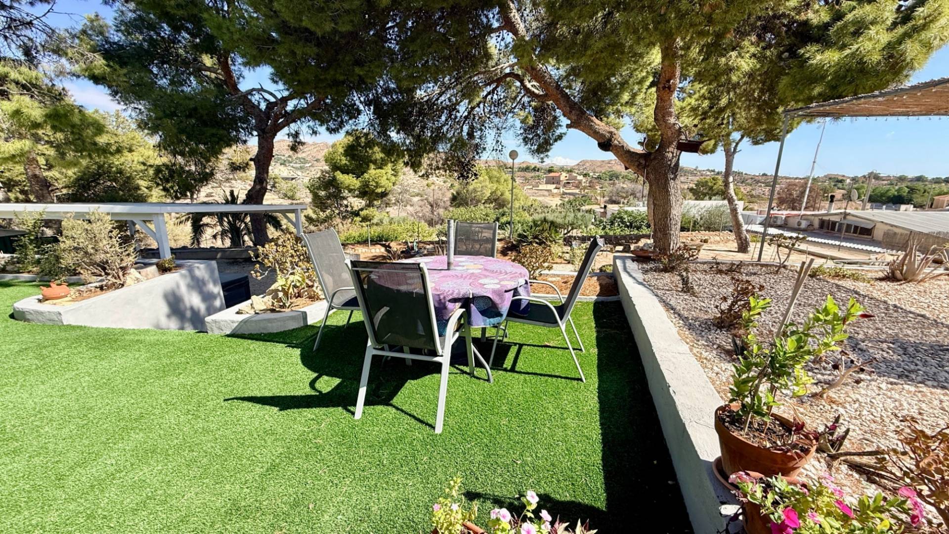 Imagine living in a peaceful country setting with views across the Spanish landscape, yet being just minutes from the market town of Aspe and the vibrant city of Elche. This recently renovated villa offers modern comfort, charming outdoor spaces, and a flourishing orchard — the perfect blend of rustic charm and contemporary living. Property Highlights Prime location between Aspe and Elche with lovely viewsFully renovated floor-to-ceiling in recent yearsSpacious shaded porch (Naya) — ideal for year-round outdoor livingOpen-plan lounge, dining, and kitchen — the heart of the home... the family room4 bedrooms, including master with gallery walk-in wardrobeModern fully renovated family bathroom and practical airing cupboardAir conditioning and mains connections (water, electricity, internet)Separate 30m² storage room — potential guest suite, gym, or workshopLandscaped gardens with shaded seating, rockeries, and vegetable plotsOrchard with a wide variety of fruit treesMature front garden trees providing priceless shade in summerCareful use of artificial grass gives a lush feeling to the property.Covered carport with electric connection for hybrid car. Step Inside The villa welcomes you through a wide, shaded porch — the Naya — a wonderful space for relaxing, entertaining, or dining alfresco throughout the year. From here, you step into the open-plan lounge, dining, and kitchen area, creating a bright and welcoming hub for family life. The master suite boasts a long gallery-style walk-in wardrobe and air conditioning, while three additional bedrooms offer flexible accommodation — one currently serving as a home office. A fully modernised bathroom, fresh plastering, tiling, plumbing, and electrics ensure that every detail feels new and ready to enjoy. Remember this property had a floor to ceiling renovation under 3 years ago. Outdoor Living This villa is as much about the outside as the inside. A 30m² upstairs room offers fantastic potential to be converted into extra accommodation, a gym, or a studio. The outdoor areas have been thoughtfully landscaped, with sun terraces, shaded seating areas, and winding pathways leading through rockeries, vegetable gardens, and the orchard. There are 2 useful storage rooms as you enter the property. There is a shaded gazebo under which you will find the jacuzzi...... The mature trees in the front garden are a true highlight — providing natural cooling shade and a serene atmosphere, perfect for enjoying even the hottest summer afternoons in comfort. Location Perfectly situated between Aspe and Elche, this property combines tranquillity with convenience. You’ll enjoy the peace of a countryside setting, surrounded by nature, yet remain just a short drive from shops, restaurants, and all essential services. The coast, aiprort, cities, shopping centres and coast are virtually on your doorstep.