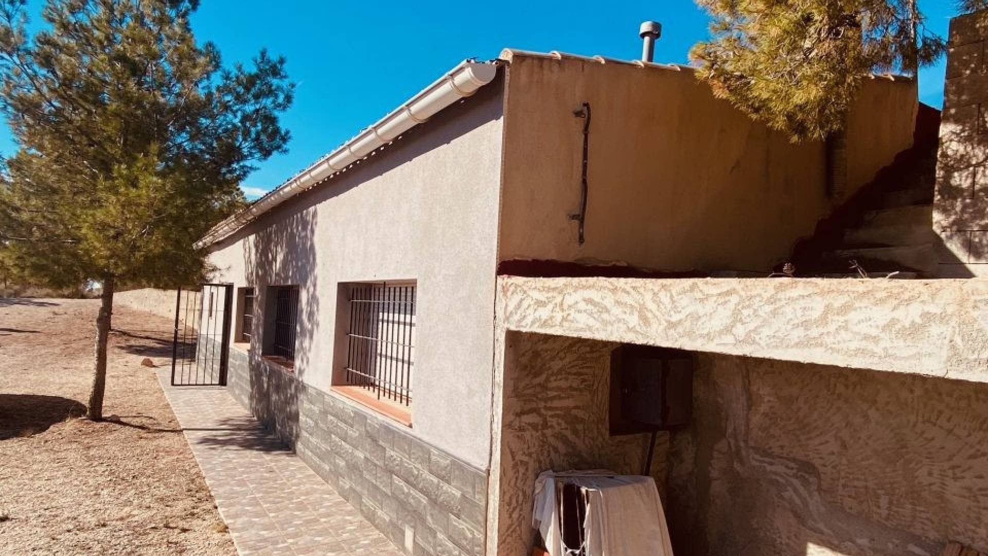 The house has a large room that could serve as an open kitchen with living/dining area of 37 m². At the back is the cave area, which includes a storage room, a bathroom, two bedrooms, and a room with a wood-burning fireplace. The house has solar panels and several water tanks supplied by mountain water.