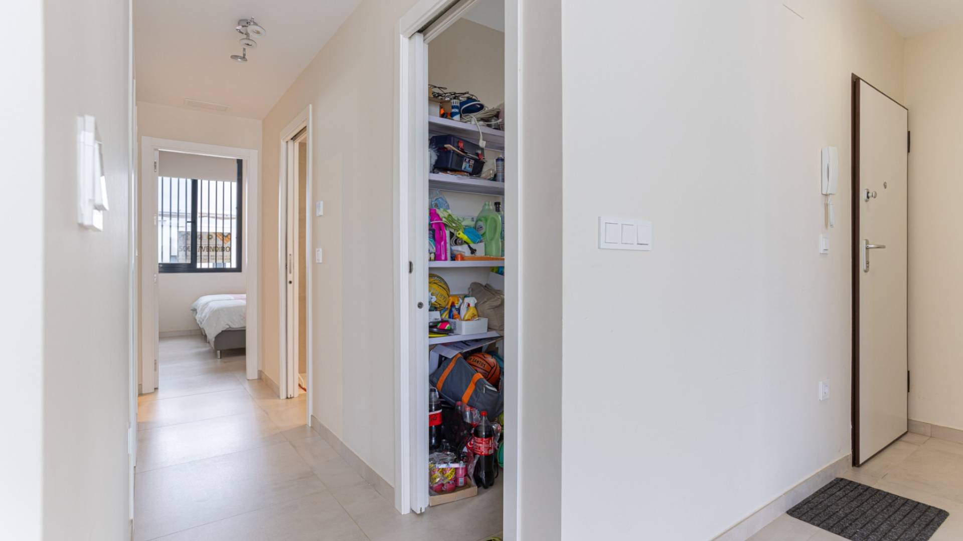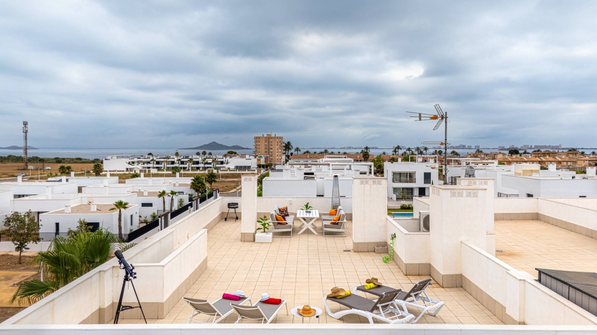 We present this beautiful property, located on the first floor of a modern, well-maintained building in the charming coastal town of Mar de Cristal, known for its peaceful atmosphere, proximity to the Mar Menor, and excellent connections to amenities and entertainment venues. With a built area of 113 m², this apartment stands out for its natural light, functional layout and excellent condition, making it ideal for moving into without renovation. Layout and spaces: 3 spacious bedrooms with fitted wardrobes, perfect for families or those needing extra space to work from home. 2 complete bathrooms, one en suite, designed with modern, high-quality materials. Elegant living-dining room with direct access to a private terrace, perfect for enjoying the Mediterranean climate. Open plan kitchen, fully equipped with all necessary appliances and a breakfast bar, ideal for meetings and informal dining. Separate laundry room and storage room provide functionality and extra storage space. Extras and equipment: Air conditioning is installed and pre-installed in the other rooms. Fully furnished and ready to move into. Armored door for extra security. Intercom. Access to a fantastic communal swimming pool and sun terrace, ideal for relaxing on summer days. Private parking space and storage room included in the price. Prime location: Just a 5-minute walk from the beaches of the Mar Menor. 30 minutes drive from the nearest airport. Within walking distance of restaurants, shops, supermarkets and entertainment venues (10 minutes). Close to prestigious golf courses (10 minutes), such as La Manga Club. With a south-facing position, this property enjoys excellent natural light throughout the day, making it a warm, welcoming and highly energy-efficient home.