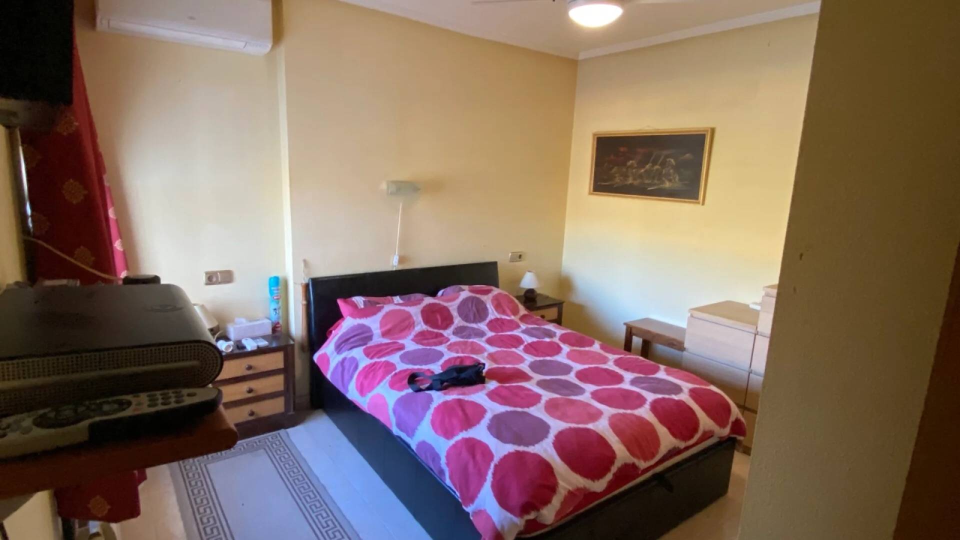 The master bedroom comes with fitted wardrobes, air conditioning, ceiling fan, central heating, and an en-suite bathroom with bath, shower, toilet, and wash basin. Two further double bedrooms offer fitted wardrobes, ceiling fans, and central heating, served by a family bathroom with a double walk-in shower.
