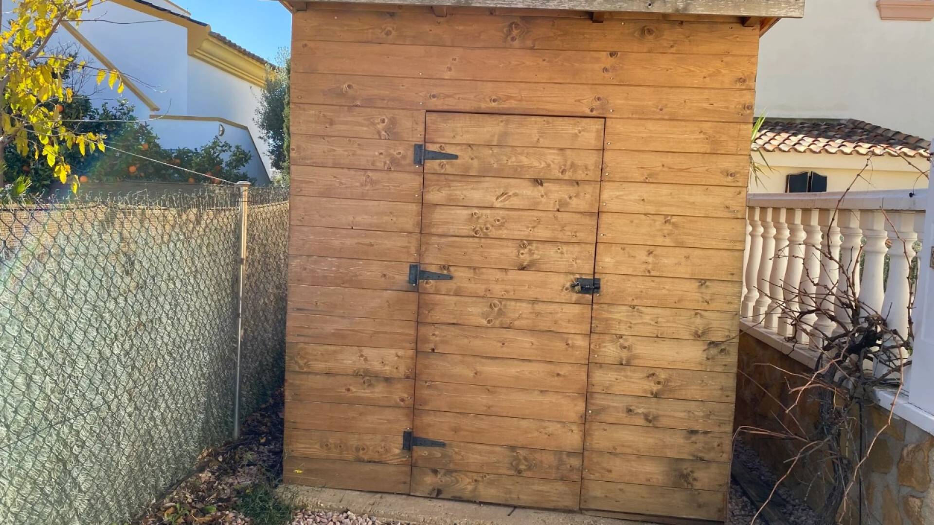 The villa is accessed via a pedestrian gate or double vehicle gate, providing off-road parking. A private pool sits at the front of the property, surrounded by sunbathing space and well-maintained gardens with established plants and shrubs. At the rear, a small utility room and a large wooden shed with electricity offer practical storage. A raised terrace at the side of the villa provides the perfect spot for enjoying outdoor living, accessible from both the lounge and the rear of the property. The roof solarium completes this home with spectacular panoramic views of the Hondón Valley.