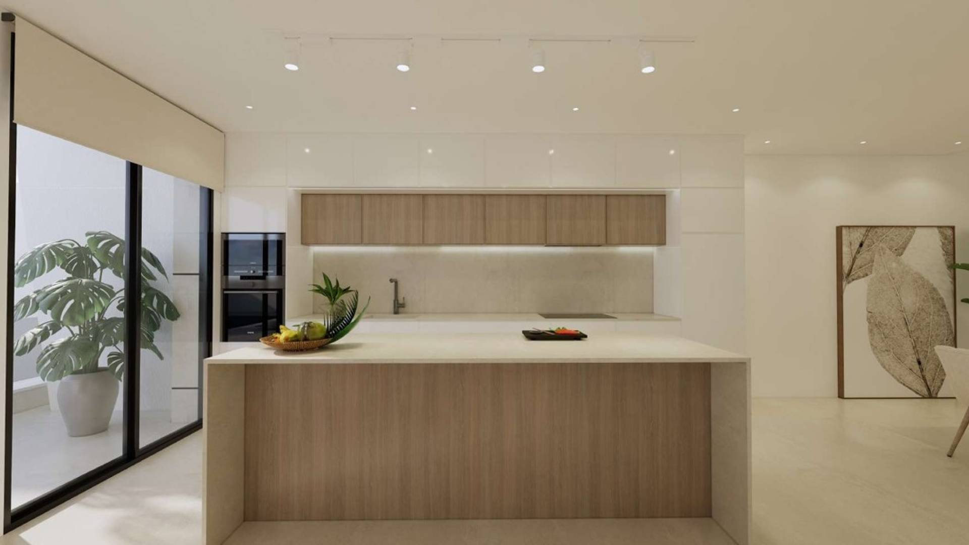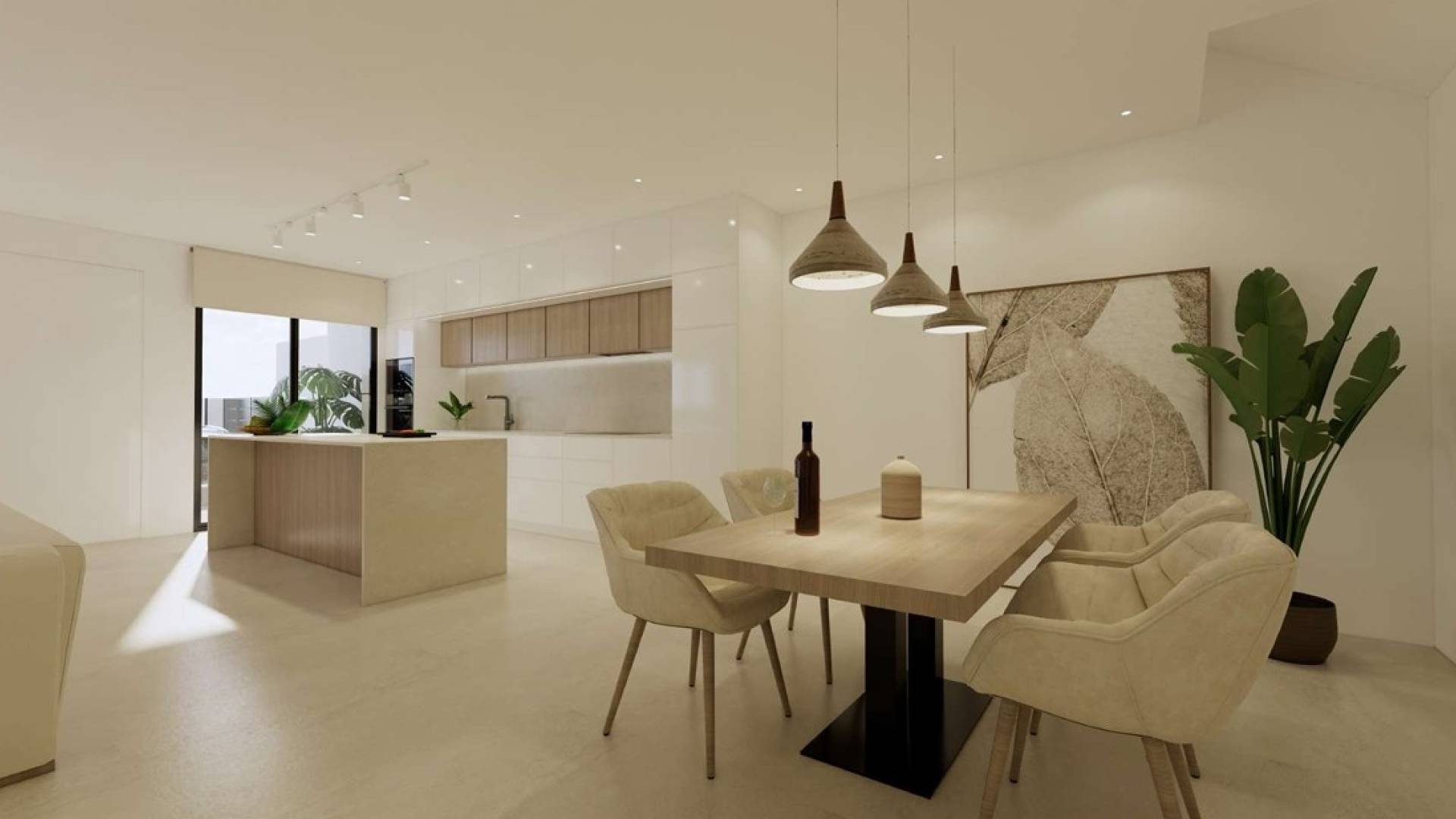 A new construction project in three phases, starting with Phase 11 on the south side. This phase consists of six very spacious and modern villas. Cornerplot 435.000€ The project is located in the charming Dolores neighborhood. On the ground floor, we find a spacious living room, a beautiful kitchen with a cooking island, a lovely, spacious TV corner, and a guest toilet. The house features three double bedrooms as standard: one on the ground floor with an en-suite bathroom and two on the first floor, which also includes a family bathroom and a laundry room. The total built area is approximately 165 square meters, with a plot size of approximately 260 square meters, offering ample space for comfortable living. The villa also has a basement (technical cellar) which is delivered unfinished but can be finished for an additional fee. The house features a beautiful open-plan kitchen with integrated appliances and a breakfast bar, a cozy and spacious living room, bedrooms with built-in wardrobes, and much more. The beautifully spacious layout provides abundant natural light and a pleasant view of the beautiful terrace and the city park. In addition to the ground-floor terrace, the villa also boasts a spacious first-floor terrace and the luxury of a private pool, perfect for relaxing or entertaining, as well as on-site parking. All aluminum windows are fitted with electric shutters, and the house features a reinforced security door. Air conditioning is installed on both the ground and first floors, making it ready for immediate occupancy.