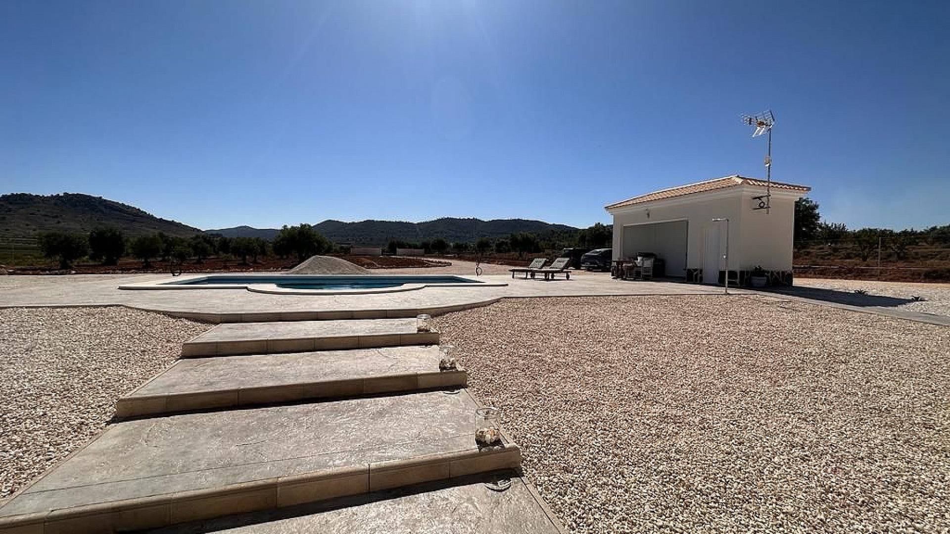All our houses include 2m stamped concrete terrace around the pool (colour and pattern to choose), 1m around the house, gated entrance, 3000m2 fencing, pre-installed ducted aircon, standard kitchen, security door, german tilt and turn windows (or sliding if prefered), built-in fireplace and chimney, pre-installation for tv and internet, gravel driveway plus a few meters around the house, septic tank.