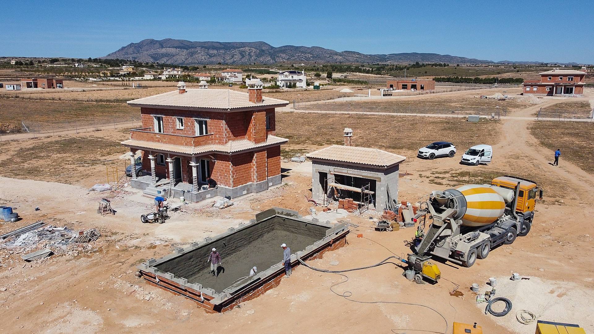 House price and pool of 8x4 meters... 545,000 euros. The builder will contribute 30,000 Euros towards your plot, most are now around 60/70,000 Euros. 5/6 bedrooms and 3/4 bathrooms.