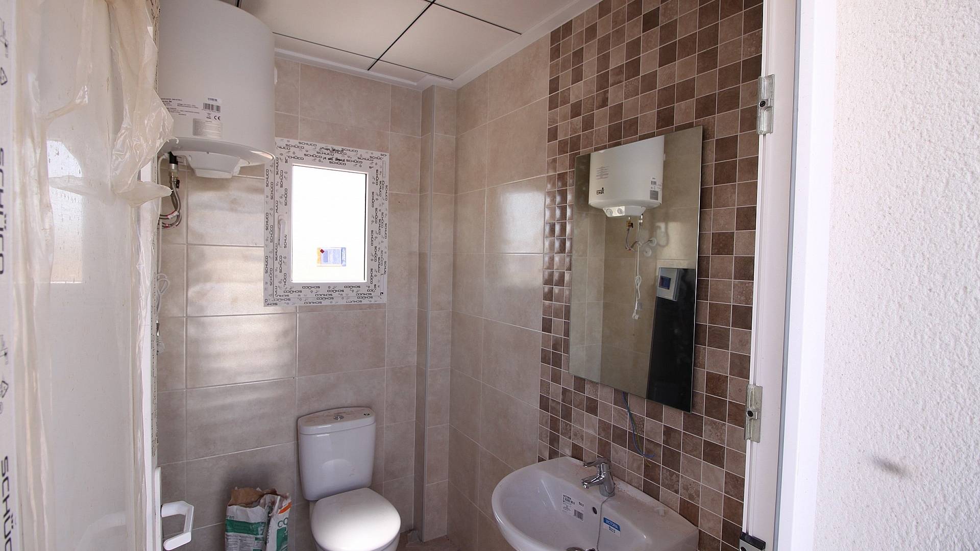 Bathrooms include a shower column, shower tray or bath, sink units (various colours to choose from) with sinks, taps and mirrors, plus a big selection of wall tiles., and a wide selection of ceramic floor tiles, with different colours, wood effect, etc.