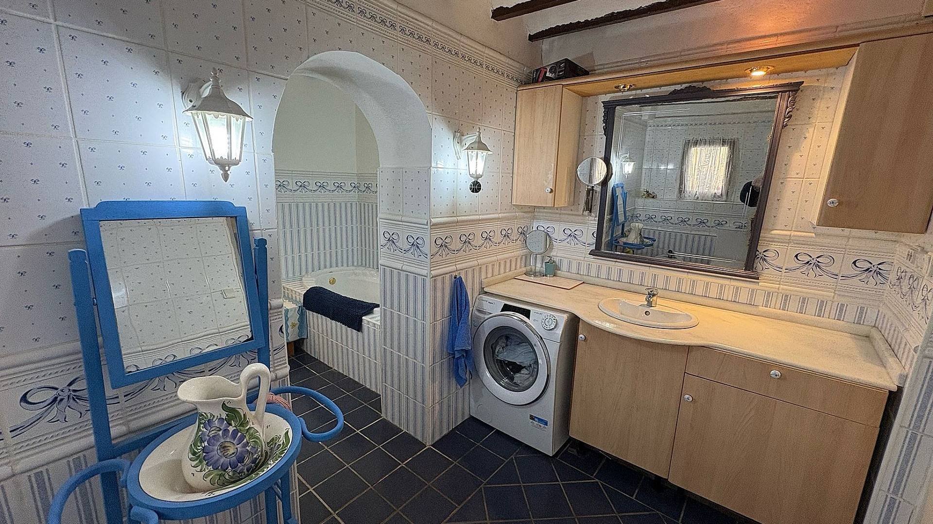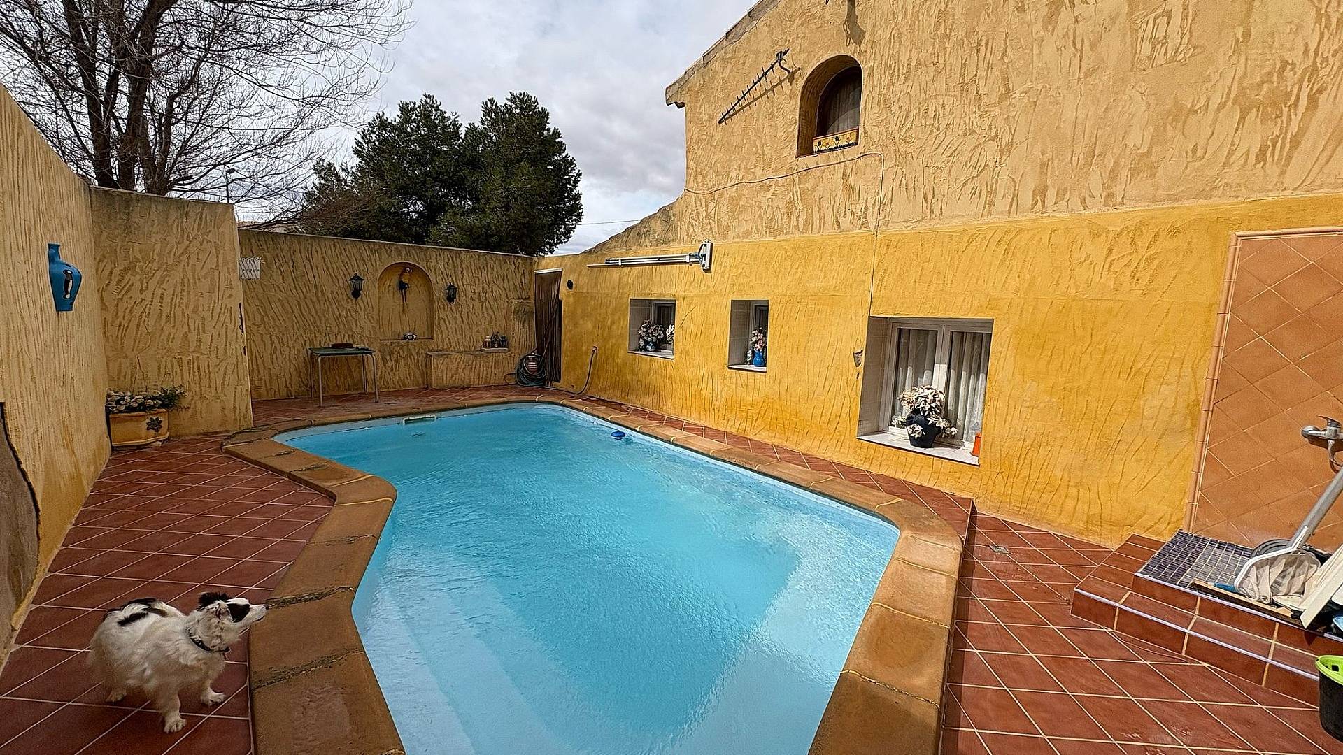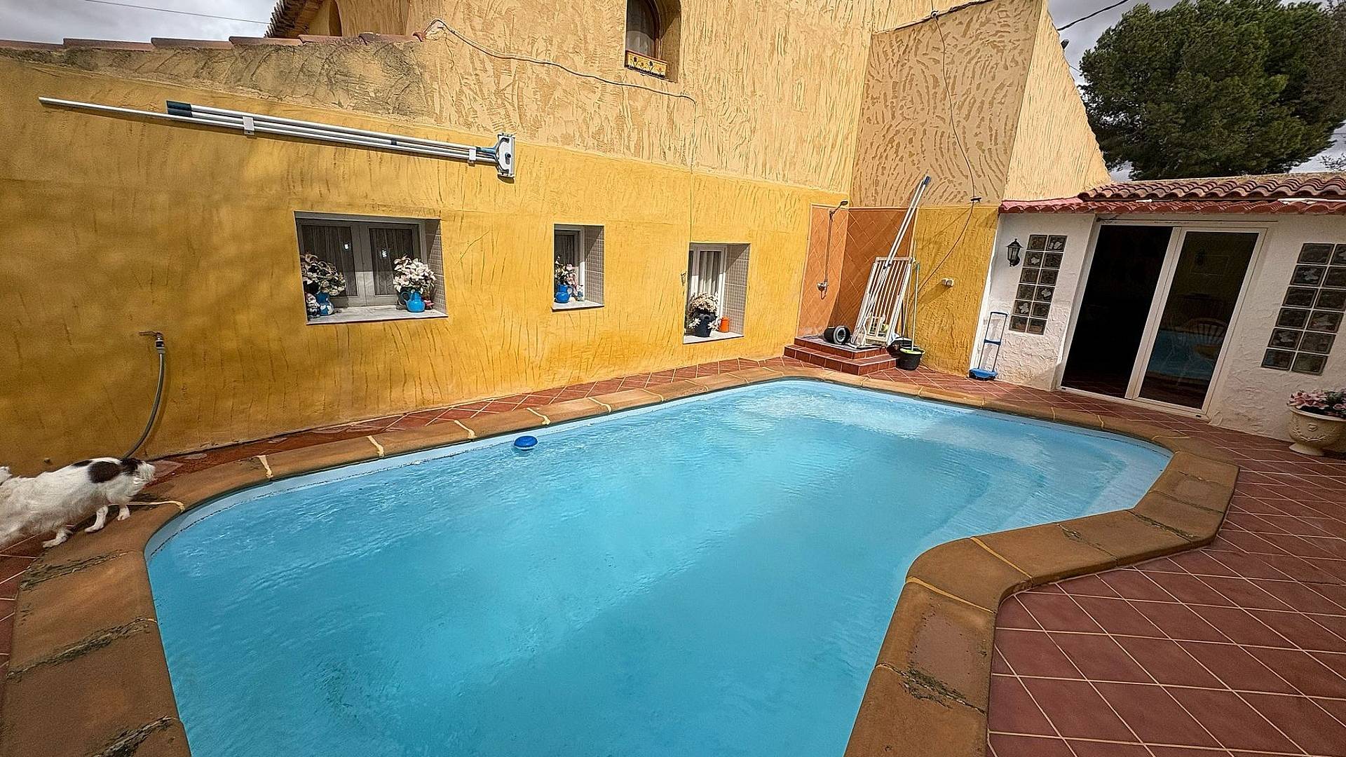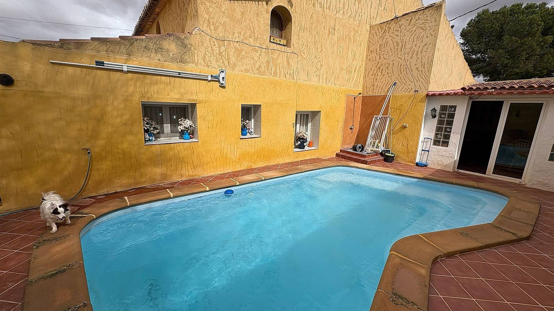 The house itself is generously sized, featuring seven bedrooms and five bathrooms, making it ideal for a large family, a guesthouse, or staff accommodation. With two separate living areas, there is plenty of space for relaxation and entertaining. The private swimming pool adds to the charm of the property, providing the perfect place to unwind and enjoy the warm Spanish climate.