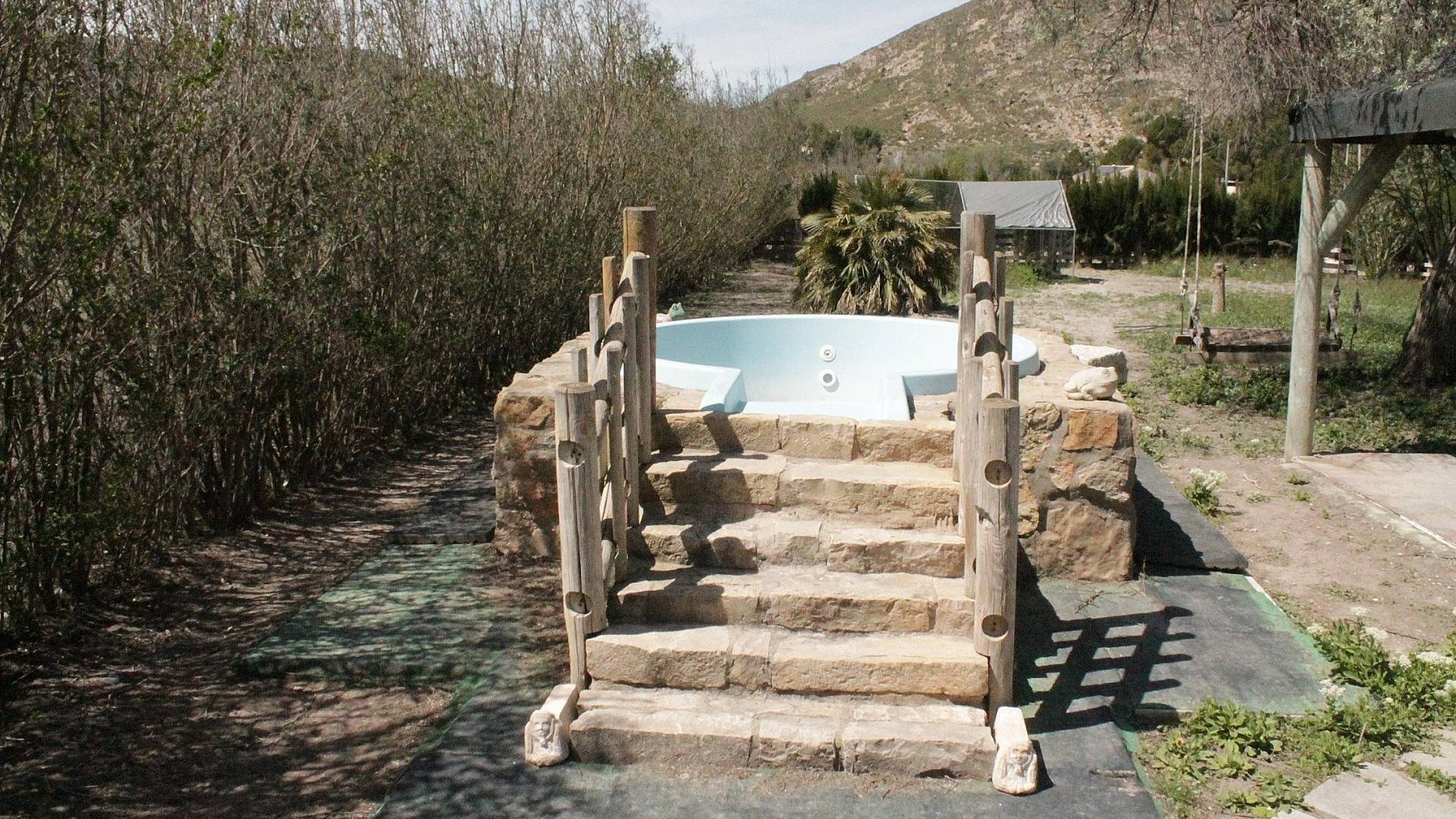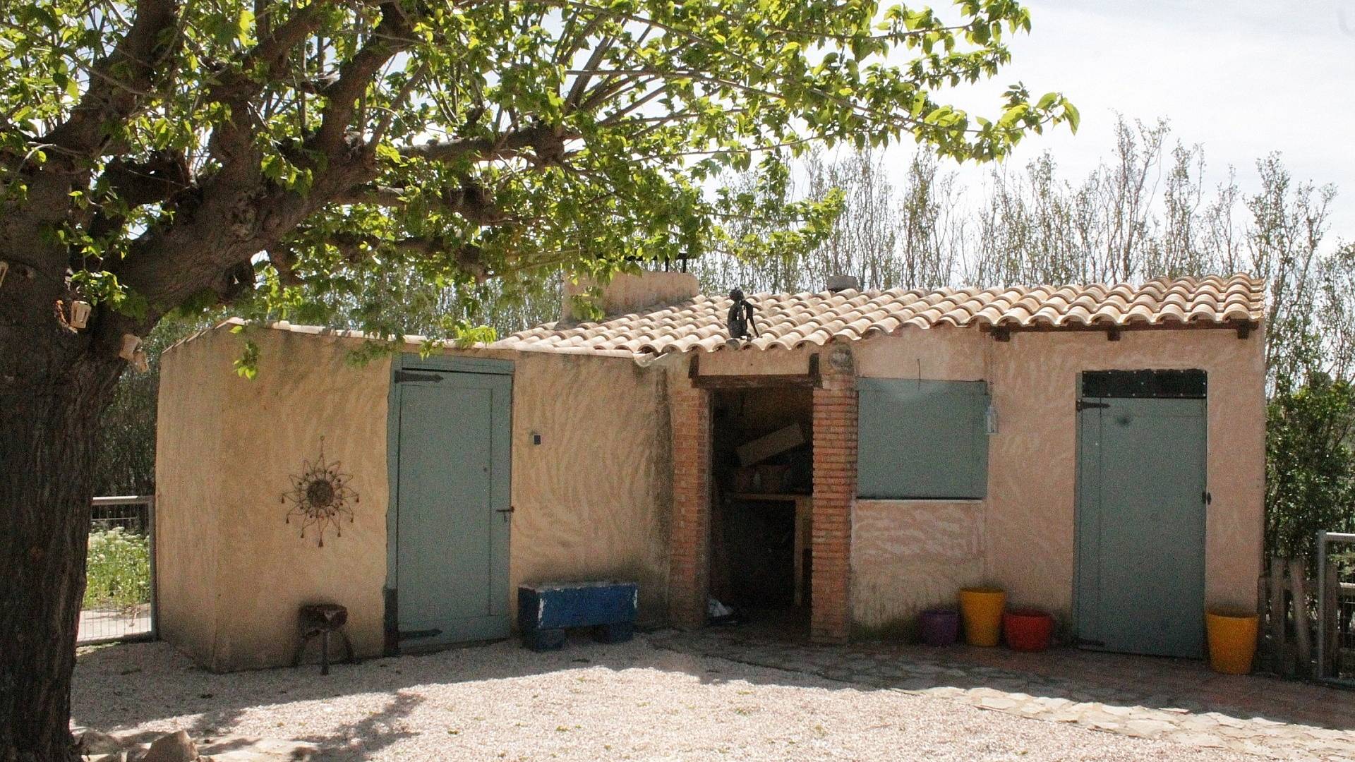 You approach the property via a long drive entering into the garden area via a gate. To the left is a row of dog kennels and to the right is a garden area with lots of nice shaded sitting areas to enjoy your surroundings with a glass of local vino.