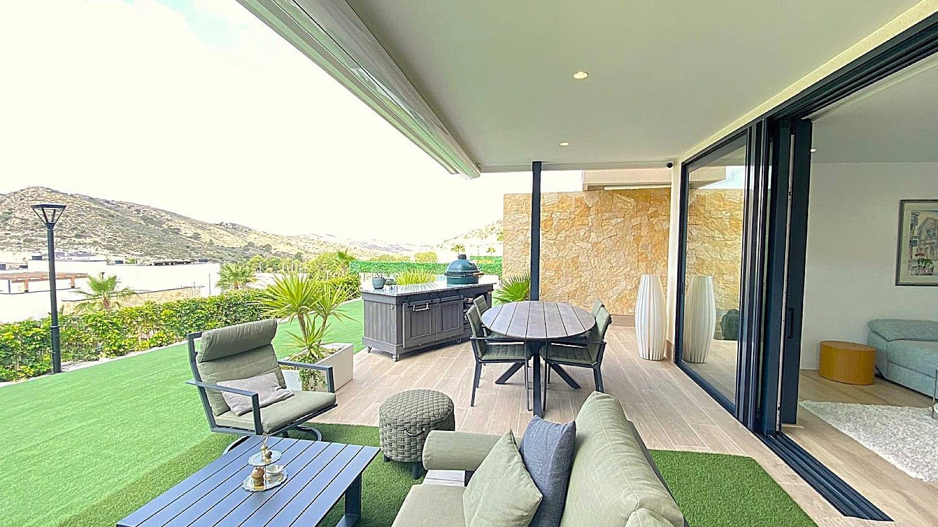 A few key features to this property are built in mosquito nets on all windows, air-conditioning hot and cold in every room with individual temperature control, the kitchen comes with the appliances, also smart terrace sunscreen with wind sensor which will retract automatically in strong winds, fitted to every window.
