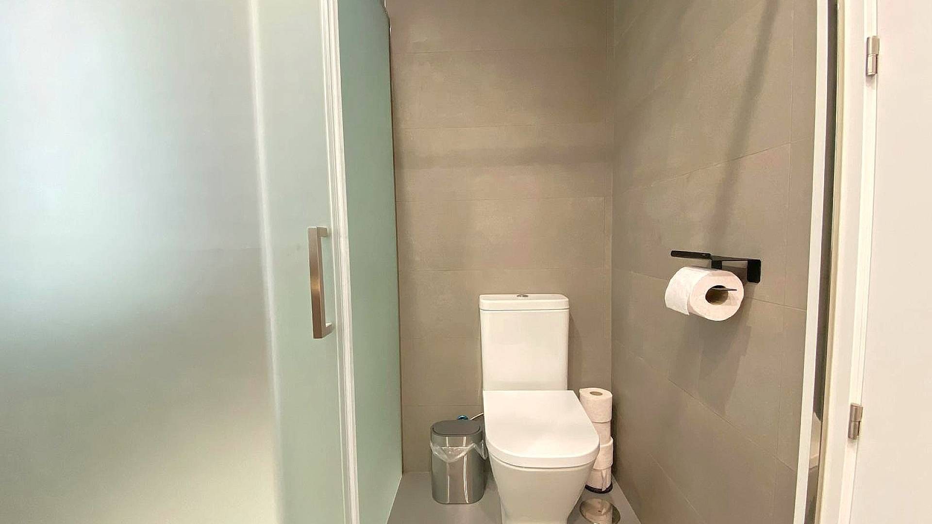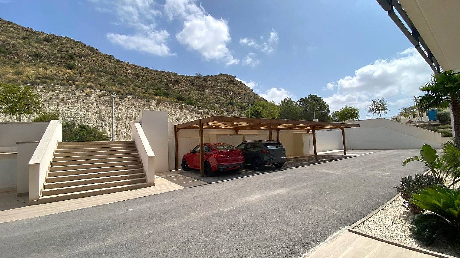 There is an elevator giving you access from the basement to the apartment, where you have your covered storage room (trestero) with more then 10m2 space. Car space is a carport above ground. You have a communal pool and beautifully maintained gardens, plus a communal bike storage room. The buildings are repainted every 5 years and the gardens and common areas are community managed.