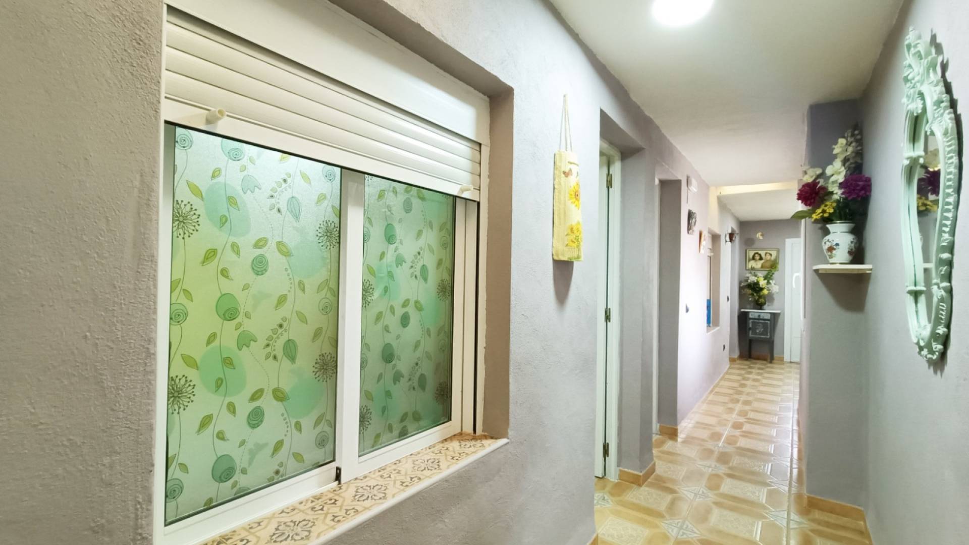 The property offers three well-sized bedrooms designed for comfort and rest, along with a bathroom with a shower. A skylight in the hallway fills the home with natural light, enhancing the feeling of space and wellbeing.