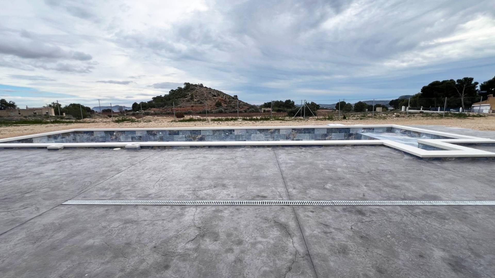 Private pool: 8 x 4 m in gresite with white coping, LED lights, storage room (2 x 3 m) with outdoor shower and metal door, perimeter in stamped concrete. Option to add artificial grass area for maximum enjoyment of the garden.