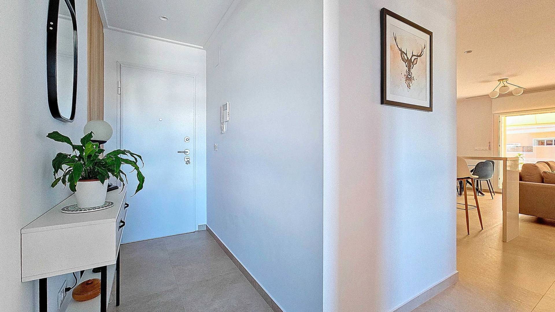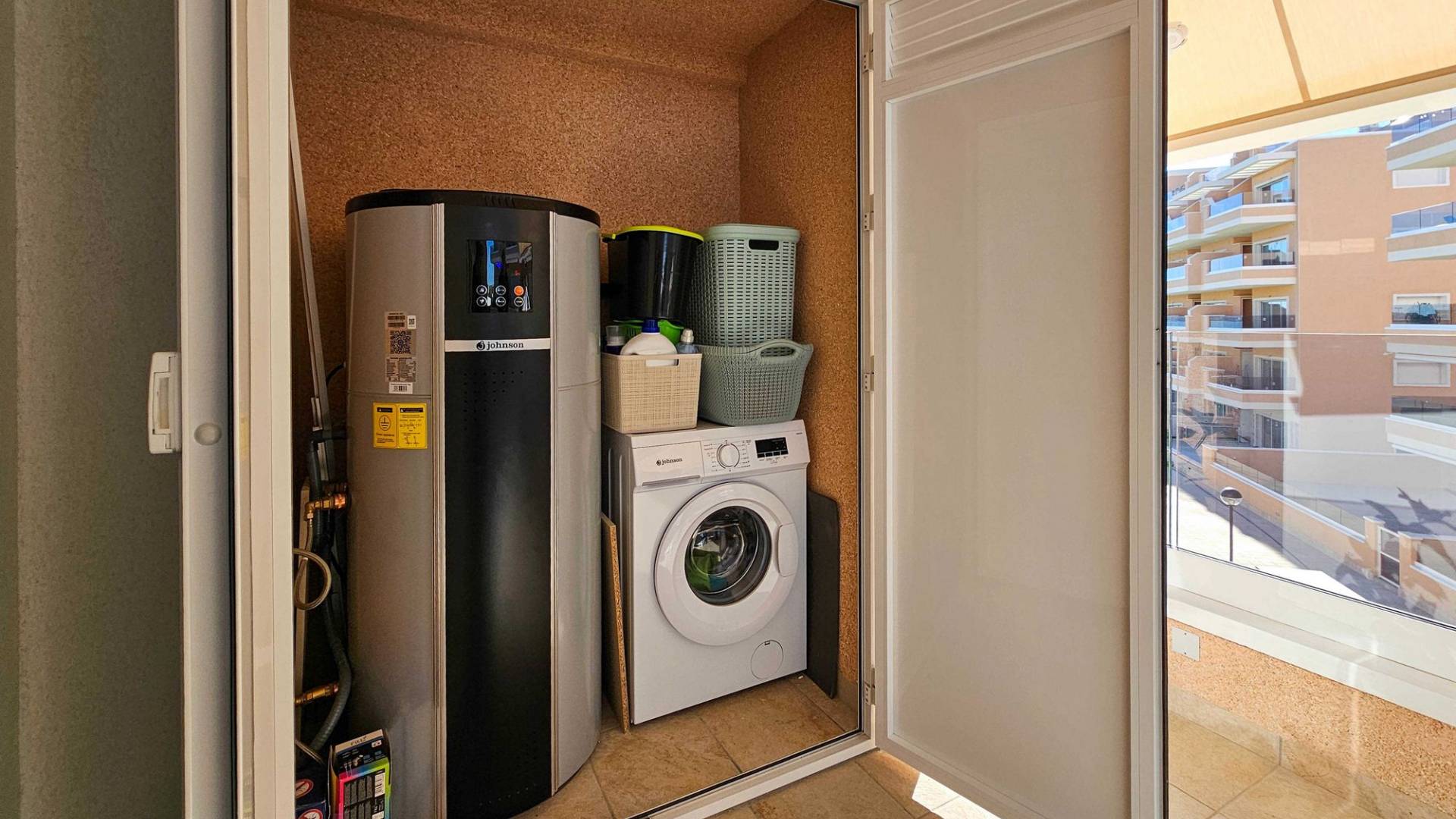 Living in a beautiful new apartment in ‘Vista Azul XXXVII Spa Nature’ in the El Raso urbanization, with spectacular views of the lagoons and close to the beaches of Guardamar del Segura. Guardamar del Segura is just a 25-minute drive from Alicante airport and is known for having the warmest waters of the Spanish Mediterranean Sea, as well as mild winters. The surrounding area of the residential complex offers a wide range of amenities, including shops, supermarkets, bars, restaurants, golf courses, and beaches. The nearby protected nature reserve is perfect for walking and cycling, and it’s a well-known spot where thousands of migratory birds pass through every year. Outdoor Features The residential complex is still partially under development, but the building in which the apartment is located is fully completed. There are or will be several shared facilities such as a large outdoor pool with a children’s pool and Jacuzzi, a spa area with an indoor heated pool and sauna section, an outdoor area specially designed for children, an outdoor gym, pétanque courts, and a putting green. The complex is located on a gated plot and is only accessible to residents. In addition to all the mentioned facilities, there are several well-maintained green zones, providing plenty of space for everyone to relax and enjoy. Indoor Features The property has been in the possession of the current owners for a very short time, so it is essentially like new. The apartment is fully ready for use as a vacation home, but it is also ideal for permanent living. The apartment is south-west facing, located on the second floor, and has a lift. Through the hallway (with storage space) and corridor, you access the open modern kitchen, which is fully equipped and features a cozy breakfast bar. It connects to the spacious living room. The sliding door to the adjoining large terrace provides plenty of natural light. The three bedrooms also benefit from great natural light and feature large windows and built-in wardrobes. There are also two modern bathrooms, one of which is en-suite. The separate bathroom has additional storage space. Facilities - The apartment has its own spacious parking space in the garage (included in the price). - There is a storage unit on the terrace with the boiler and washing machine. - The entire property is fitted with electrically operated shutters. - The apartment has central air conditioning (hot and cold). - The terrace is equipped with an automatic sunshade. - The finishes throughout the property are of high quality. A large part of the new furniture can be taken over, making the property ready to enjoy life under the Spanish sun. Don’t miss this opportunity and schedule a viewing today! This property is listed exclusively, which means all documents have been checked in advance and everything is either in order or can be arranged.